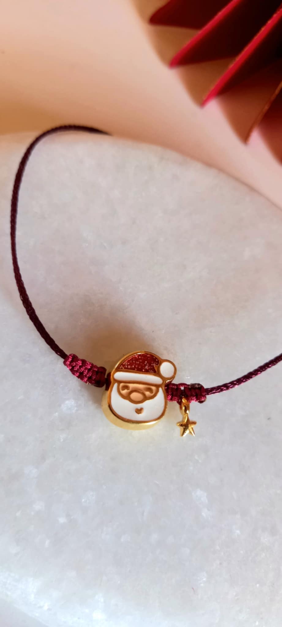 Βραχιόλι με κορδόνι σε μεταλλικό μπορντώ χρώμα, επιχρυσωμένο μοτίφ με σμάλτο Αγιο Βασίλη και μίνι αστεράκι.