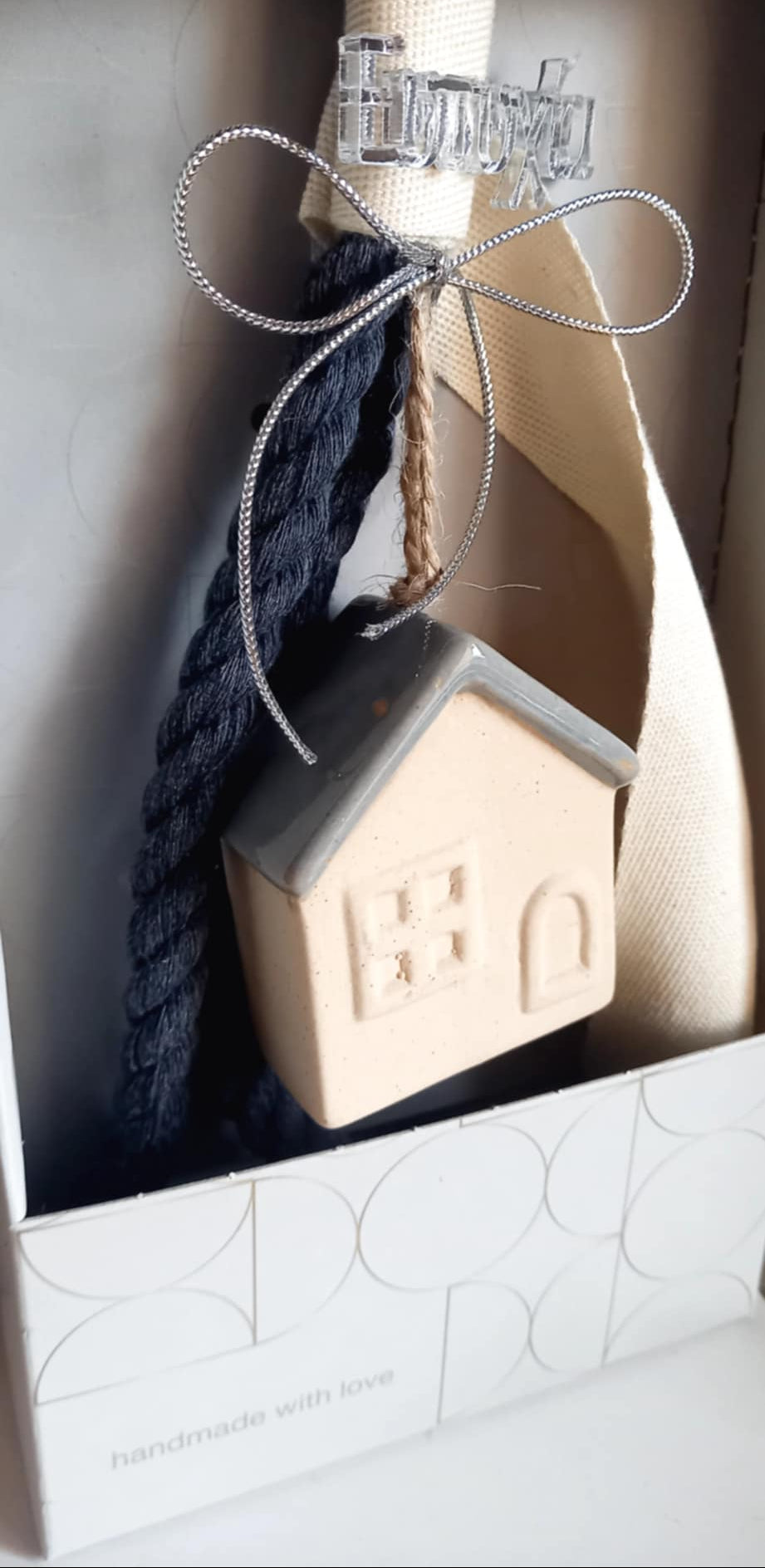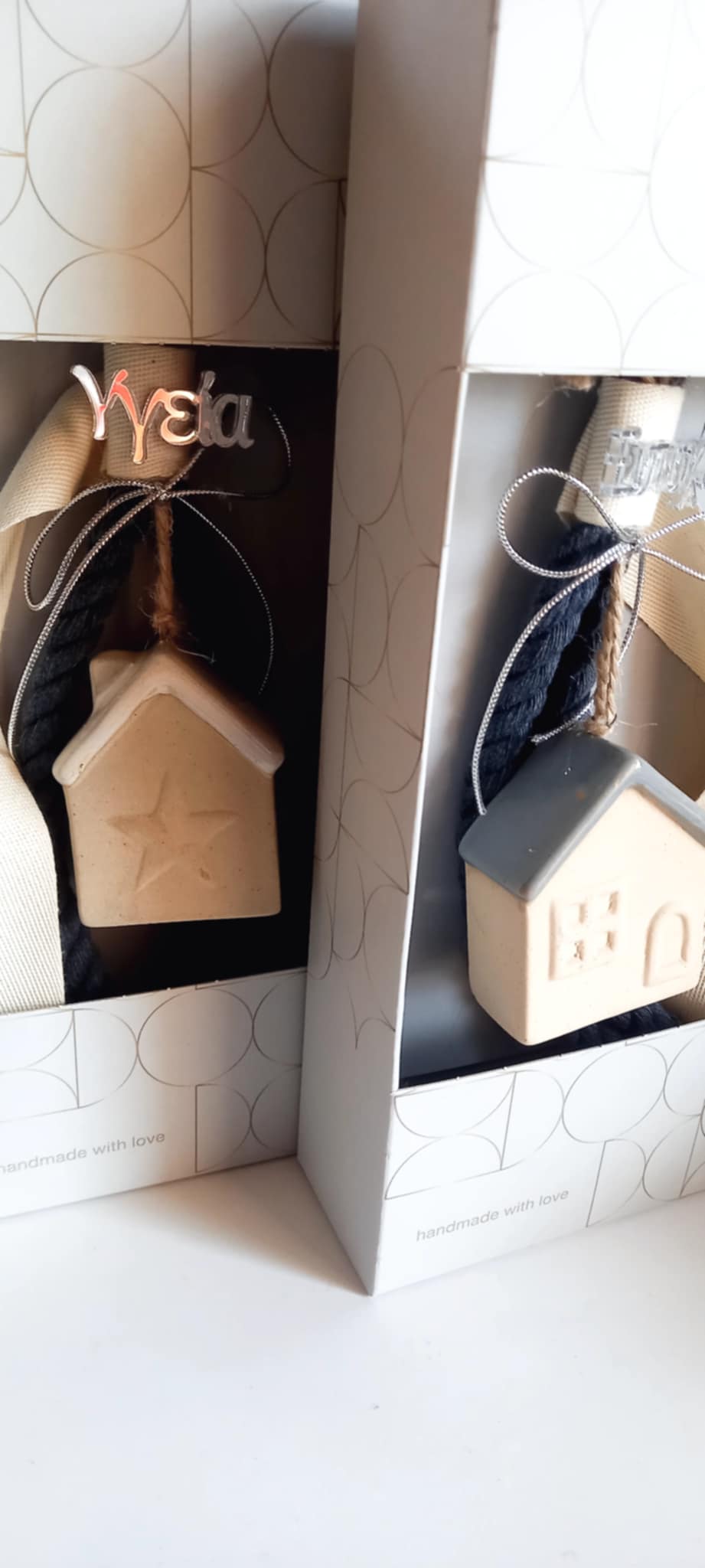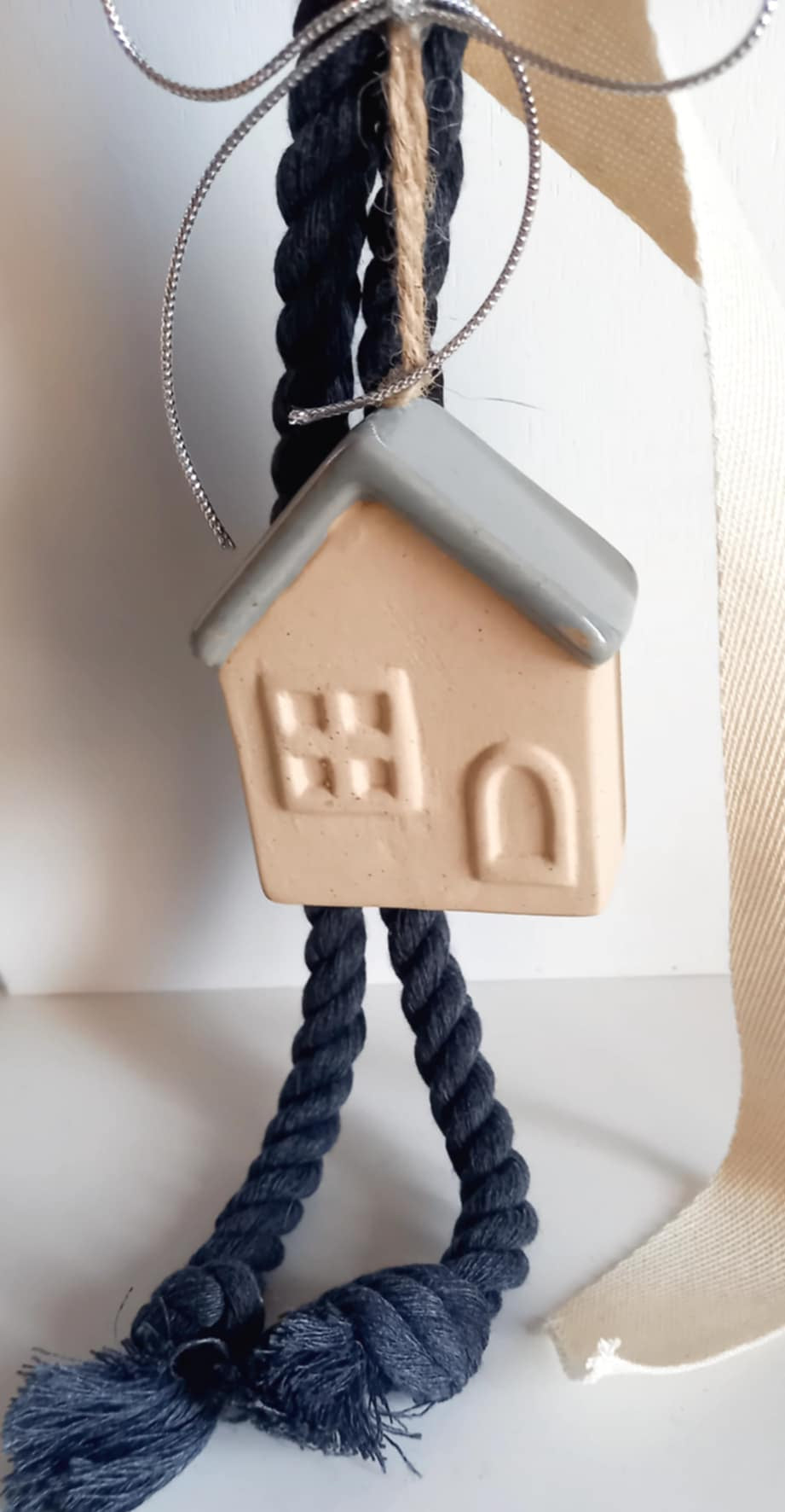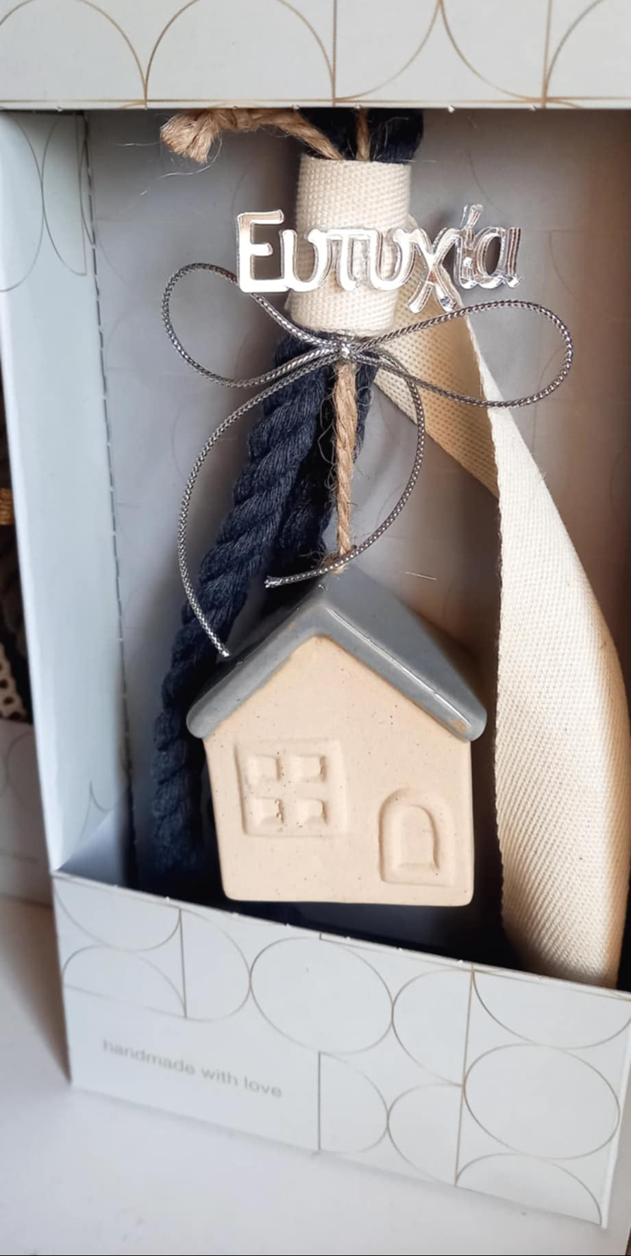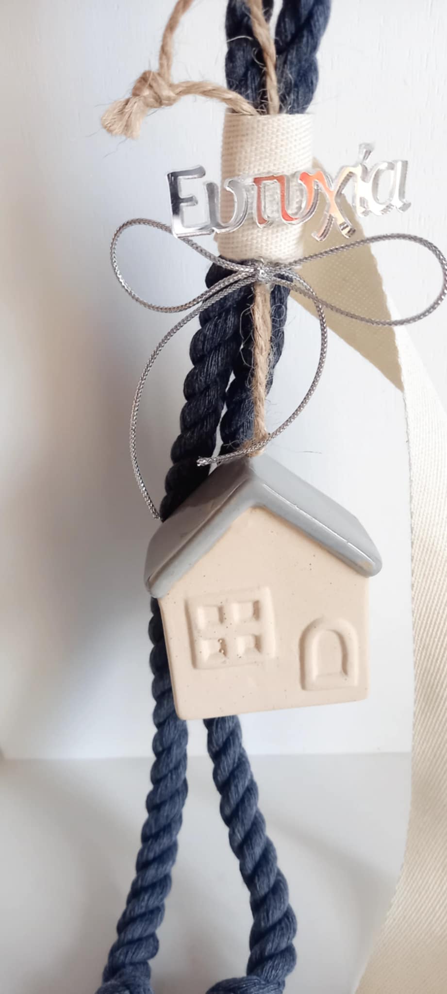 Γούρι 2026 κεραμικό σπιτάκι με σχοινί