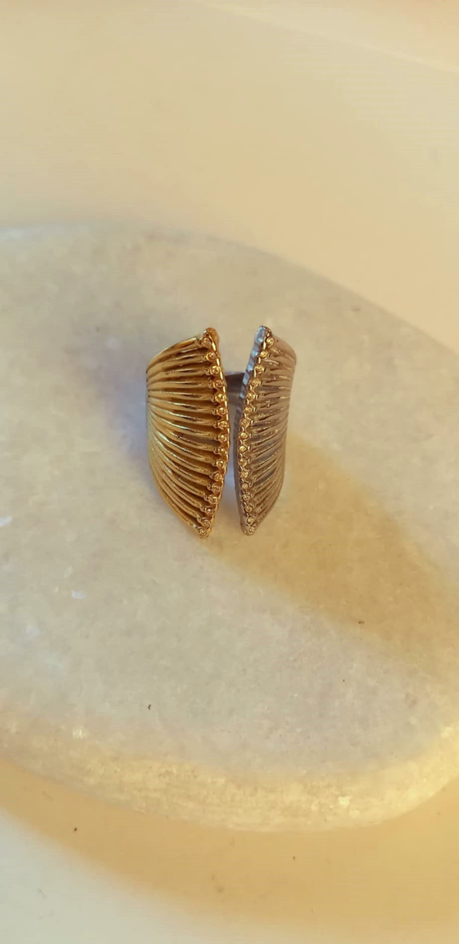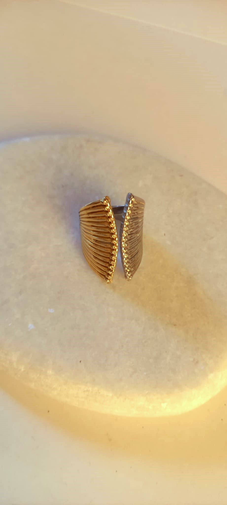 Δαχτυλίδι από ατσάλι σε συνδυασμό ασημί-χρυσού με ιδιαίτερο ανάγλυφο σχέδιο.