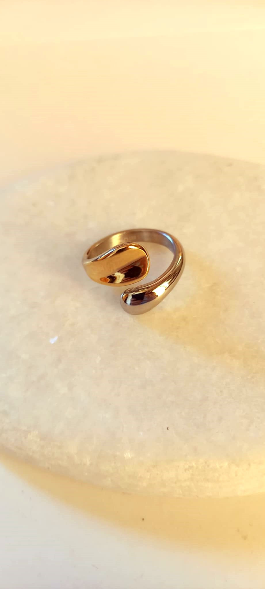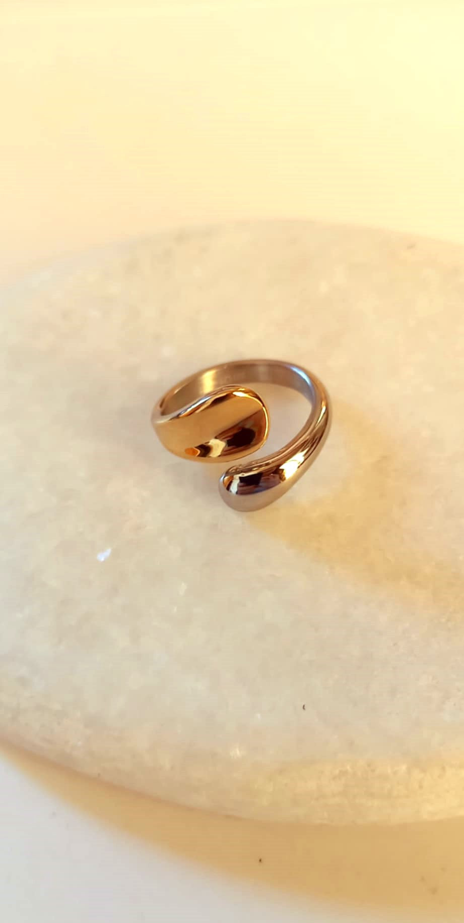 Κομψό δαχτυλίδι από ατσάλι σε συνδυασμό ασημί-χρυσού.