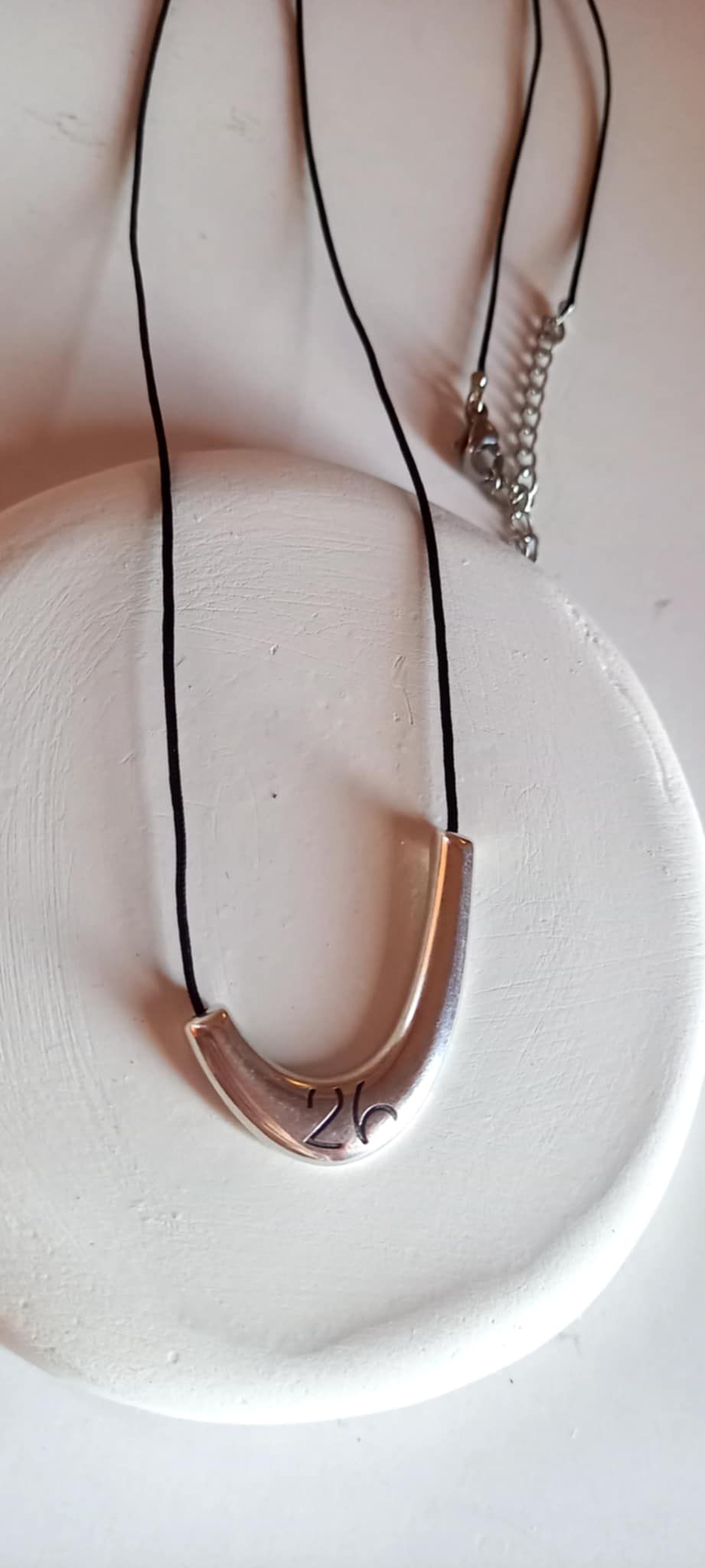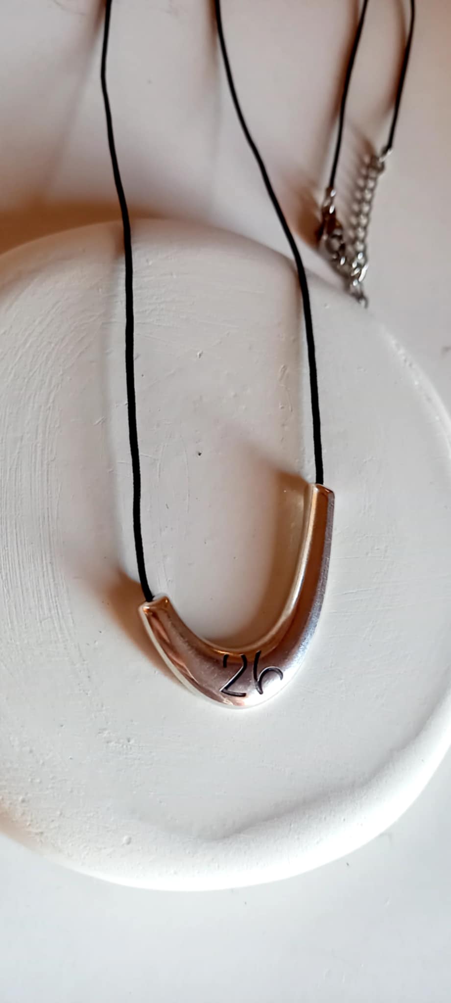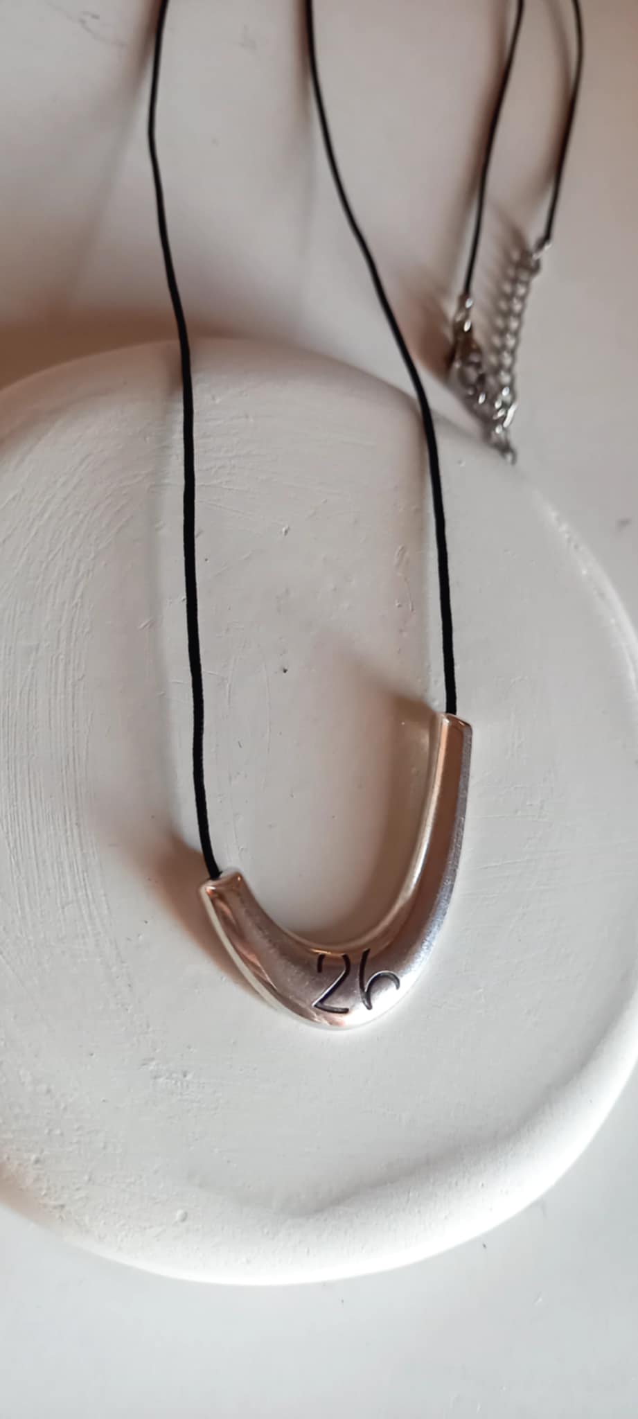 Κολιέ - γούρι 2026 με κορδόνι σε μαύρο χρώμα και μίνιμαλ μοτίφ με χαραγμένο το "26".