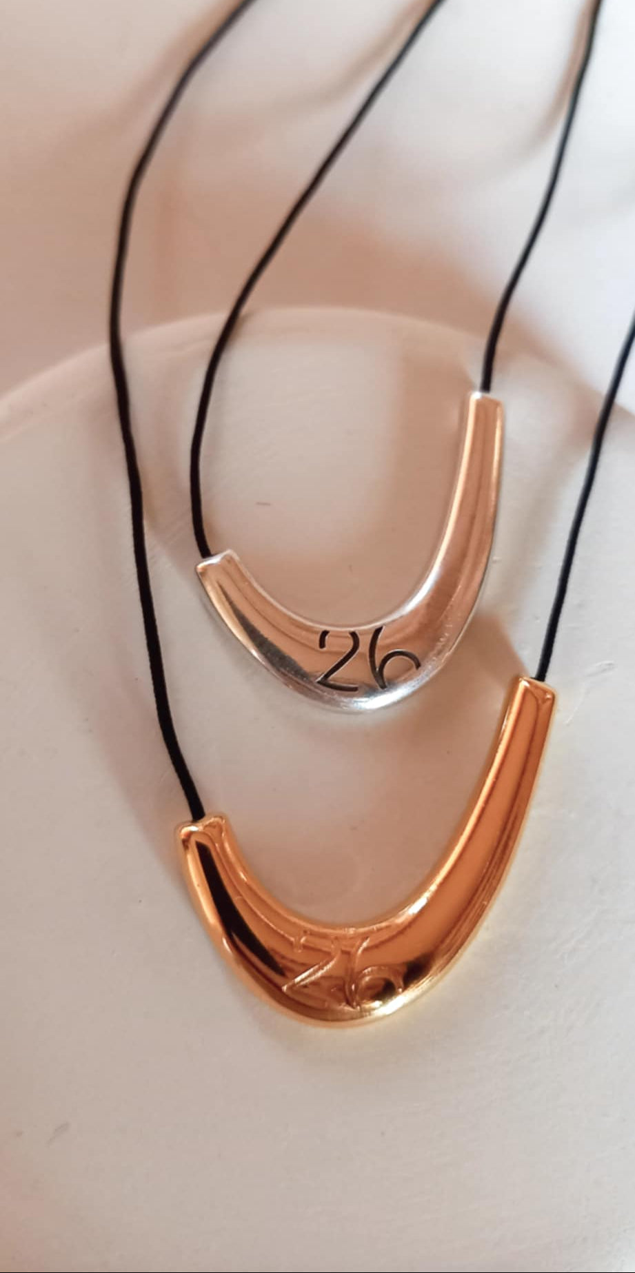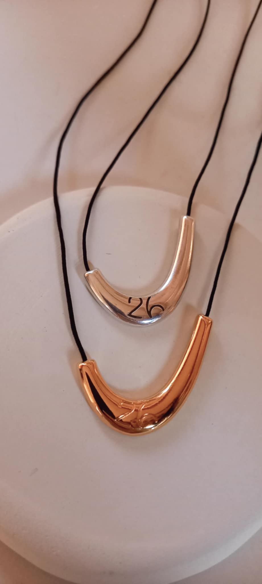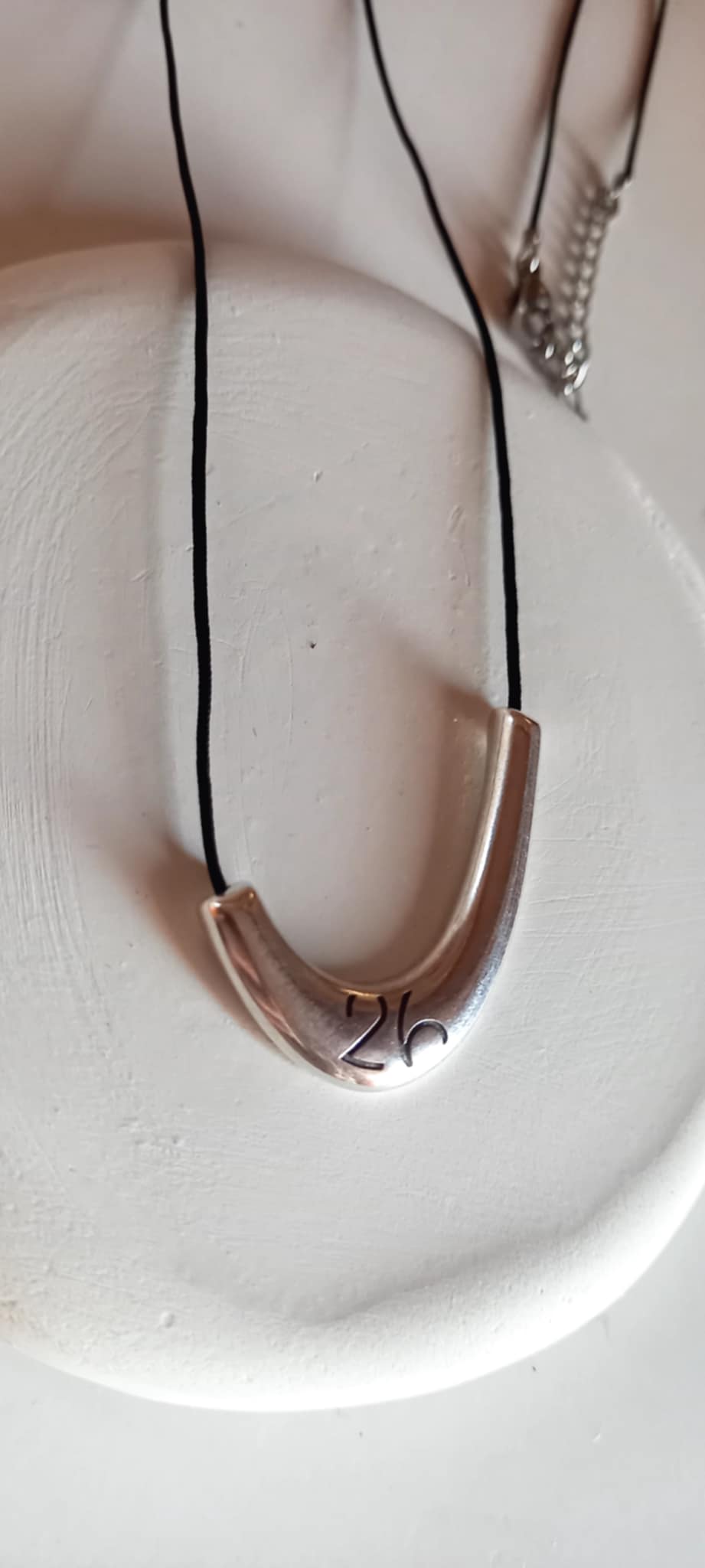 Κολιέ - γούρι 2026 με κορδόνι σε μαύρο χρώμα και μίνιμαλ μοτίφ με χαραγμένο το "26".
