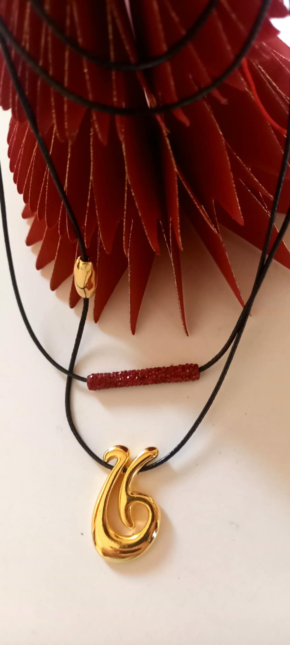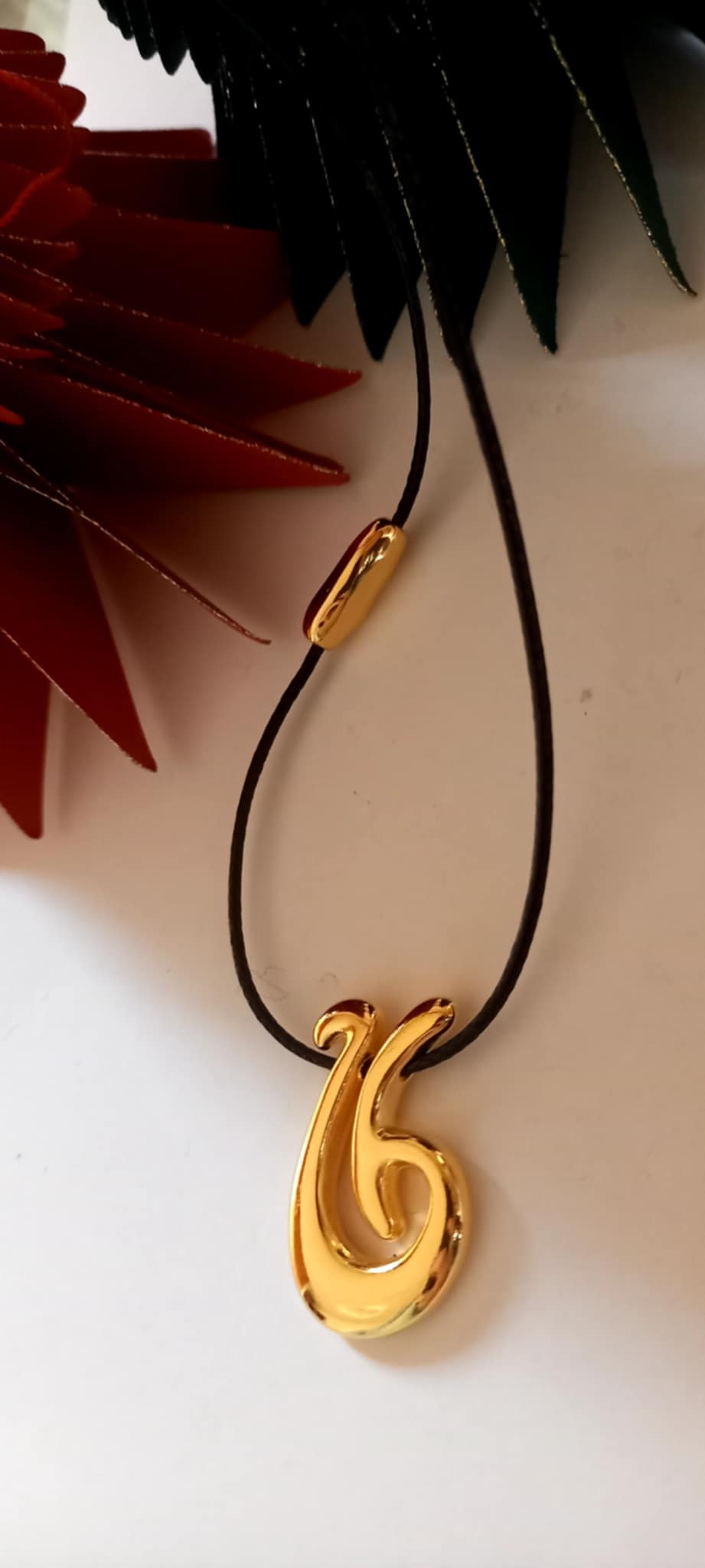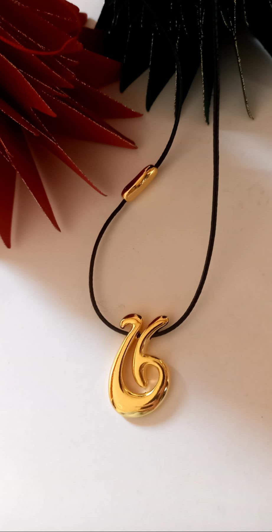 Εντυπωσιακό κολιέ - γούρι με μαύρο κορδόνι, επιχρυσωμένο μοτίφ "26" και κομψό επιχρυσωμένο συνδετικό στοιχείο.