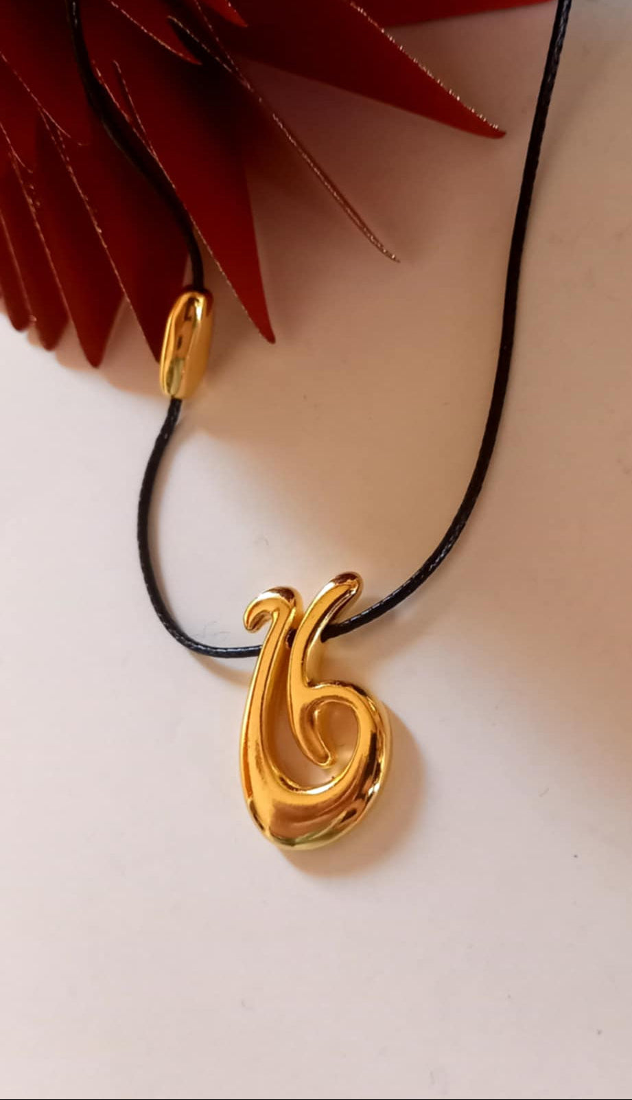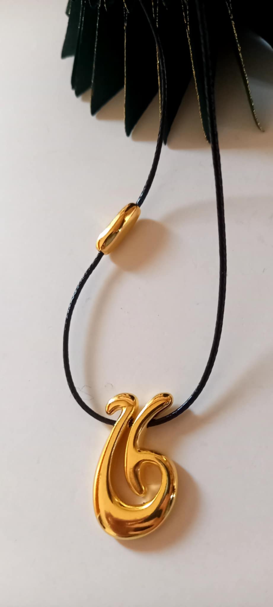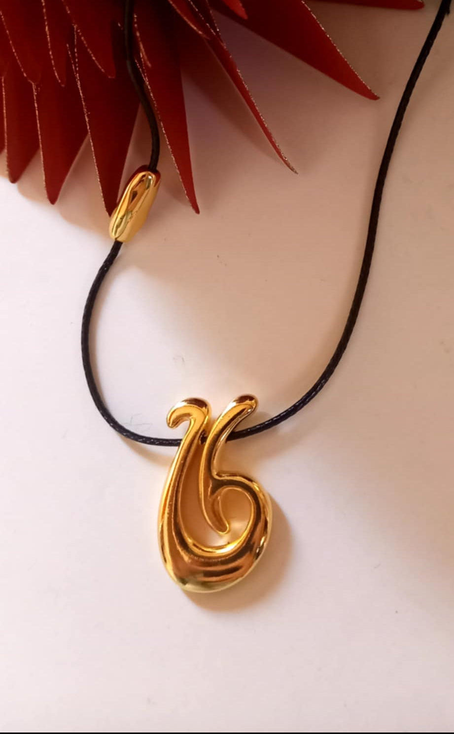 Εντυπωσιακό κολιέ - γούρι με μαύρο κορδόνι, επιχρυσωμένο μοτίφ "26" και κομψό επιχρυσωμένο συνδετικό στοιχείο.