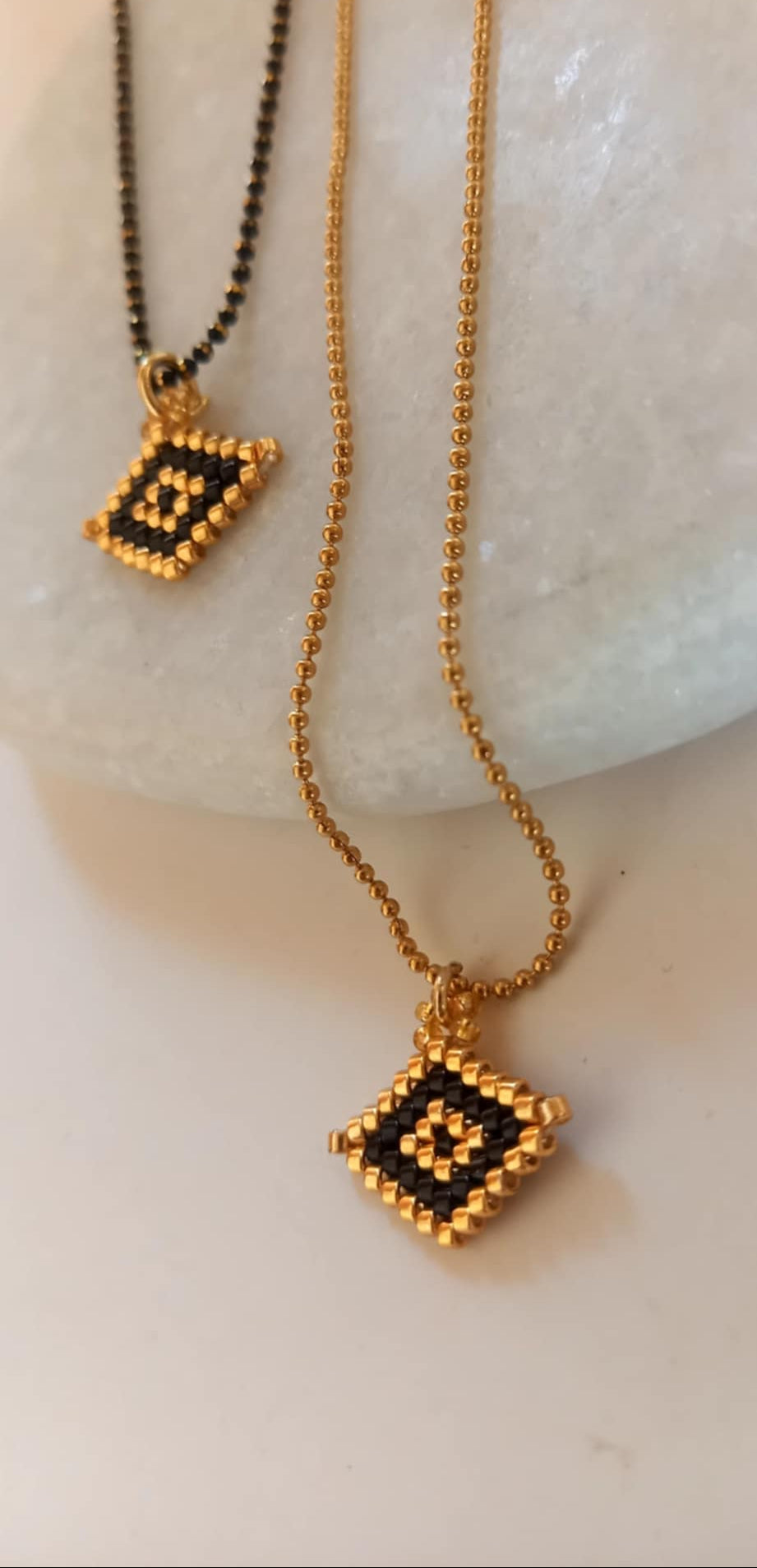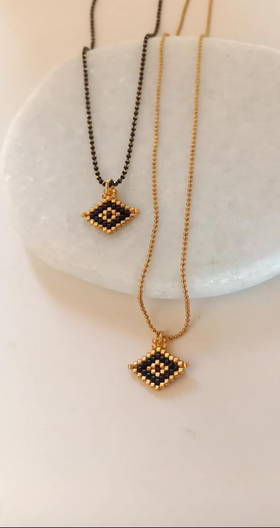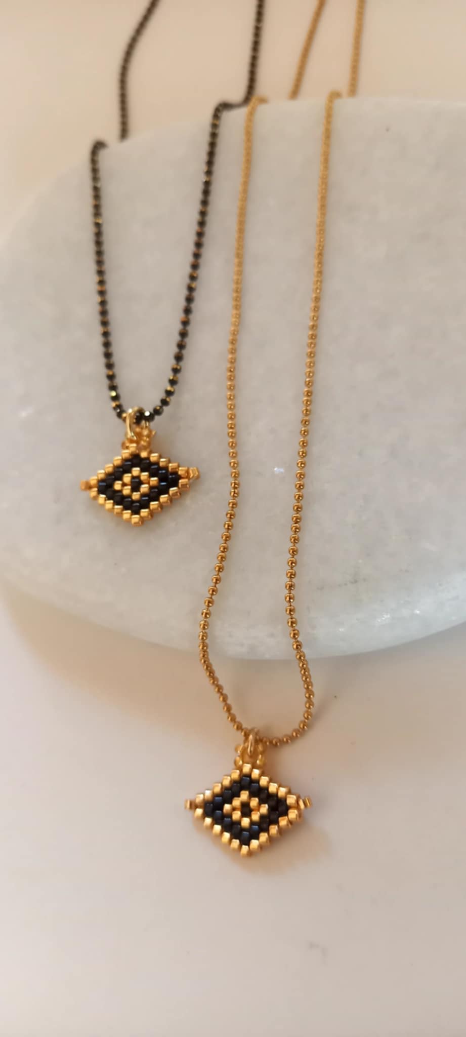 Κομψό χειροποίητο κολιέ με αλυσίδα και μάτι miyuki.