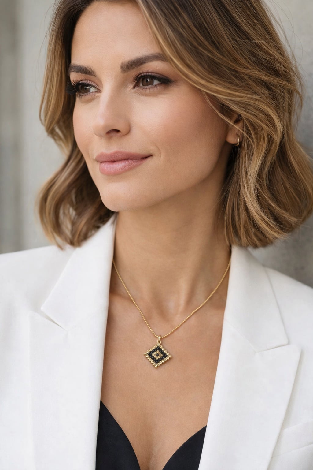 Διαθέσιμο με χρυσή και μαύρη αλυσίδα.