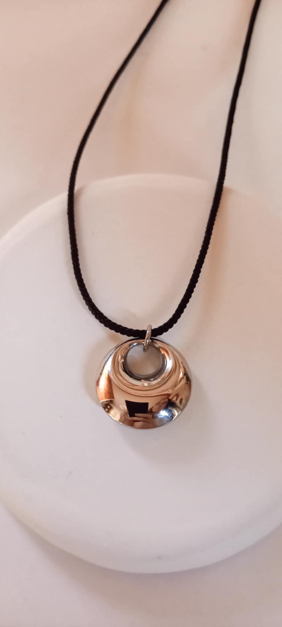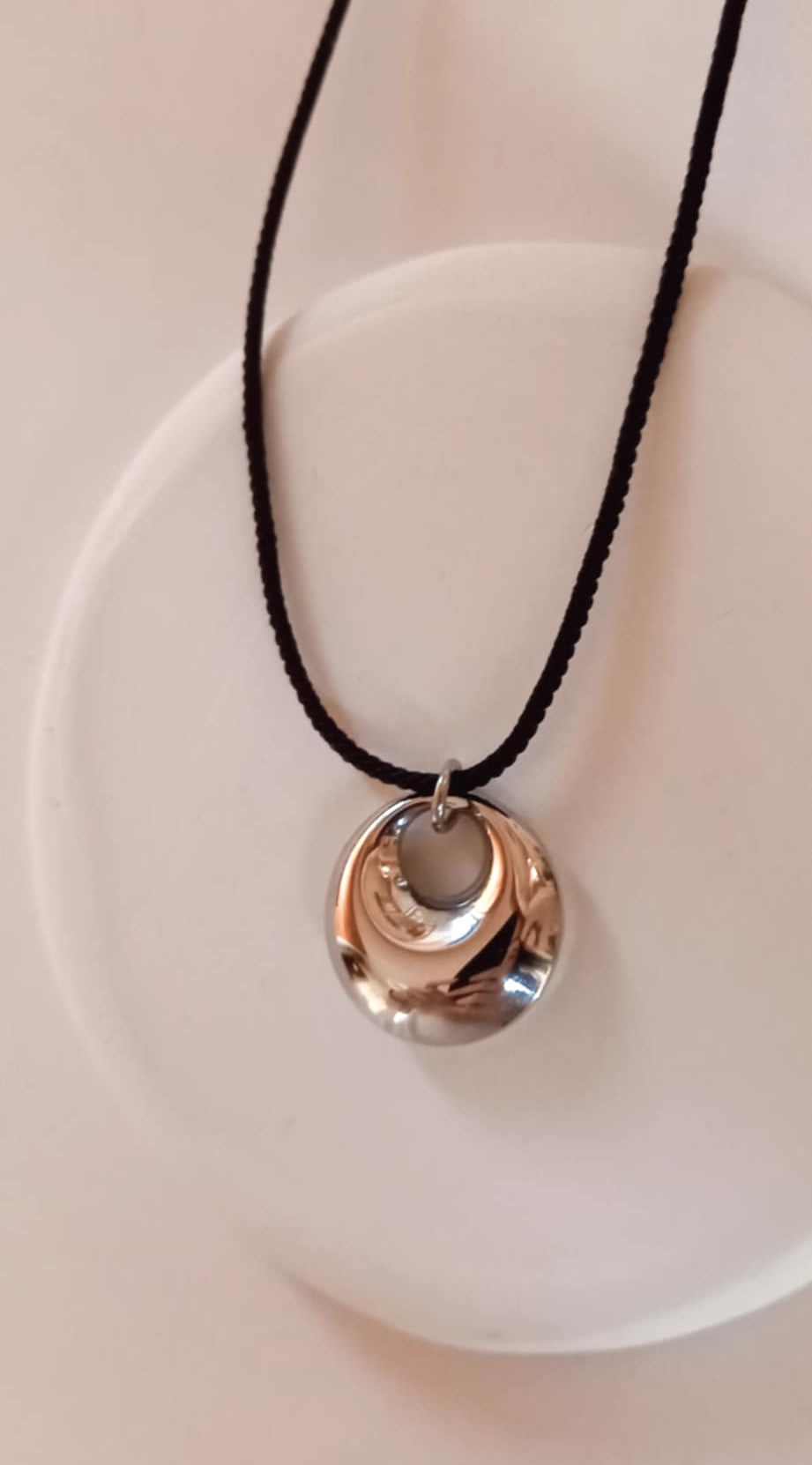 Κολιέ με κορδόνι και ατσάλινο μοτίφ