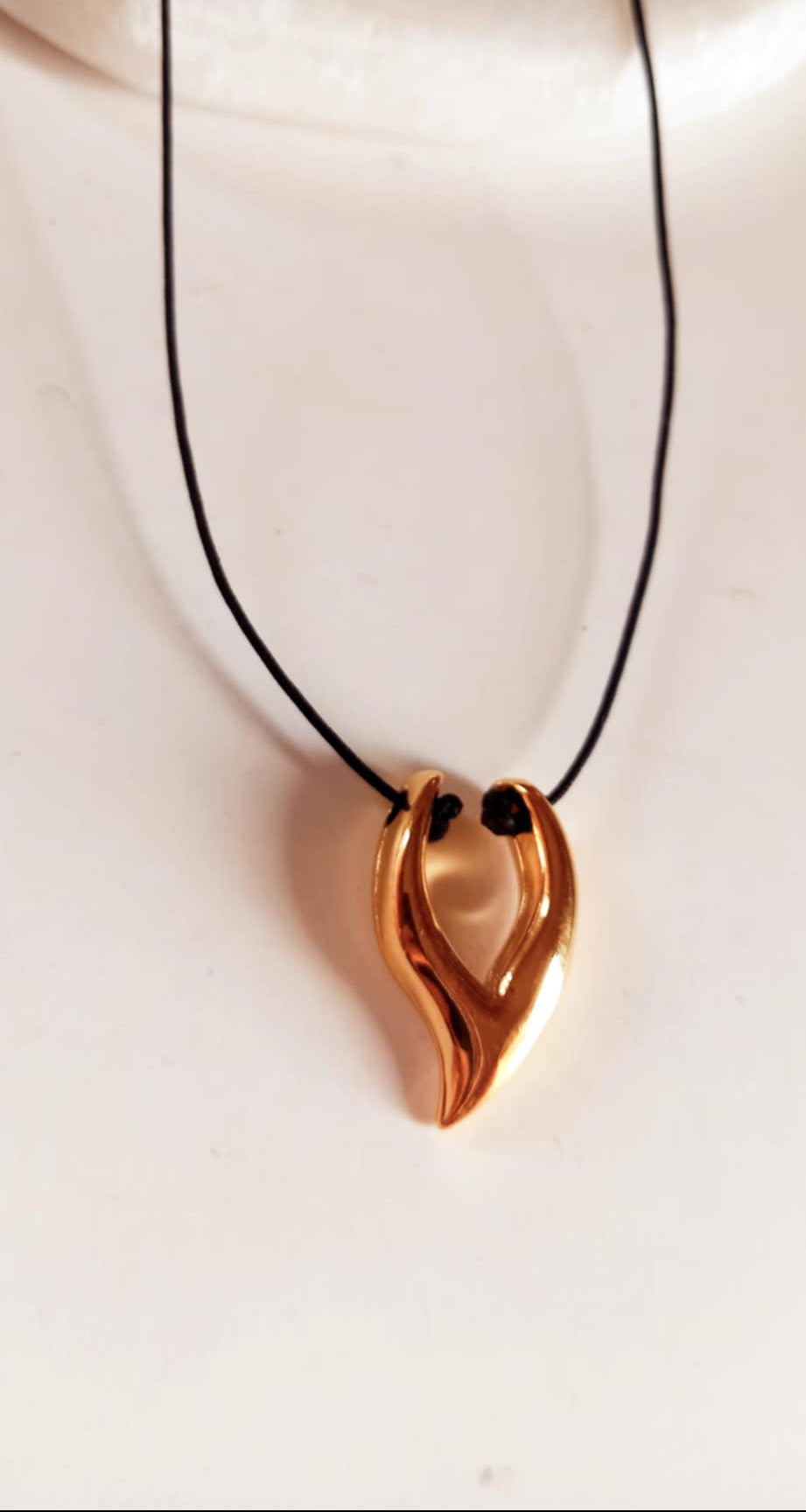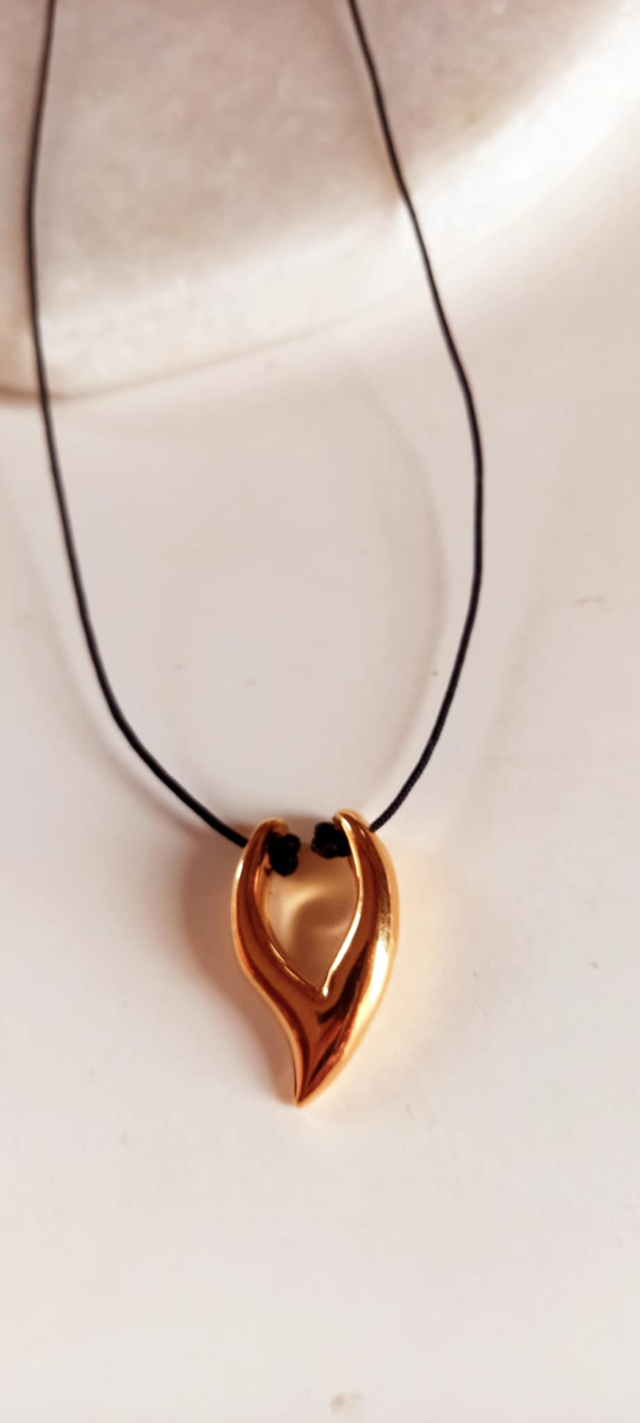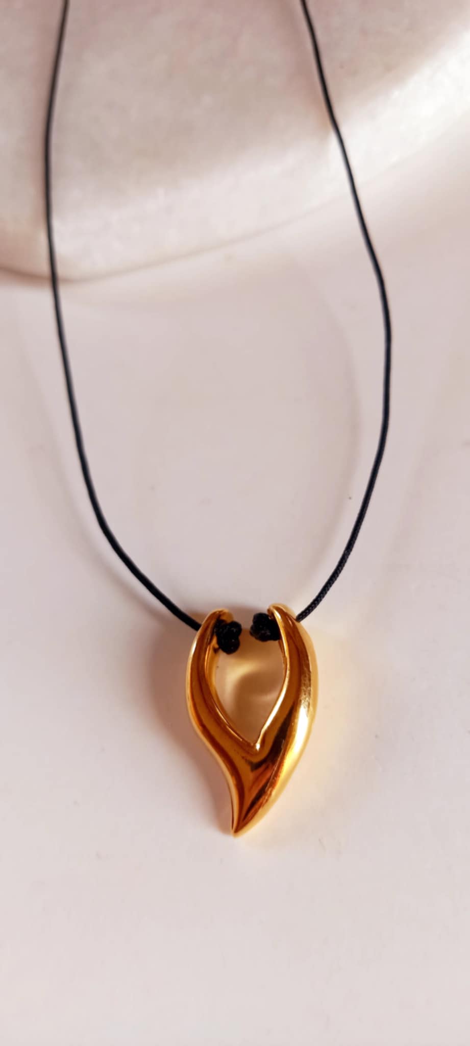 Κολιέ με μαύρο κορδόνι και επιχρυσωμένο μοτίφ.