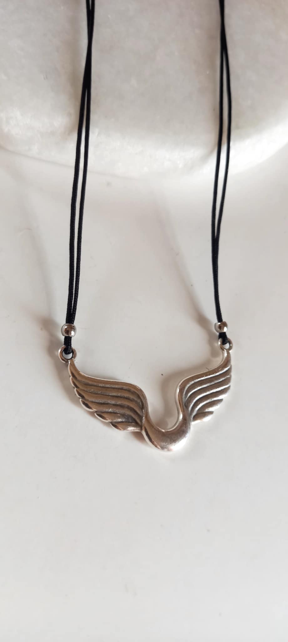 Κολιέ με κορδόνι σε μαύρο χρώμα και μοτίφ φτερά αγγέλου.