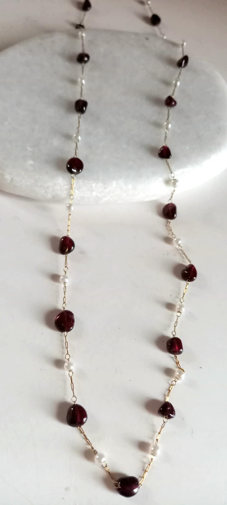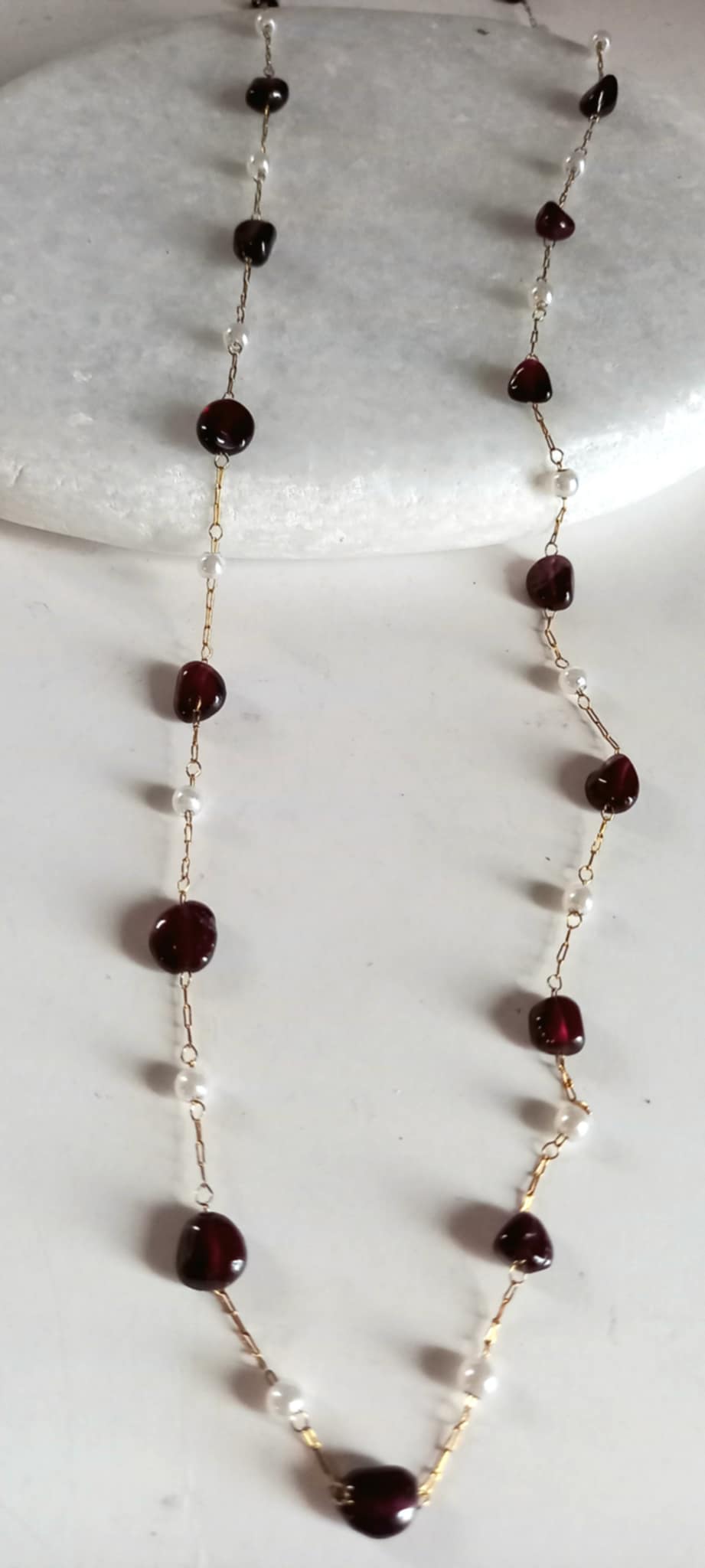 Κολιέ - ροζάριο με ημιπολύτιμες πέτρες και πέρλες.