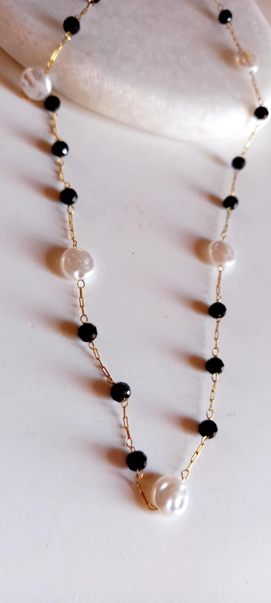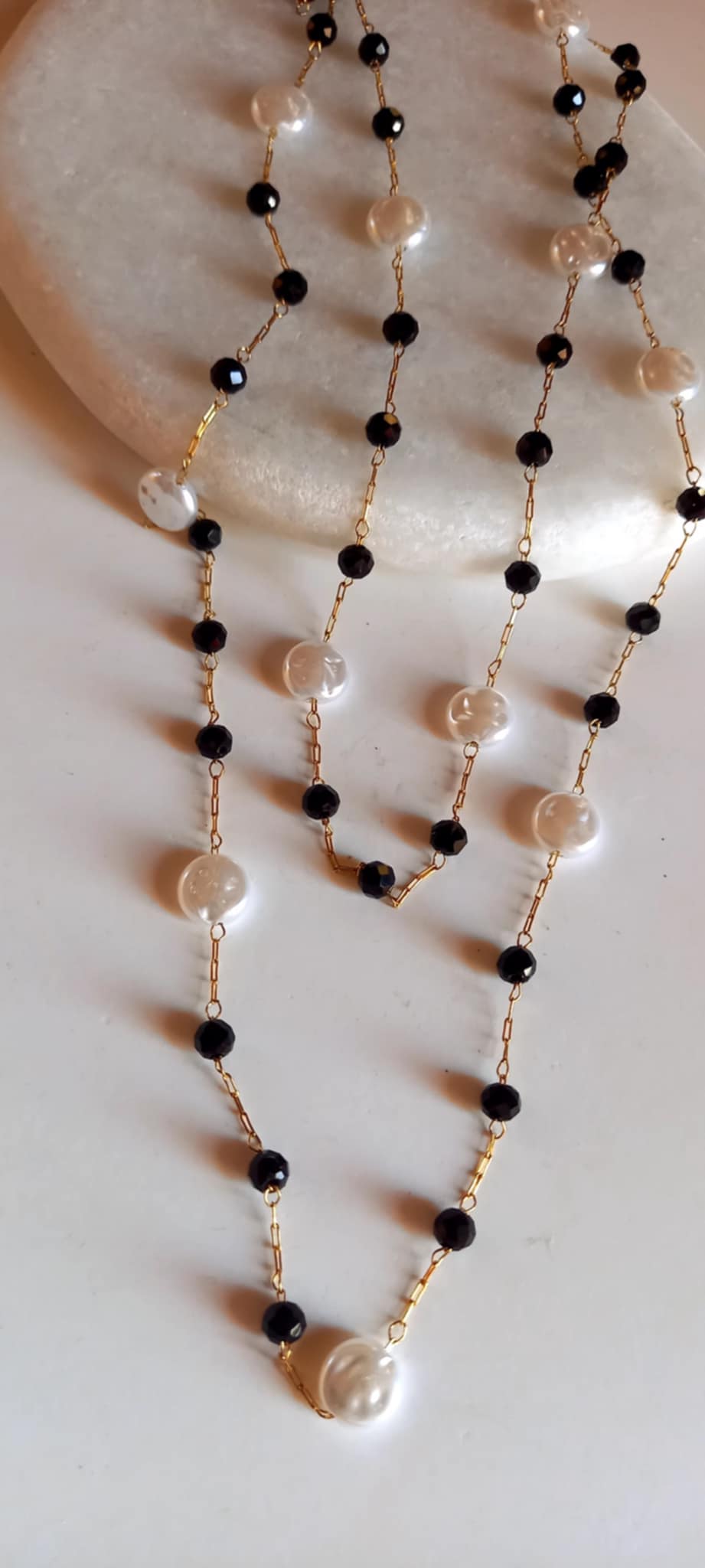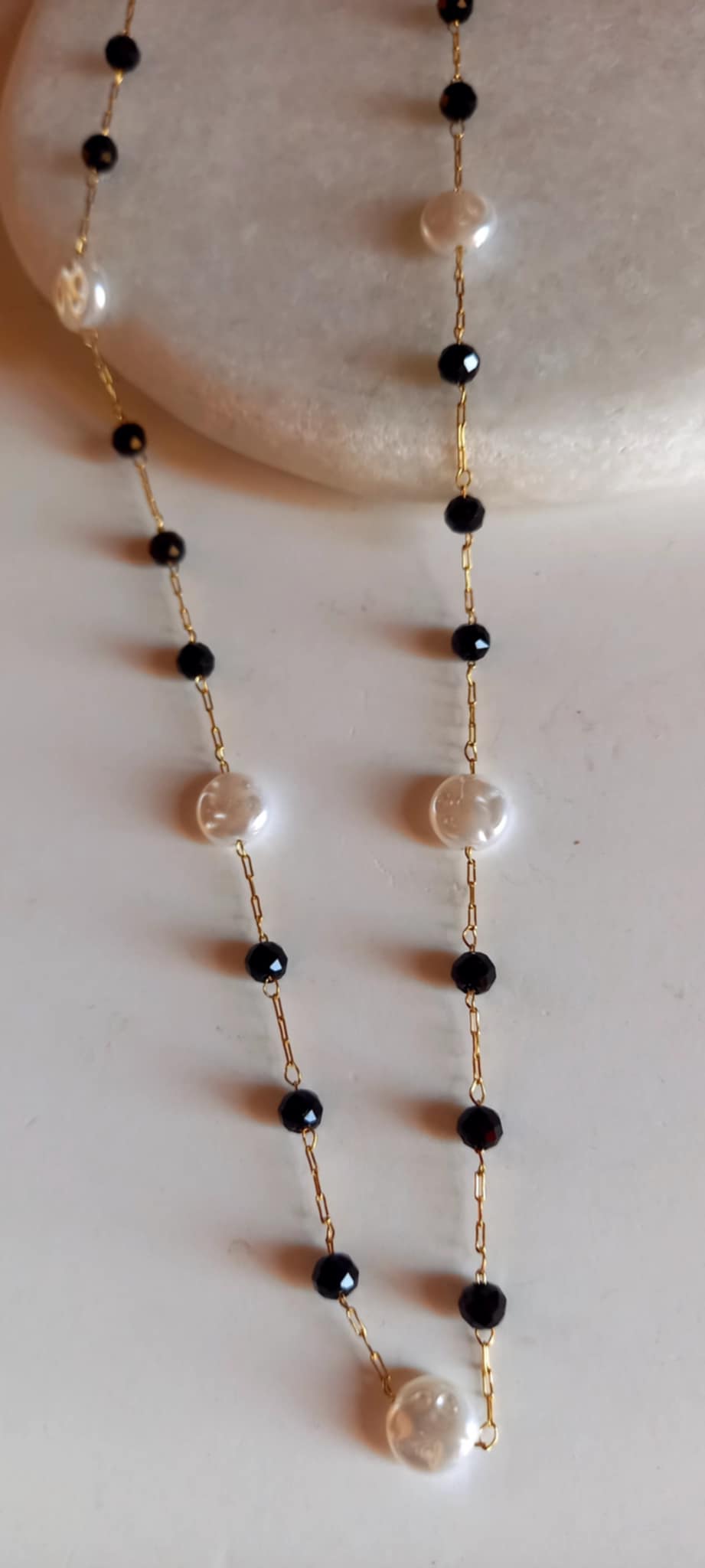Κολιέ - ροζάριο σε συνδυασμό λευκού και μαύρου.