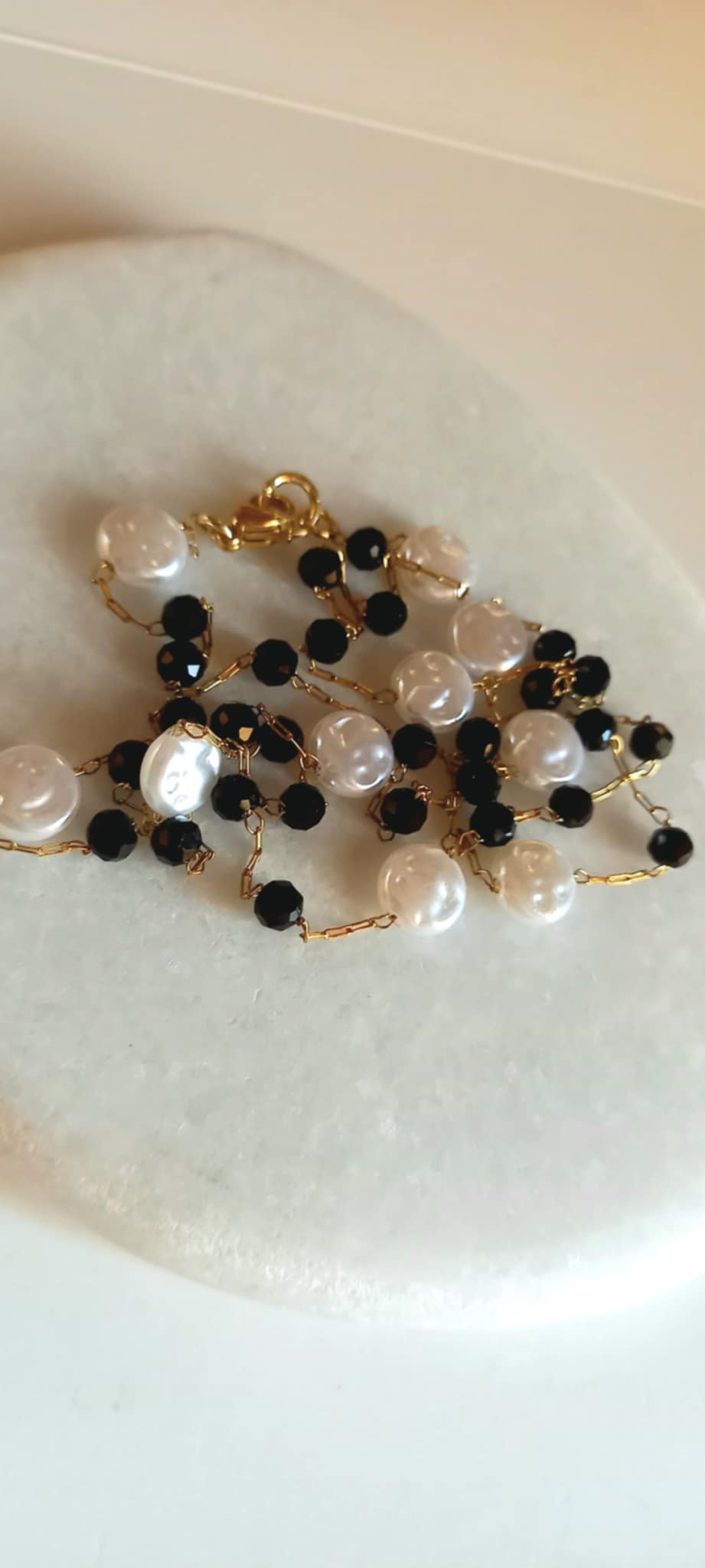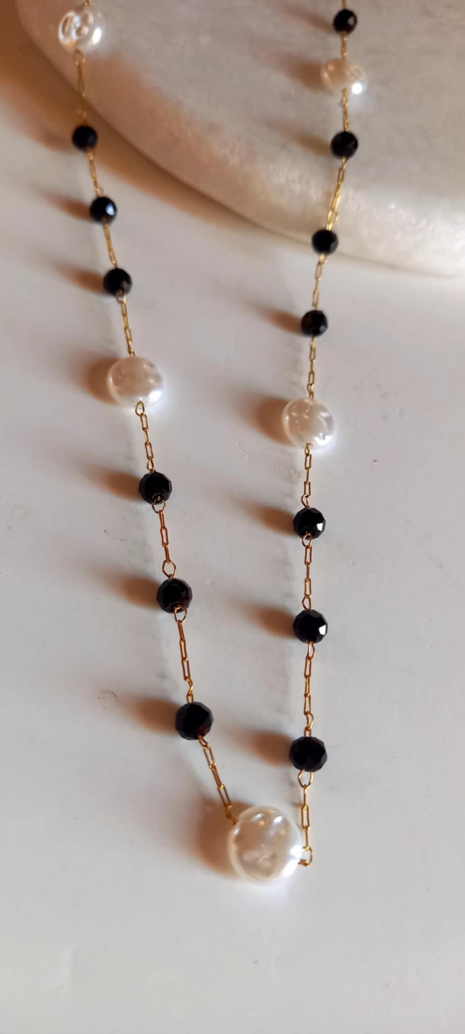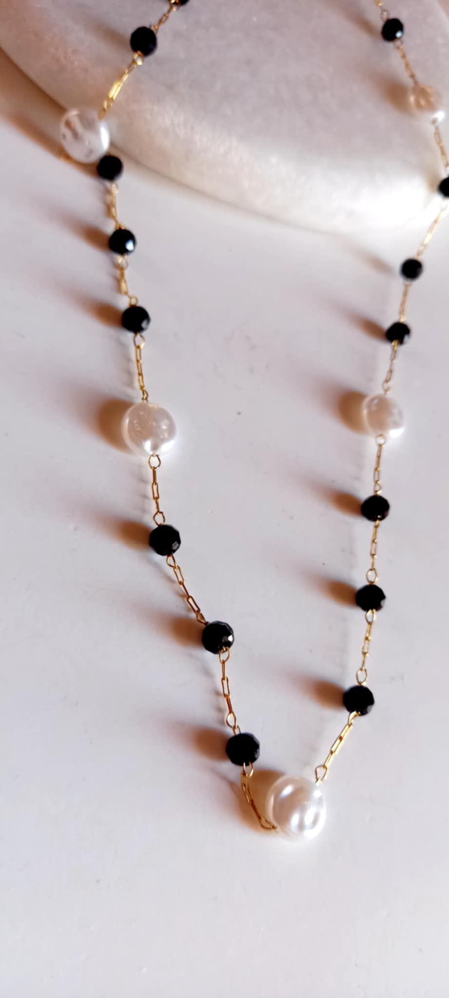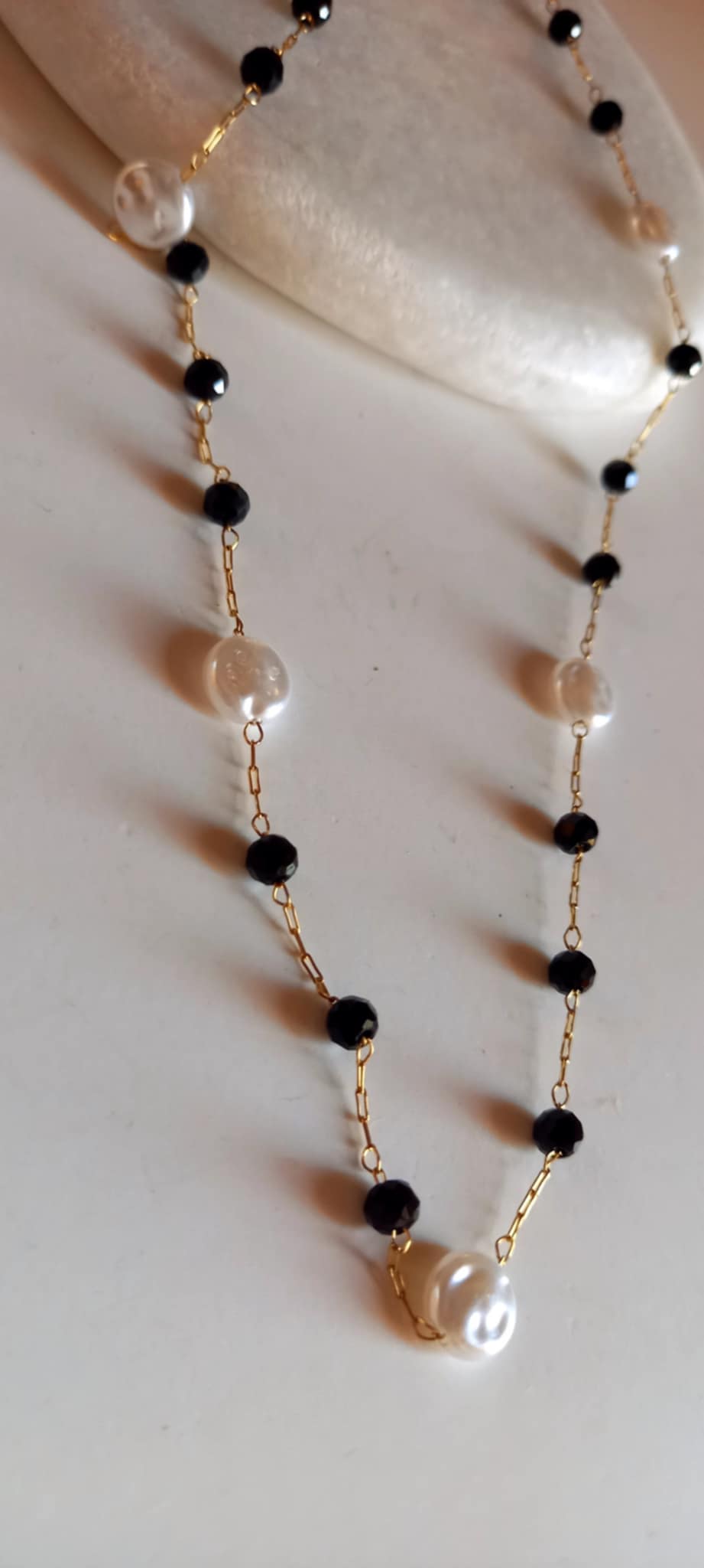 Κολιέ - ροζάριο σε συνδυασμό λευκού και μαύρου.