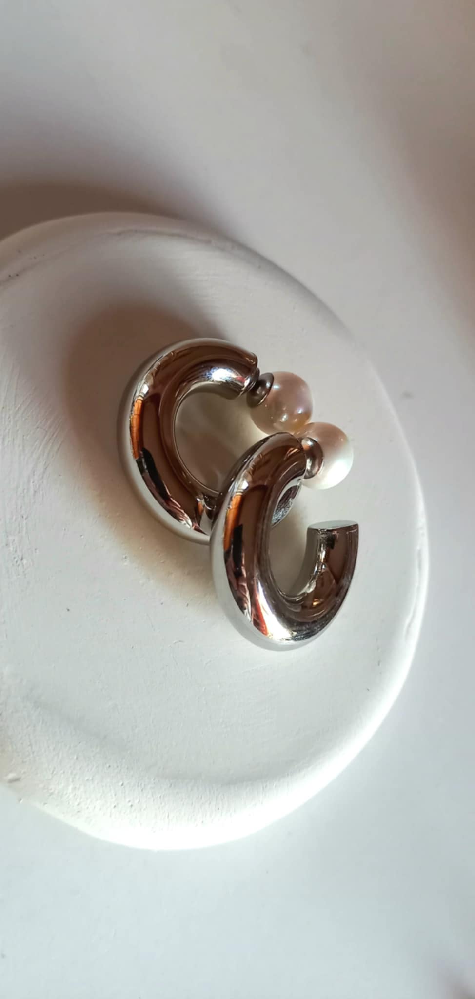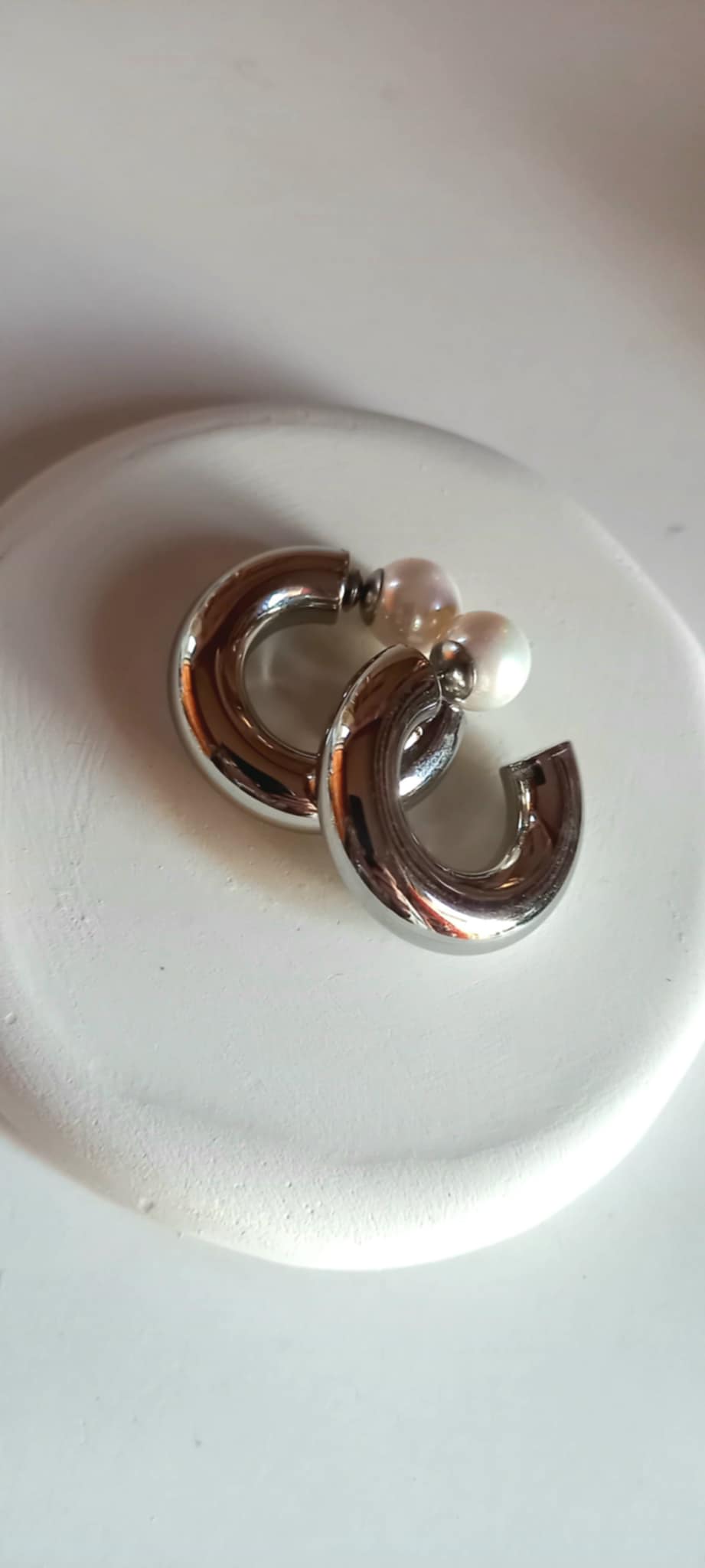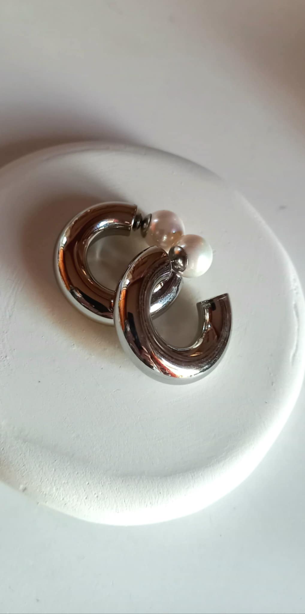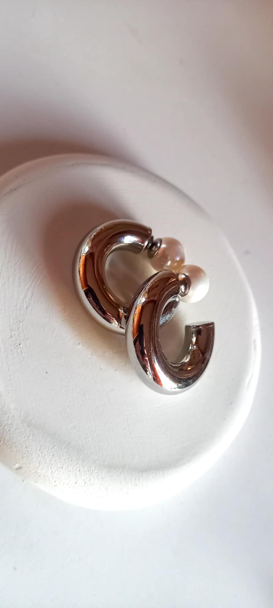 Εντυπωσιακοί κρίκοι από ατσάλι με ιδιαίτερο κούμπωμα πέρλα.