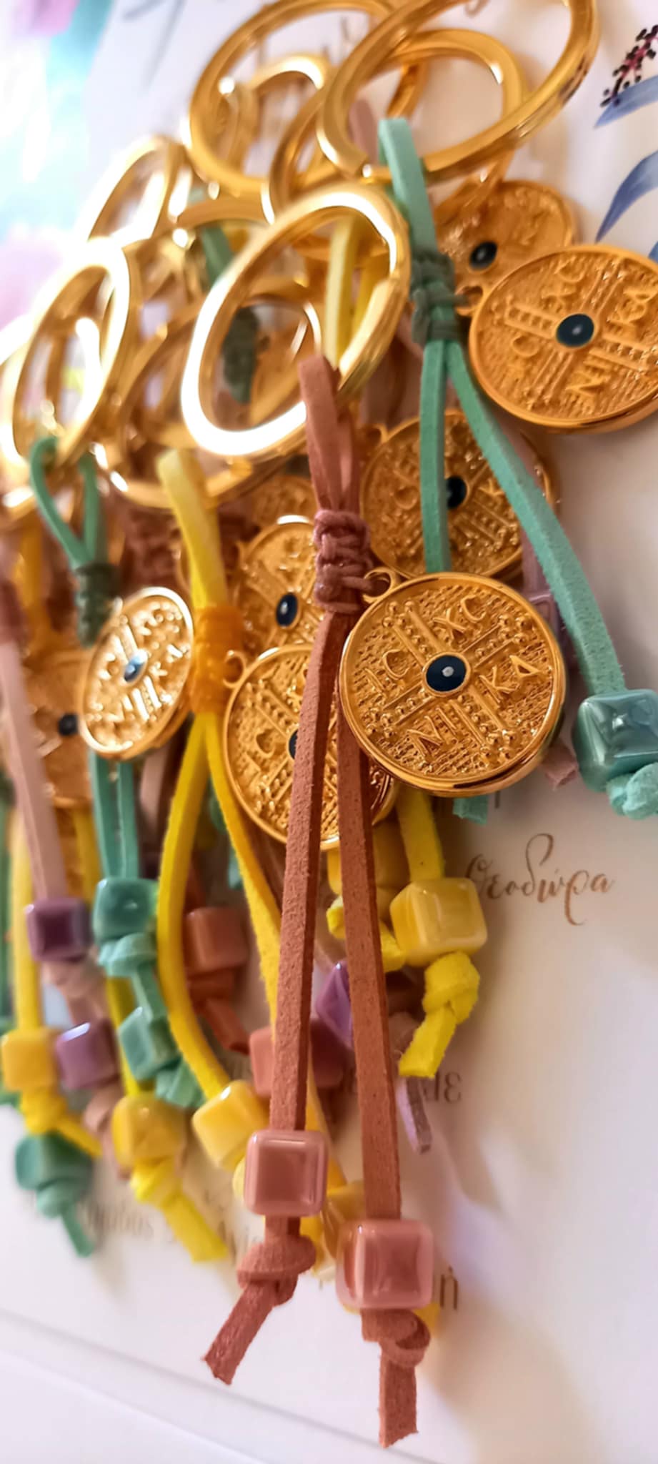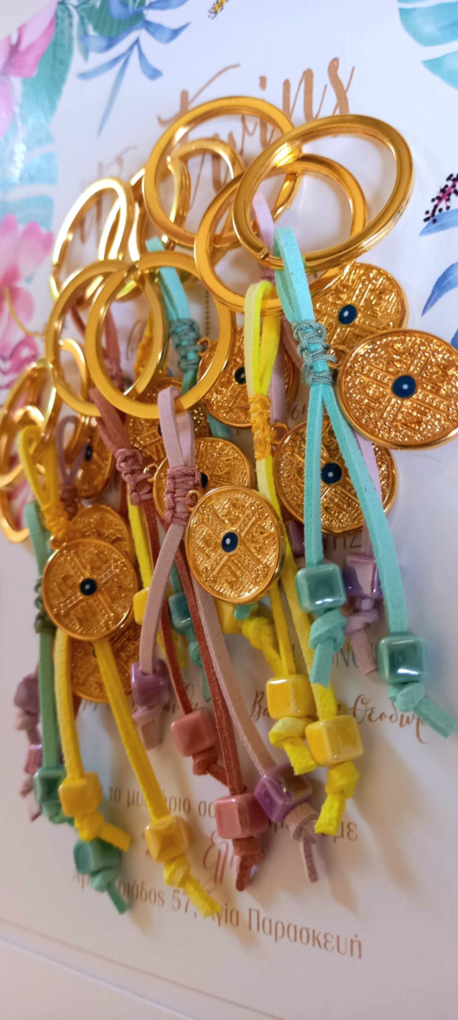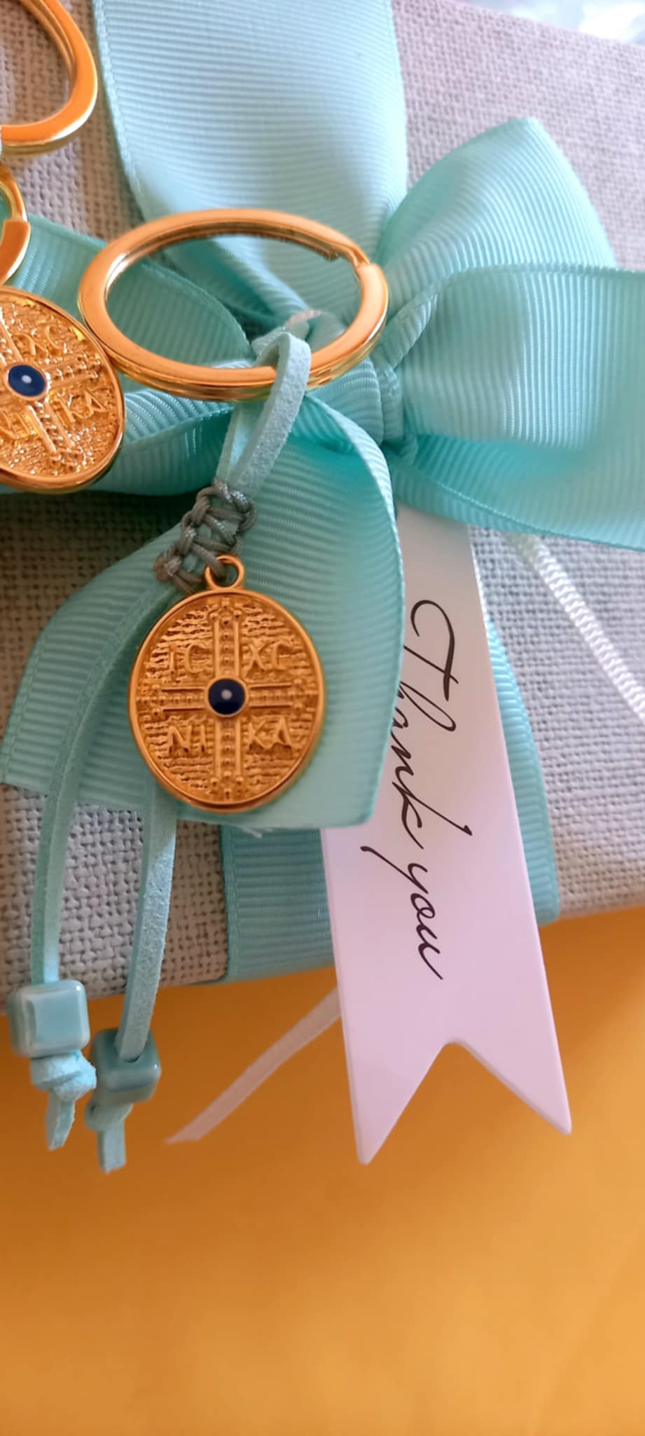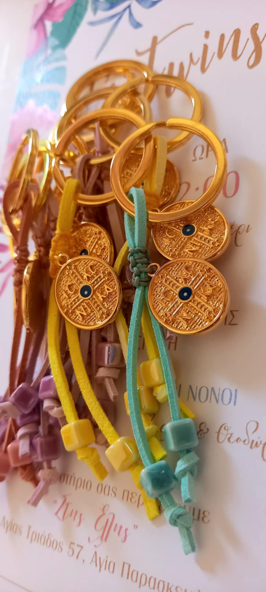 Χειροποίητο μαρτυρικό βάπτισης μπρελόκ με καστόρι, κωνσταντινάτο με μάτι με σμάλτο και κεραμικές χάντρες.