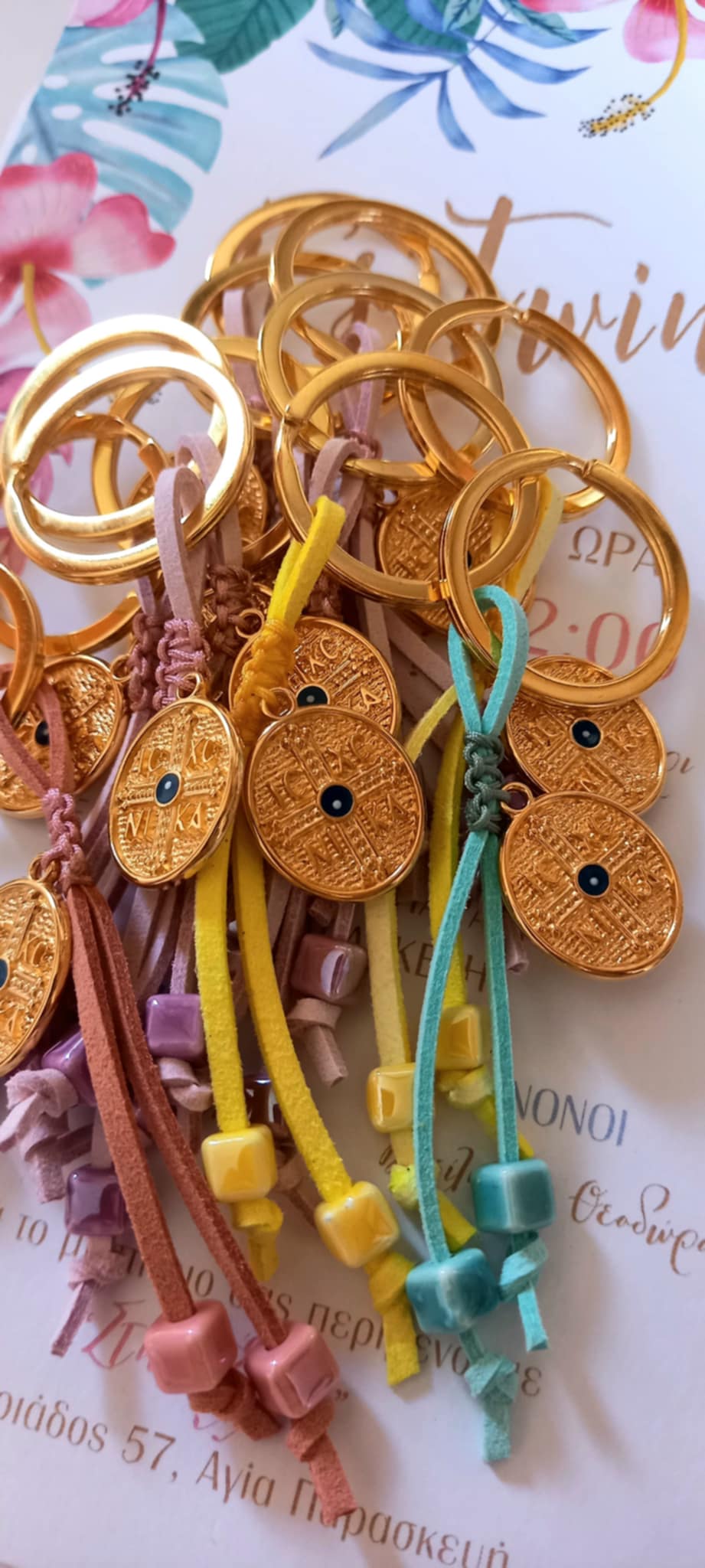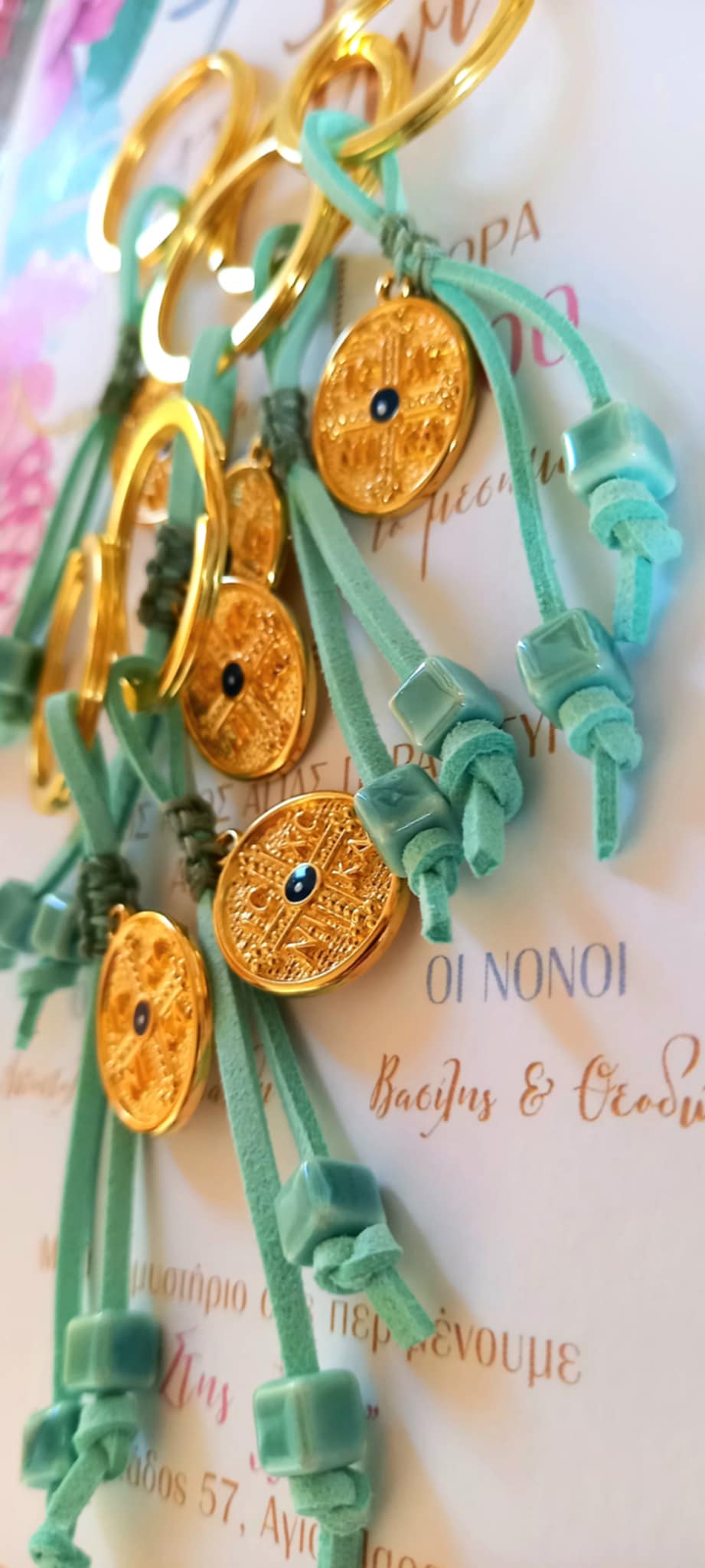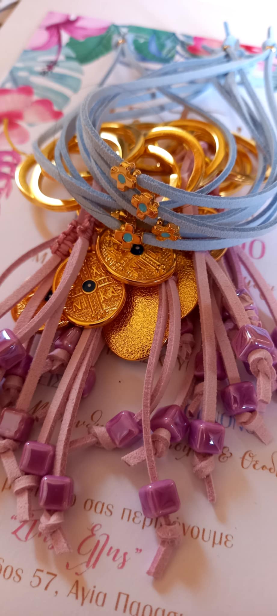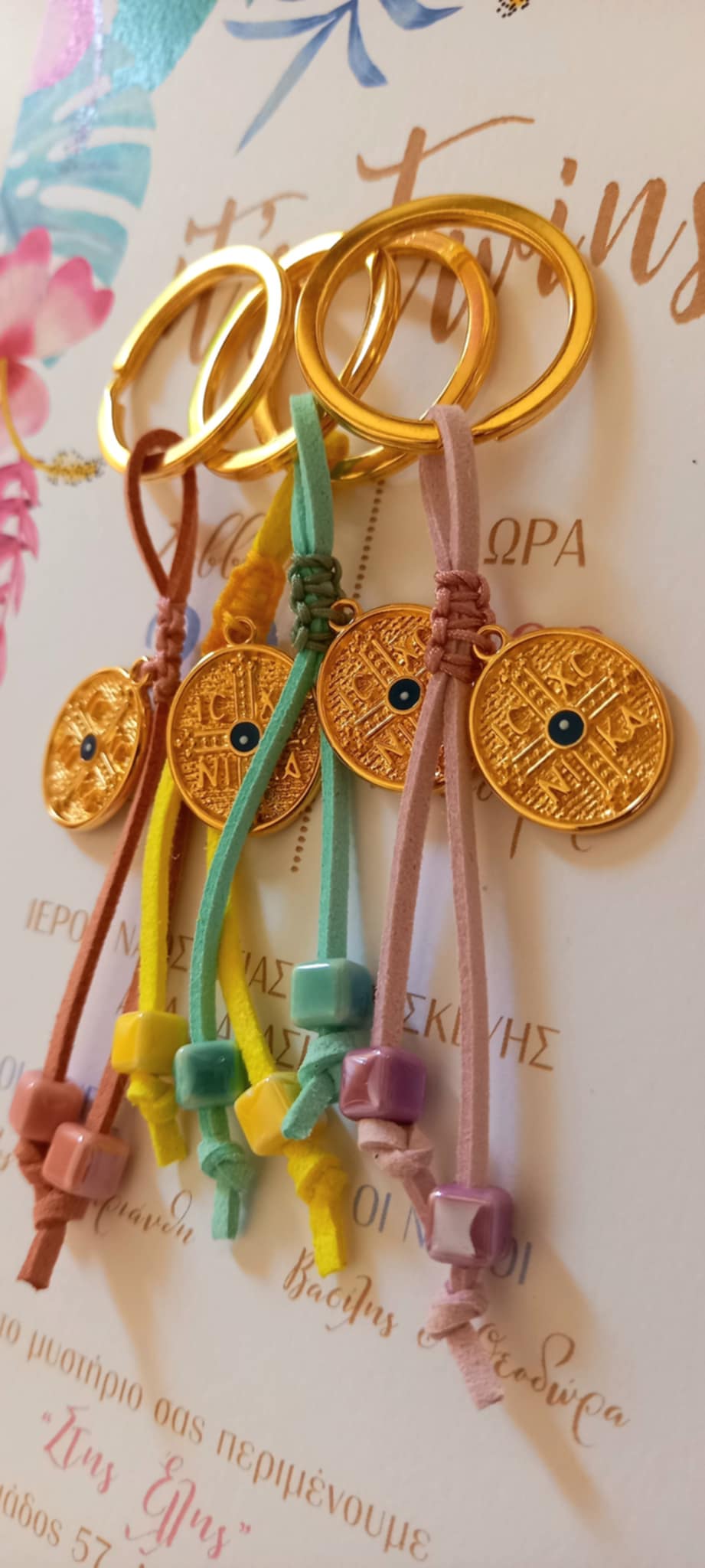 Χειροποίητο μαρτυρικό βάπτισης μπρελόκ με καστόρι, κωνσταντινάτο με μάτι με σμάλτο και κεραμικές χάντρες.