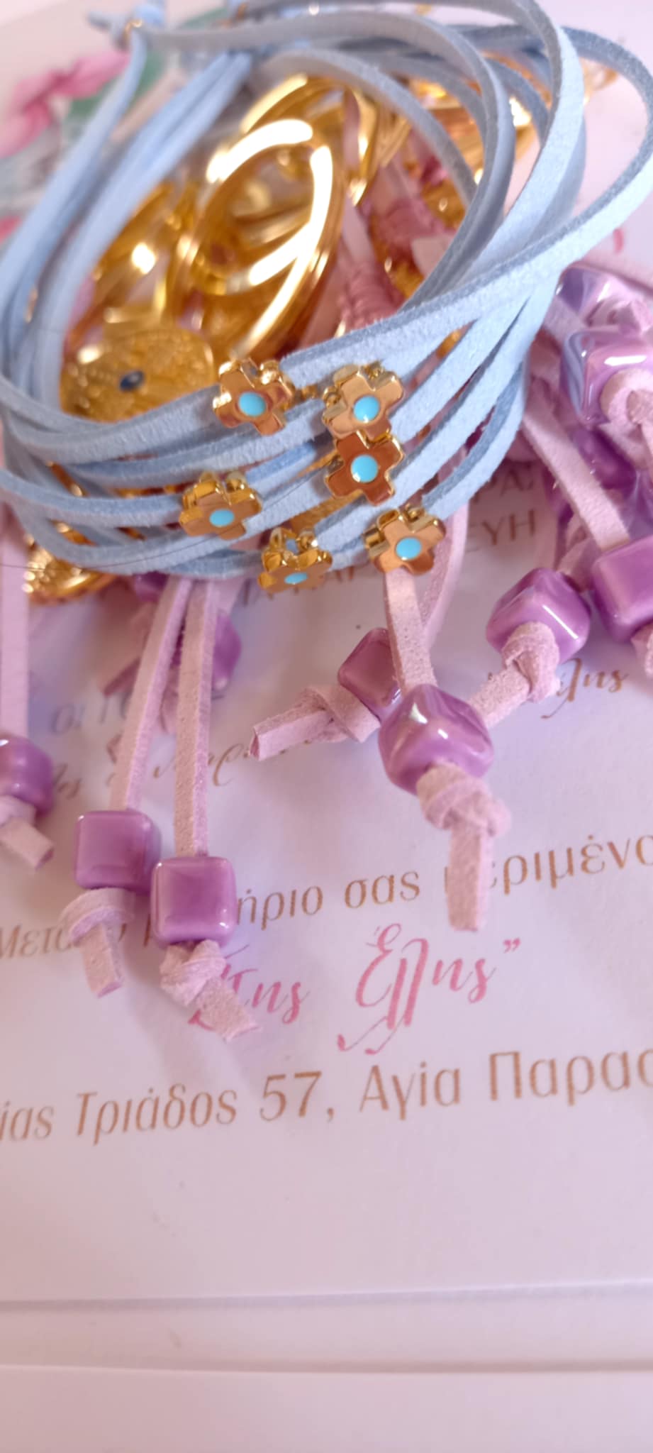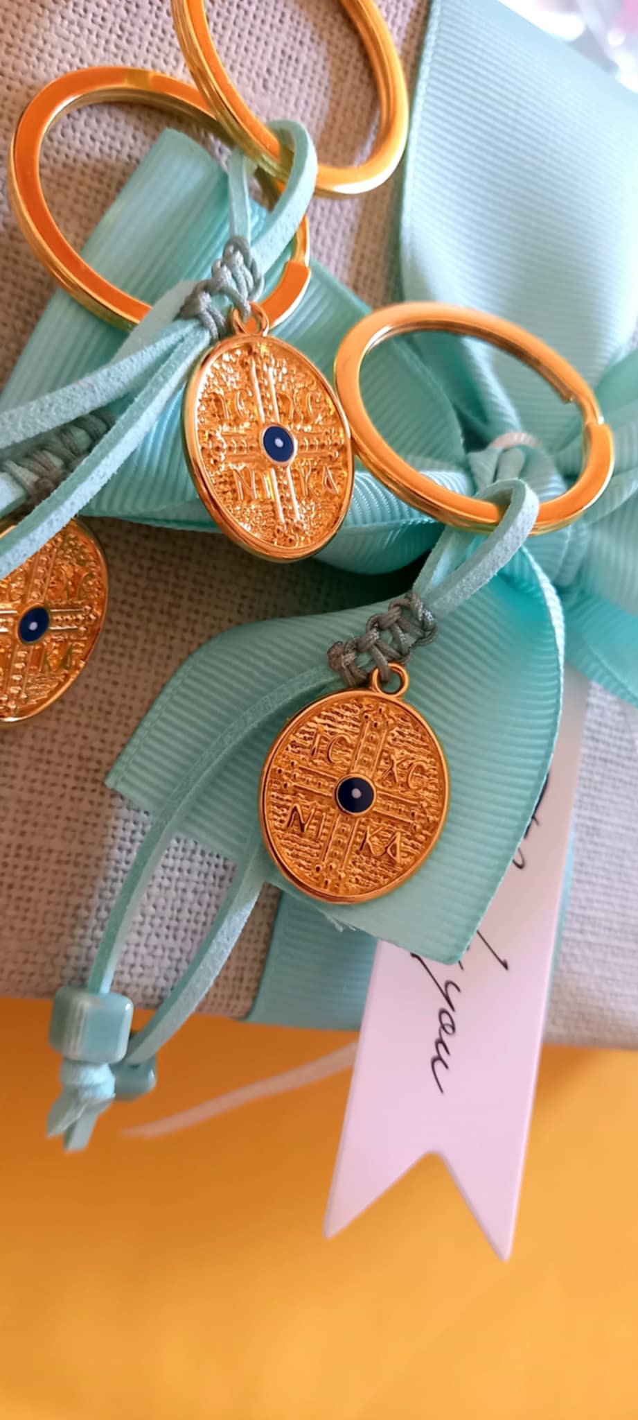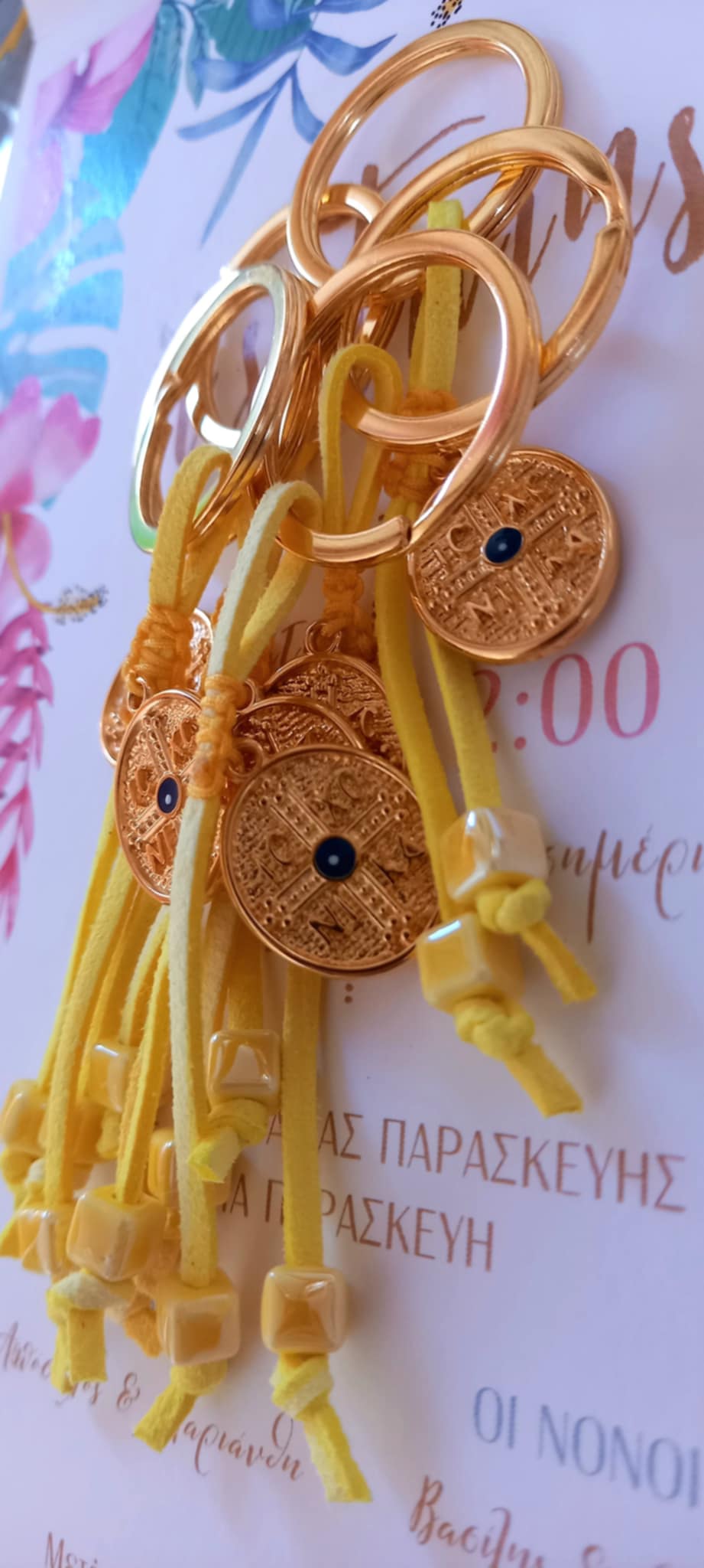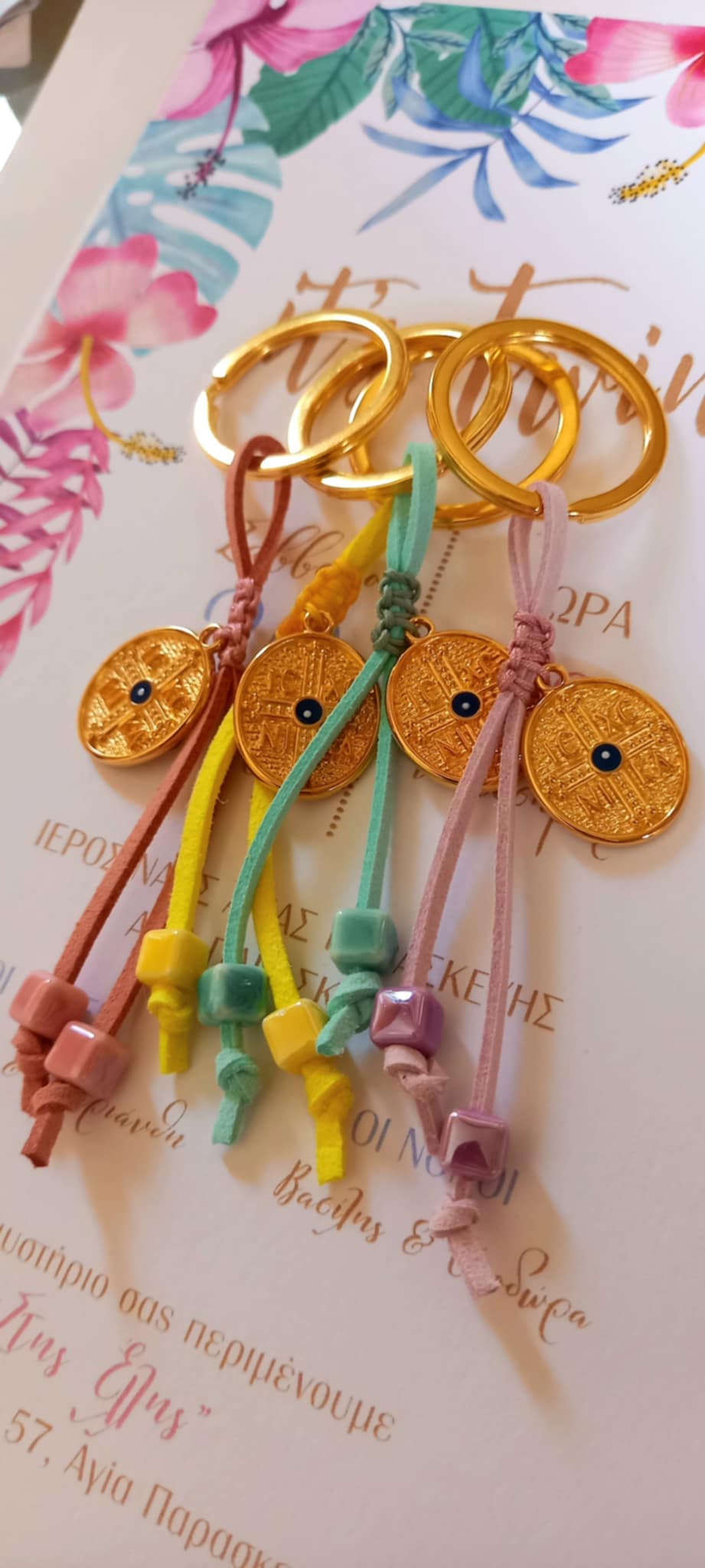 Χειροποίητο μαρτυρικό βάπτισης μπρελόκ με καστόρι, κωνσταντινάτο με μάτι με σμάλτο και κεραμικές χάντρες.