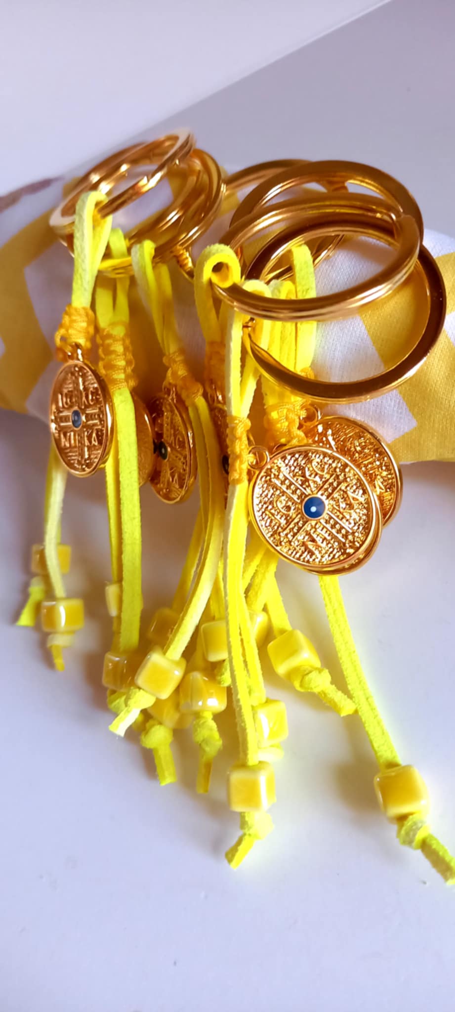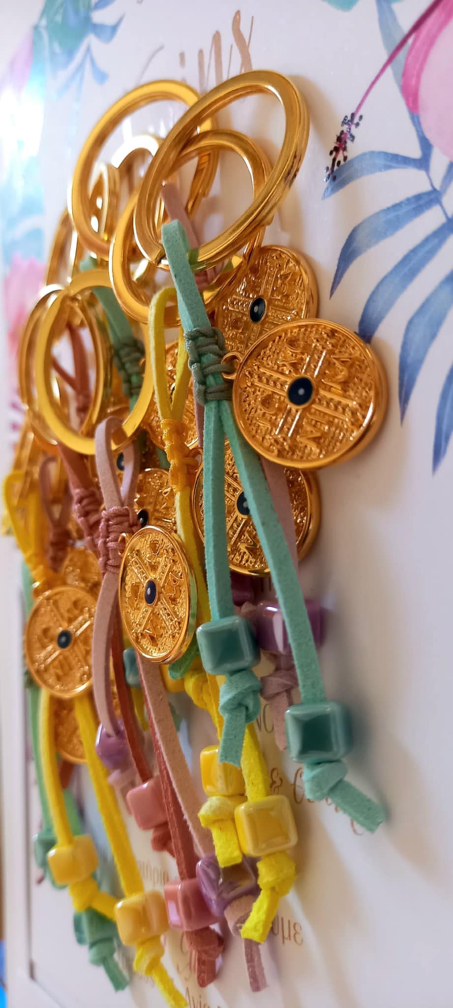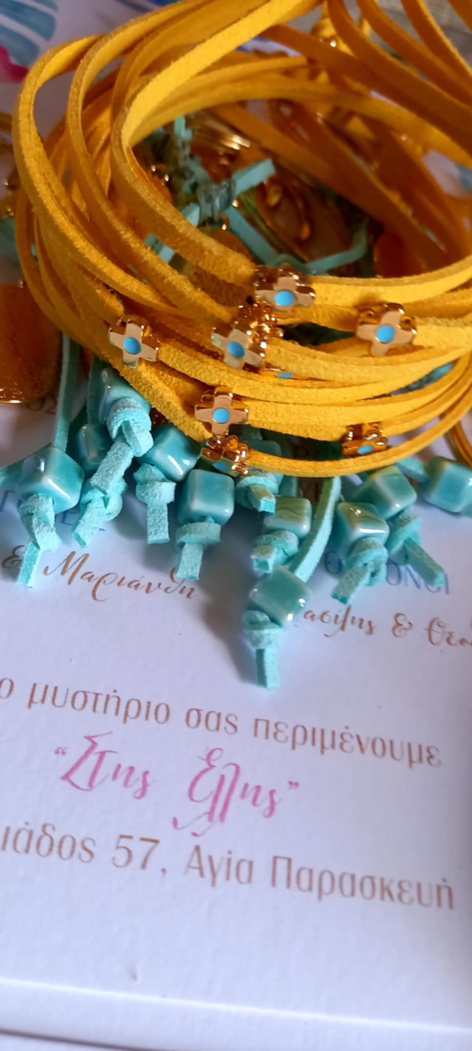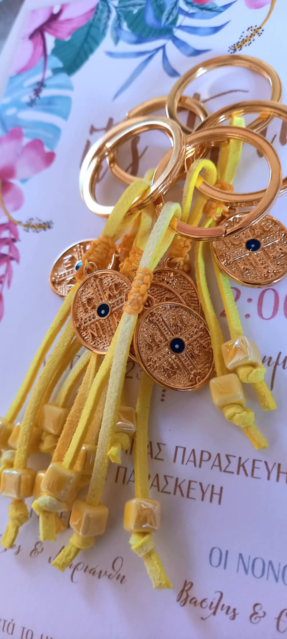Χειροποίητο μαρτυρικό βάπτισης μπρελόκ με καστόρι, κωνσταντινάτο με μάτι με σμάλτο και κεραμικές χάντρες.