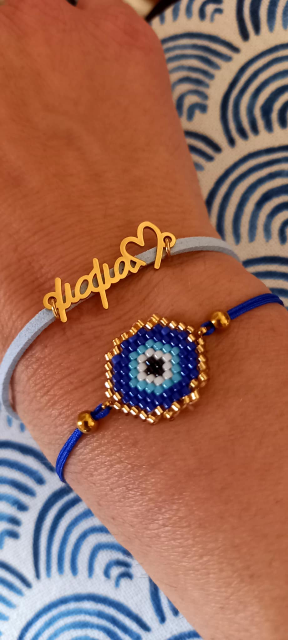 Μαρτυρικό βραχιόλι βάπτισης για τη μαμά με καστόρι σε γαλάζιο χρώμα και ατσάλινο στοιχείο "μαμά".