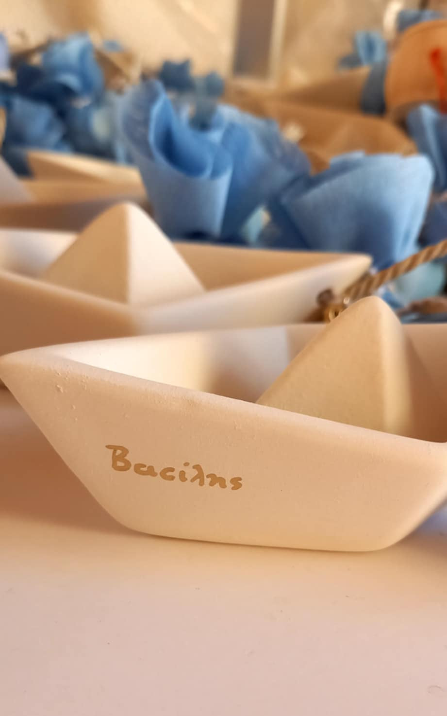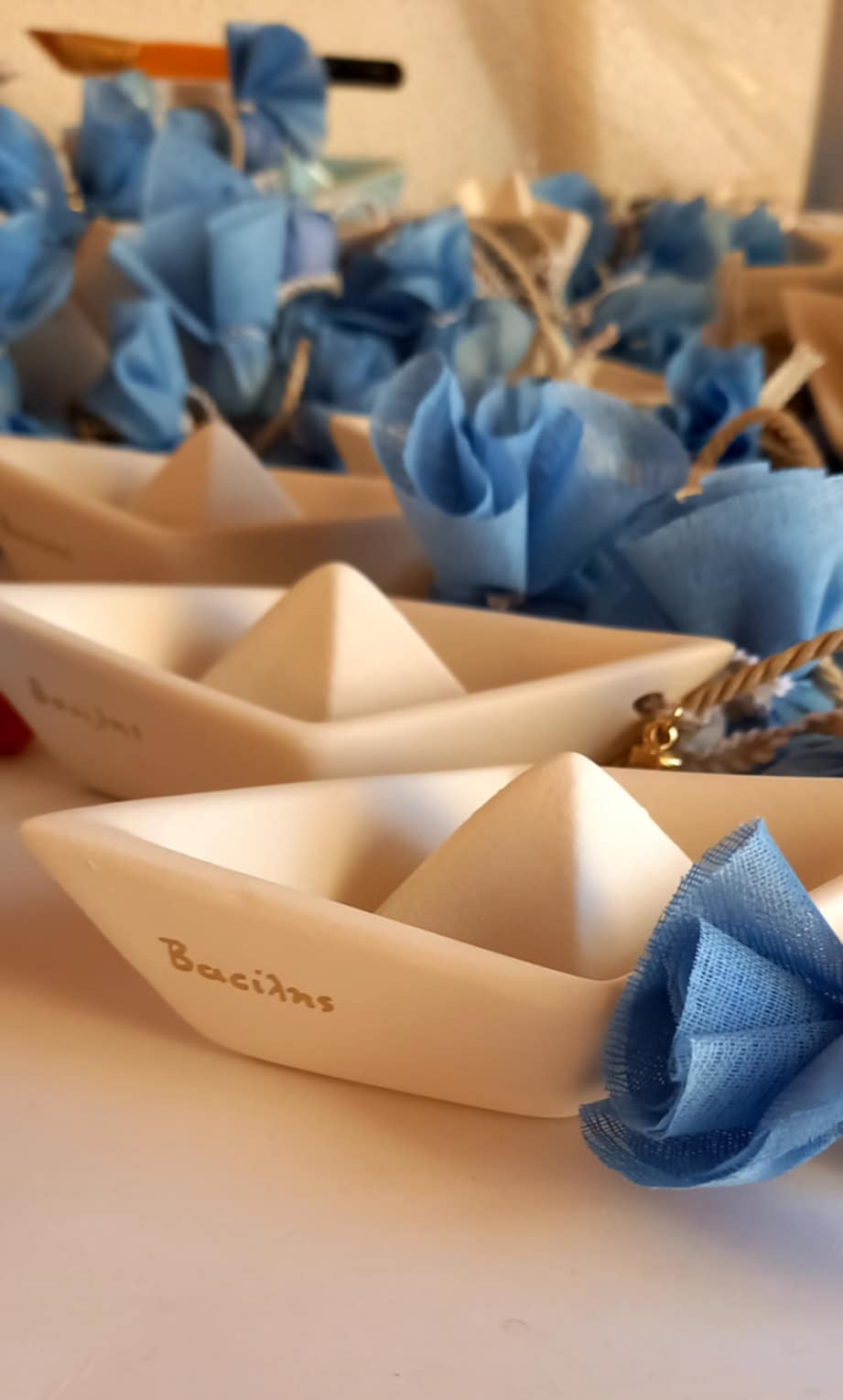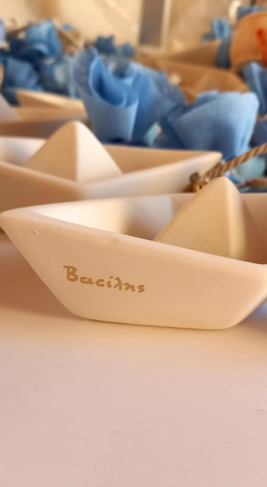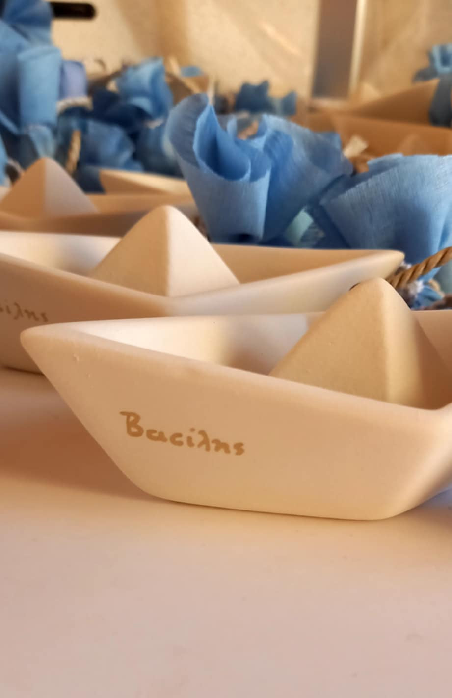 Μπομπονιέρα βάπτισης καραβάκι με άγκυρα και όνομα