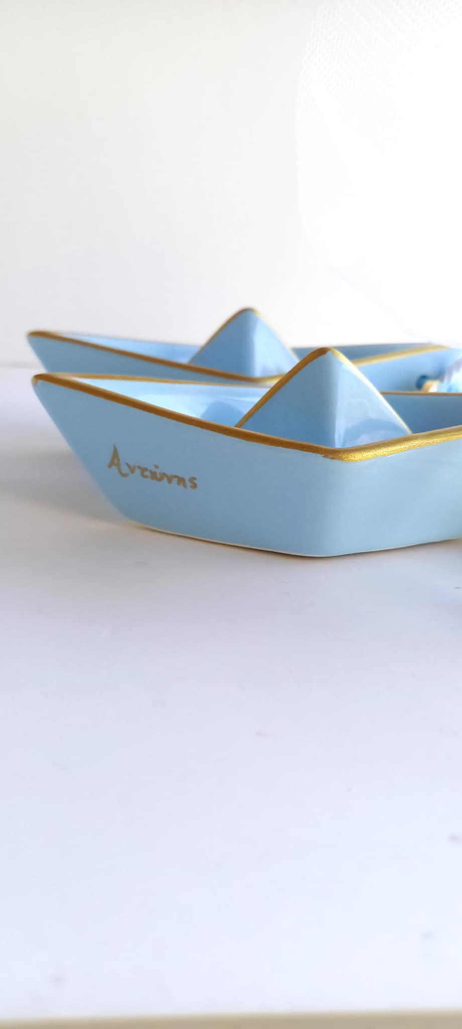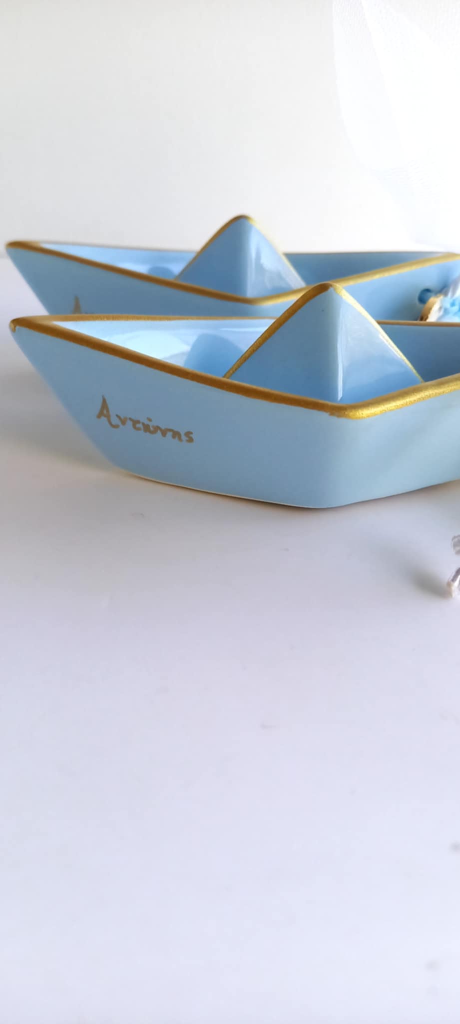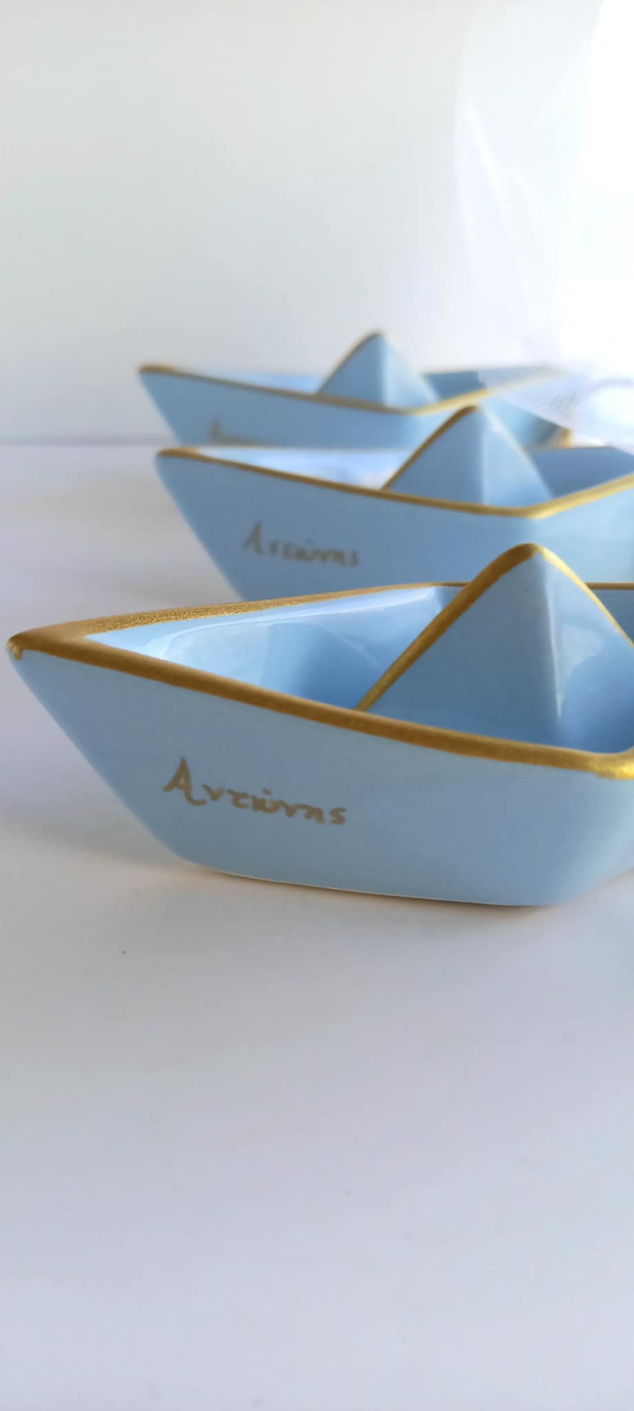 Μπομπονιέρα βάπτισης κεραμικό καράβι με κωνσταντινάτο και όνομα