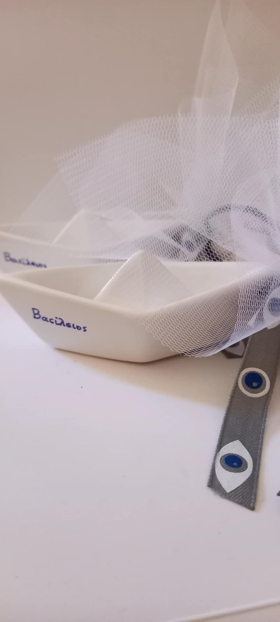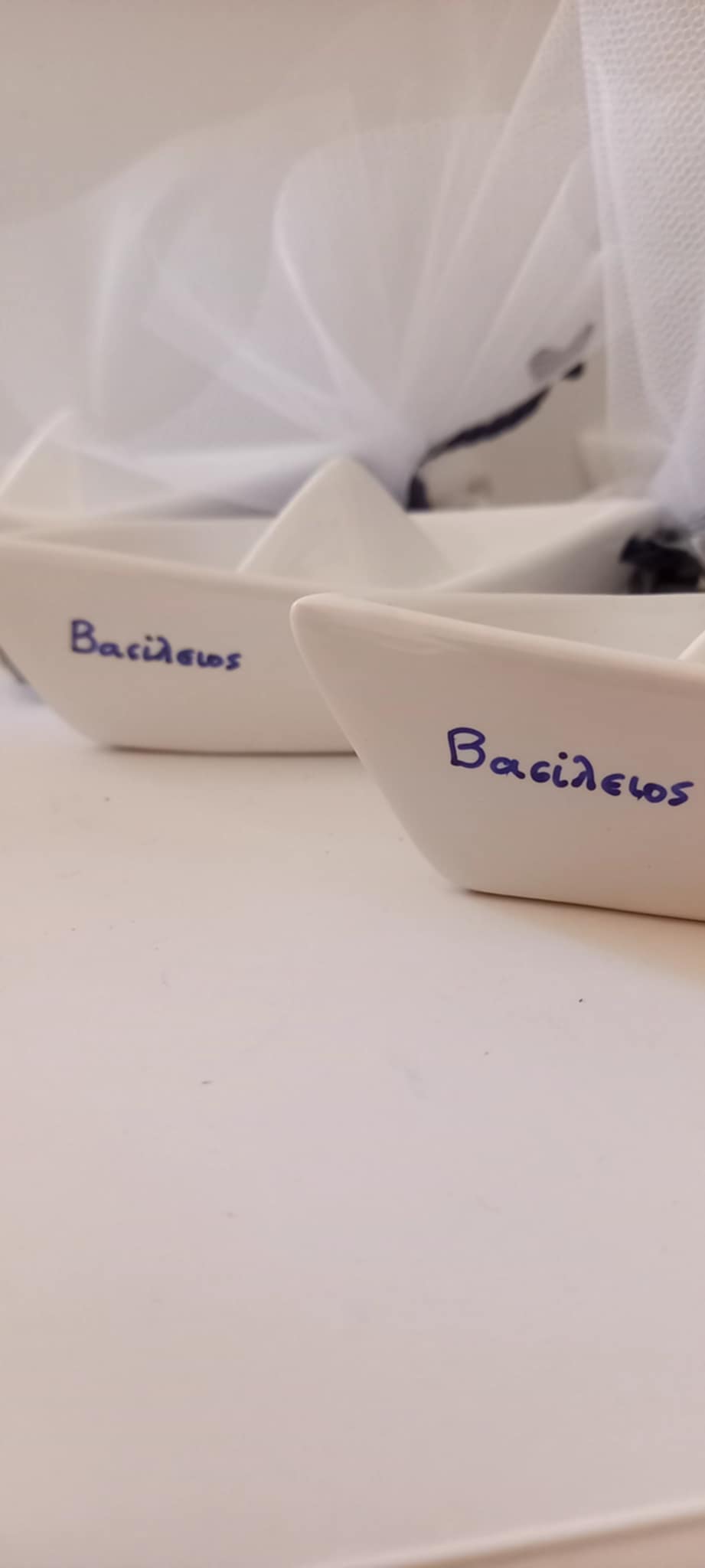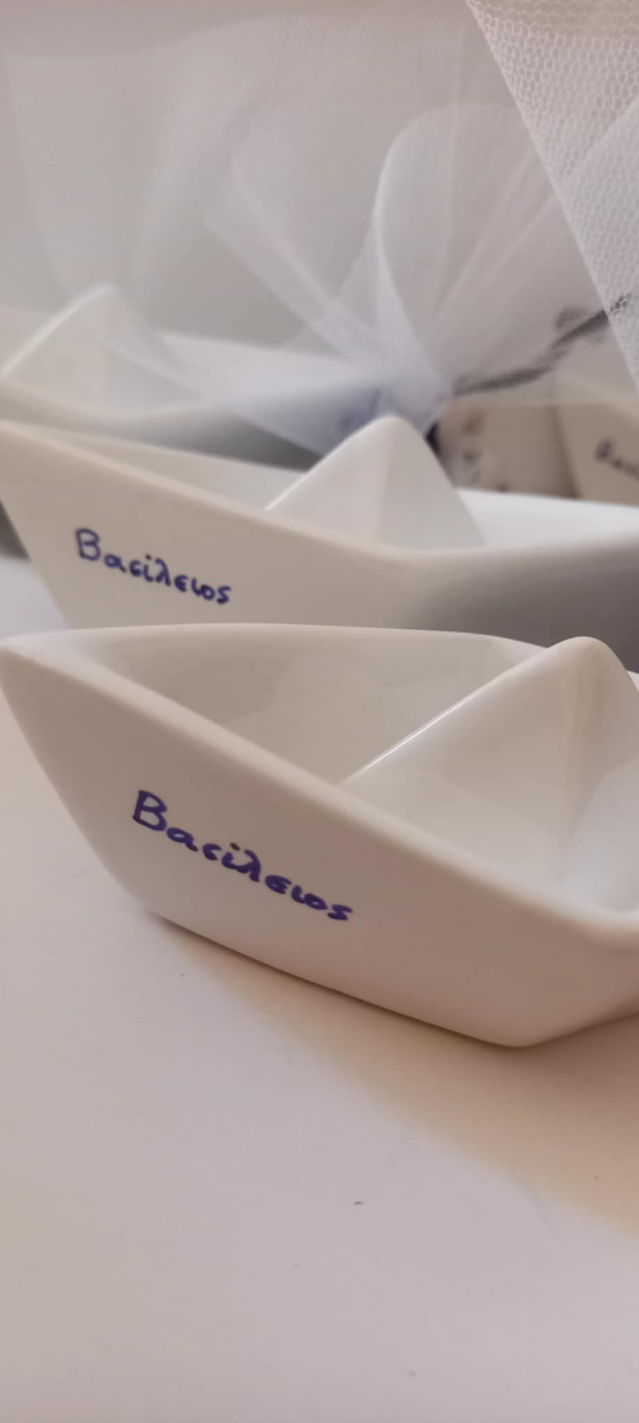 Μπομπονιέρα βάπτισης κεραμικό καραβάκι με όνομα