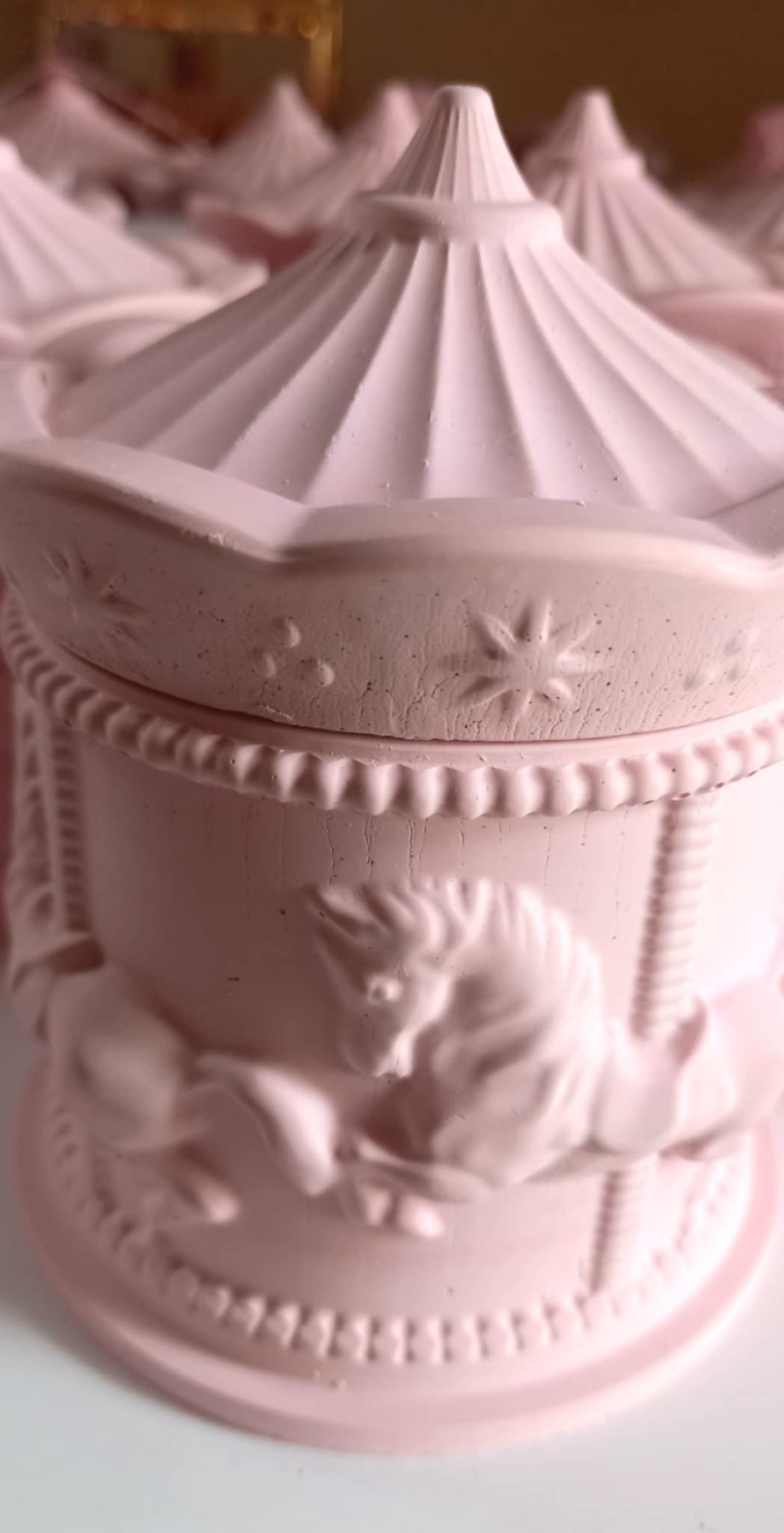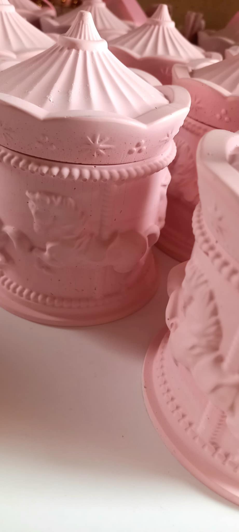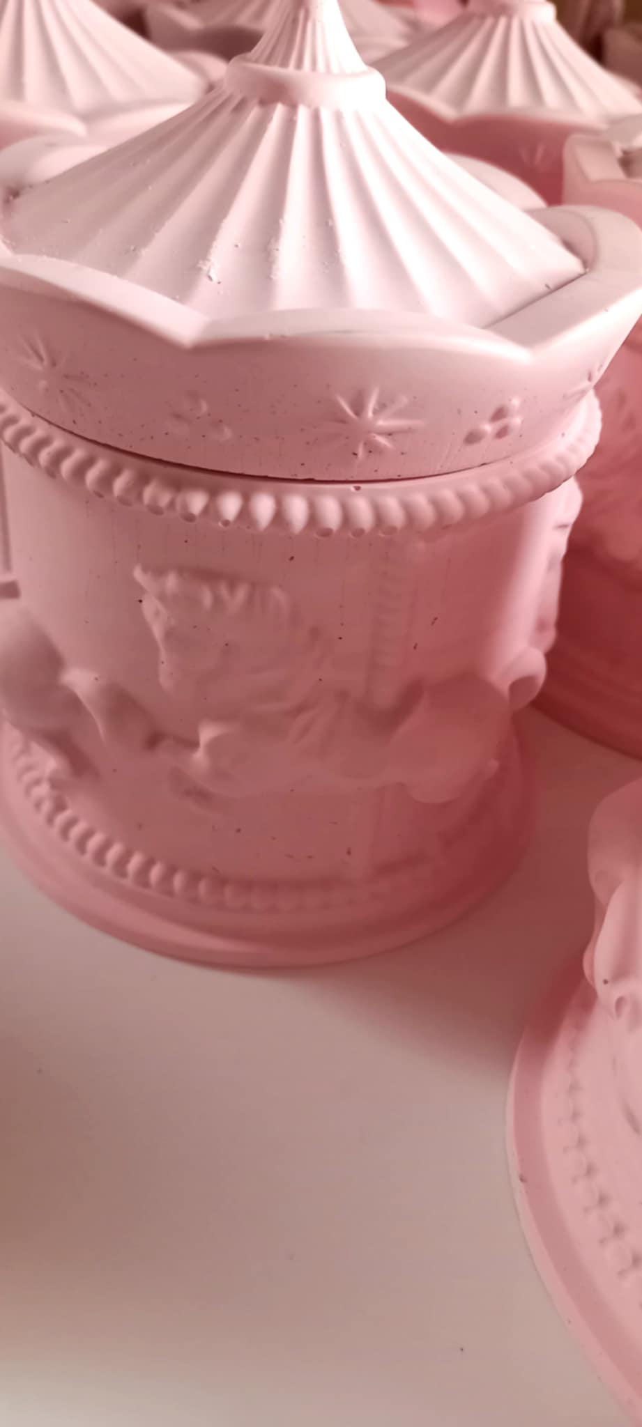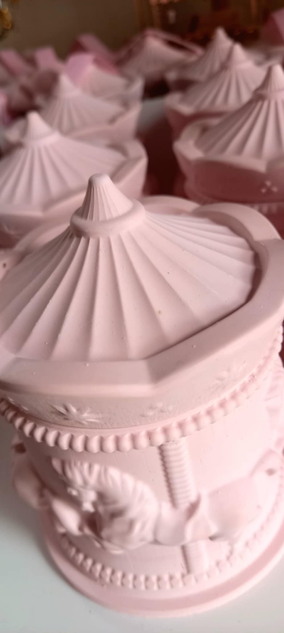 Παραμυθένια μπομπονιέρα βάπτισης κεραμικό καρουσέλ σε απόχρωση baby pink.