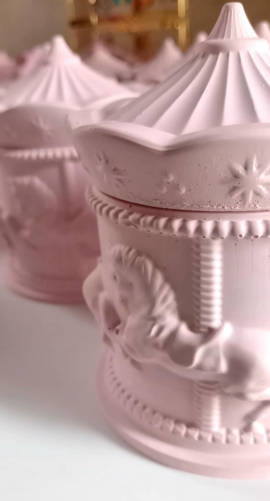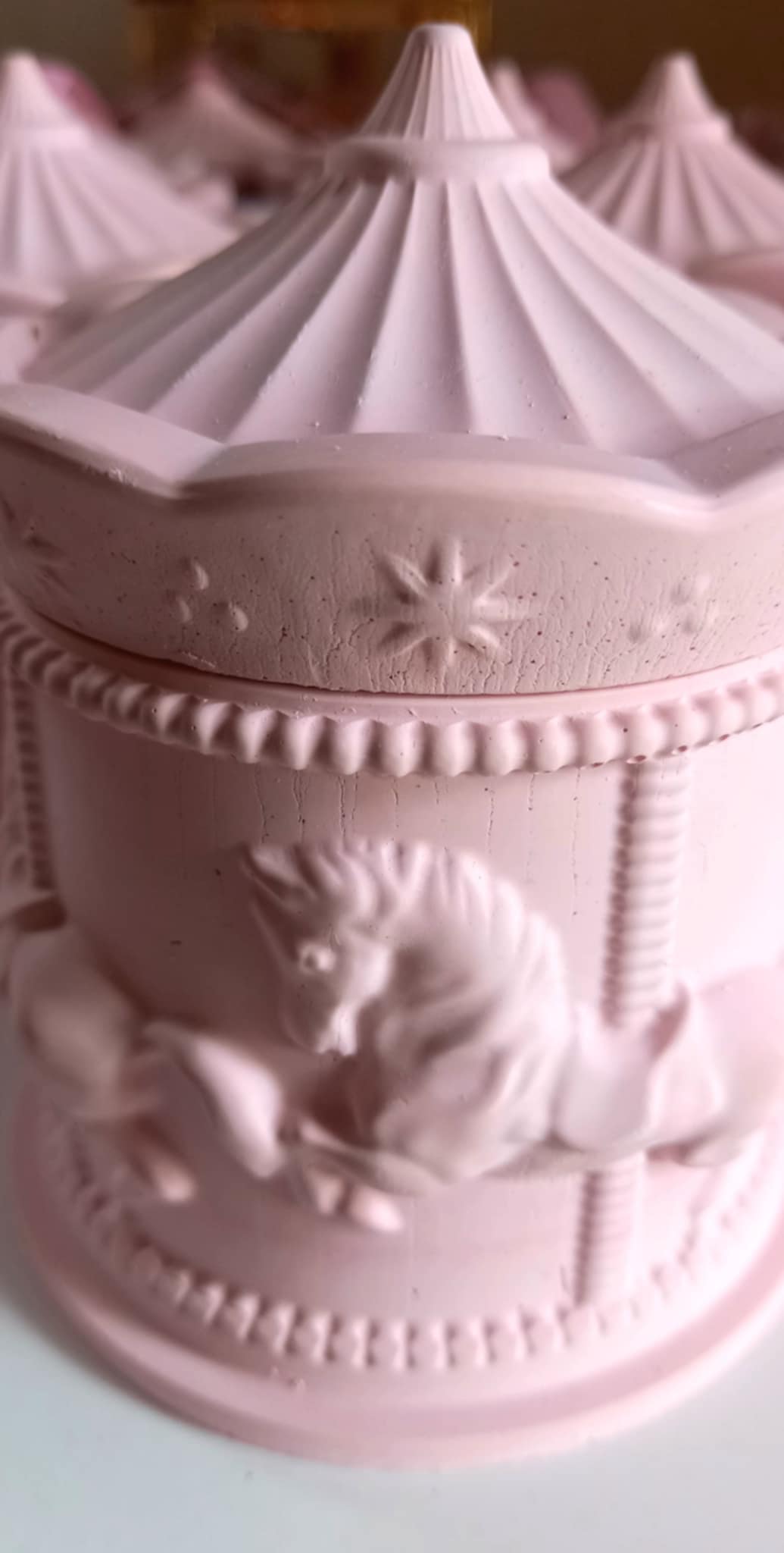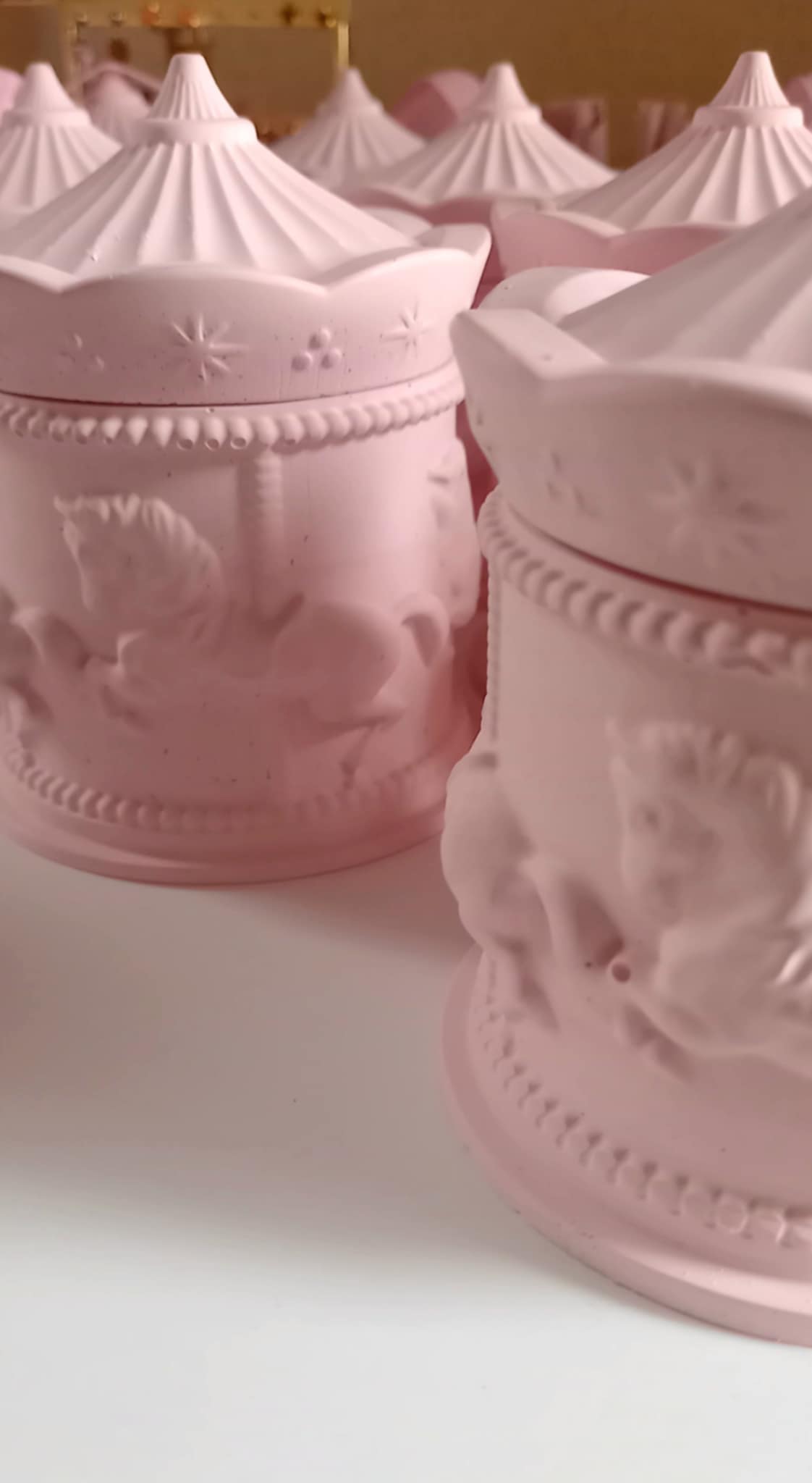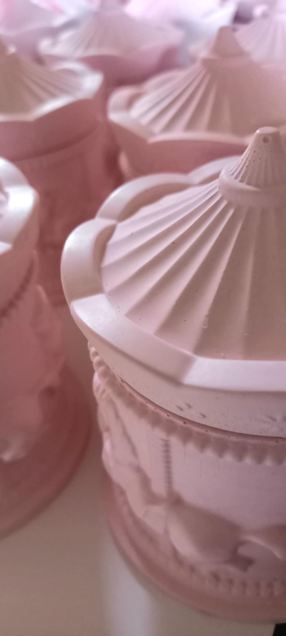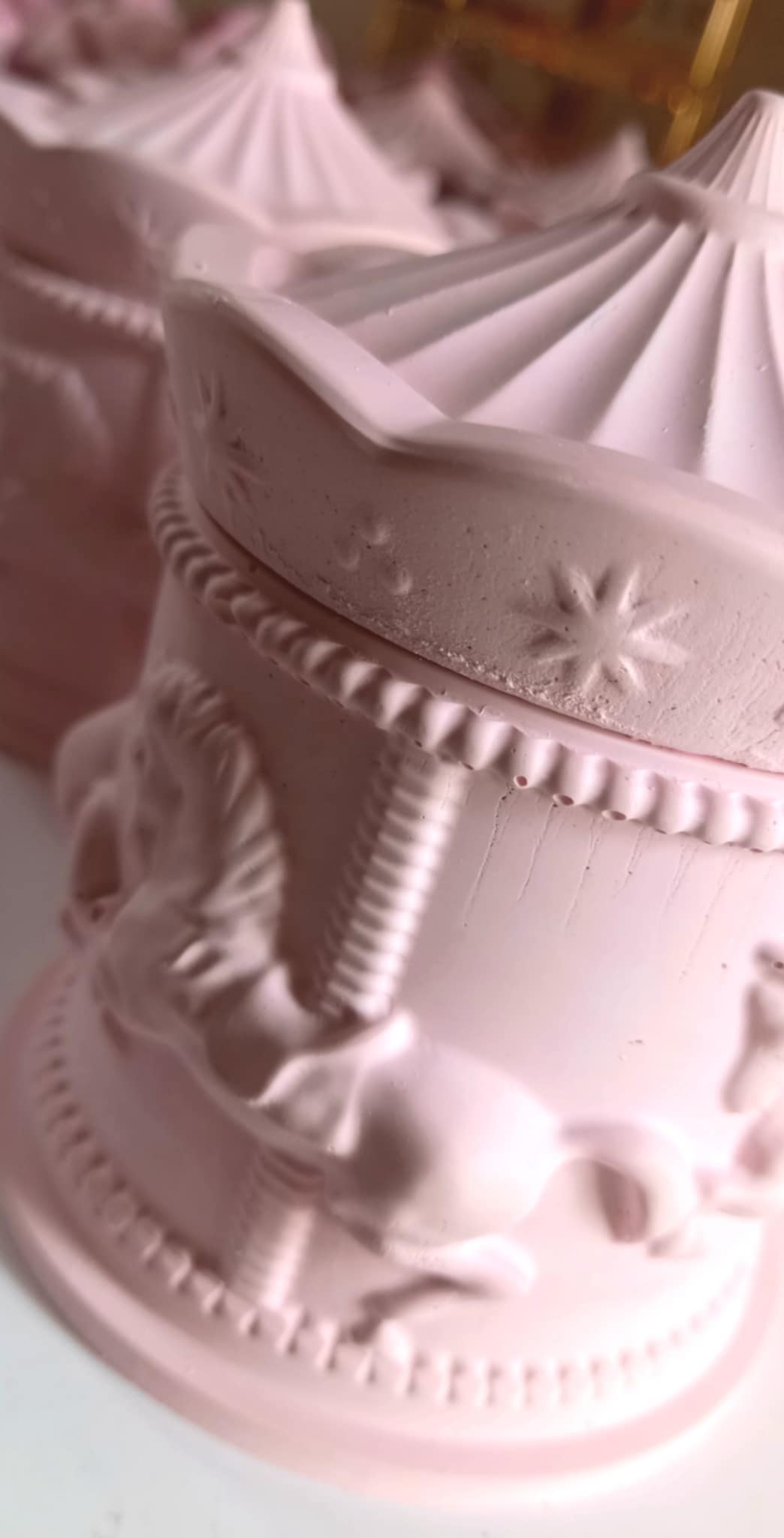 Παραμυθένια μπομπονιέρα βάπτισης κεραμικό καρουσέλ σε απόχρωση baby pink.