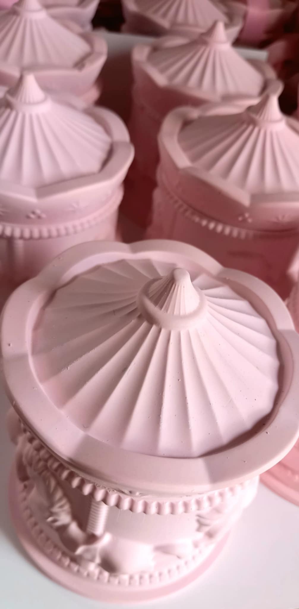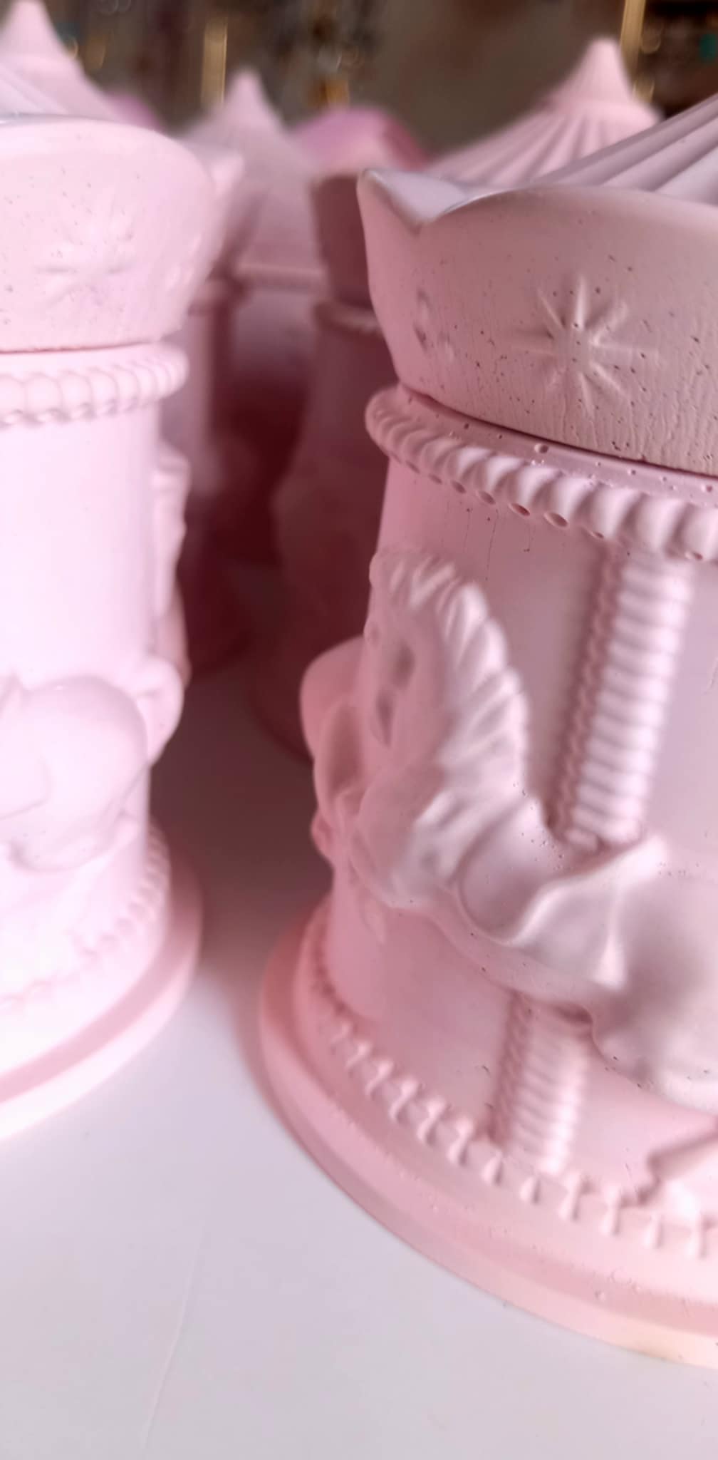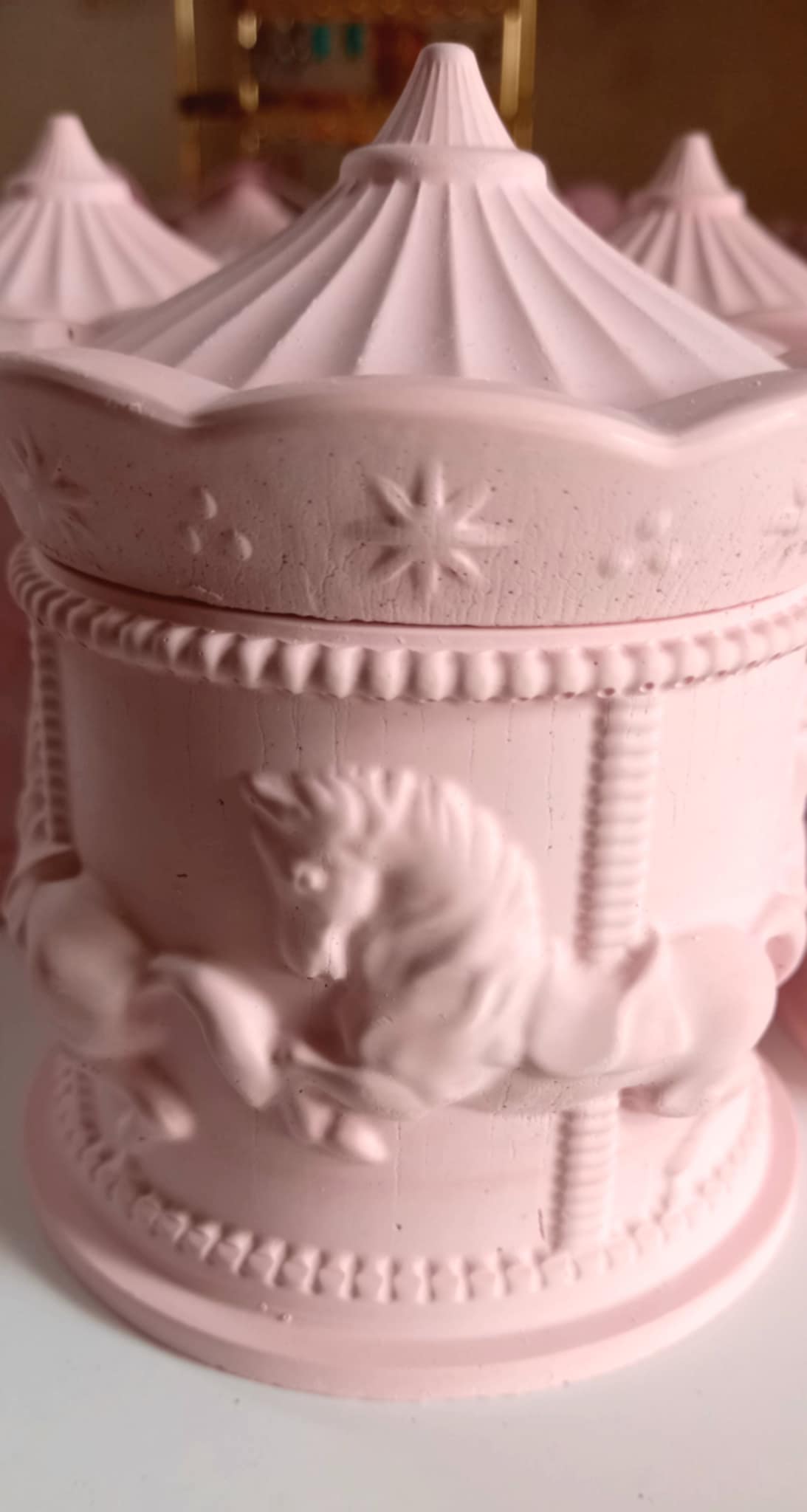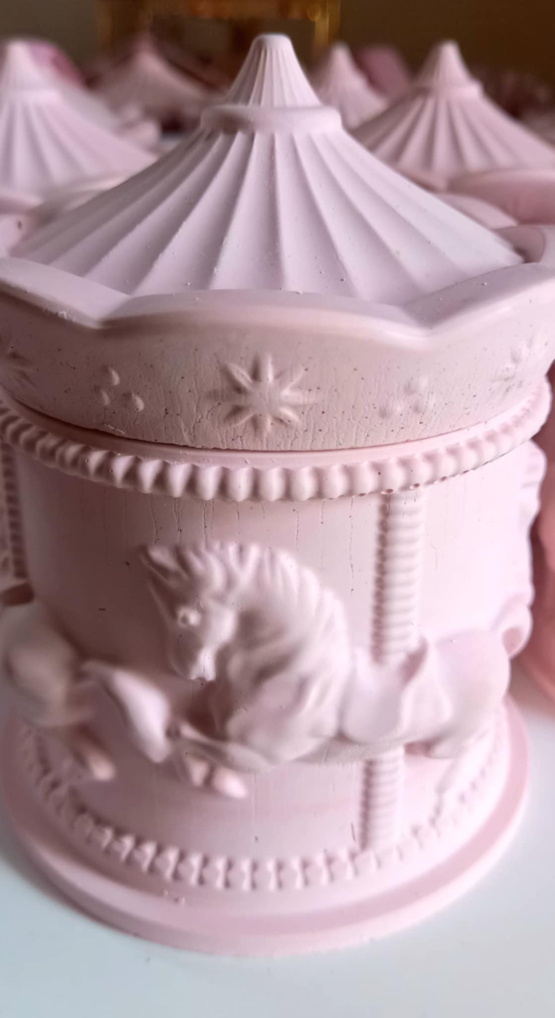 Παραμυθένια μπομπονιέρα βάπτισης κεραμικό καρουσέλ σε απόχρωση baby pink.