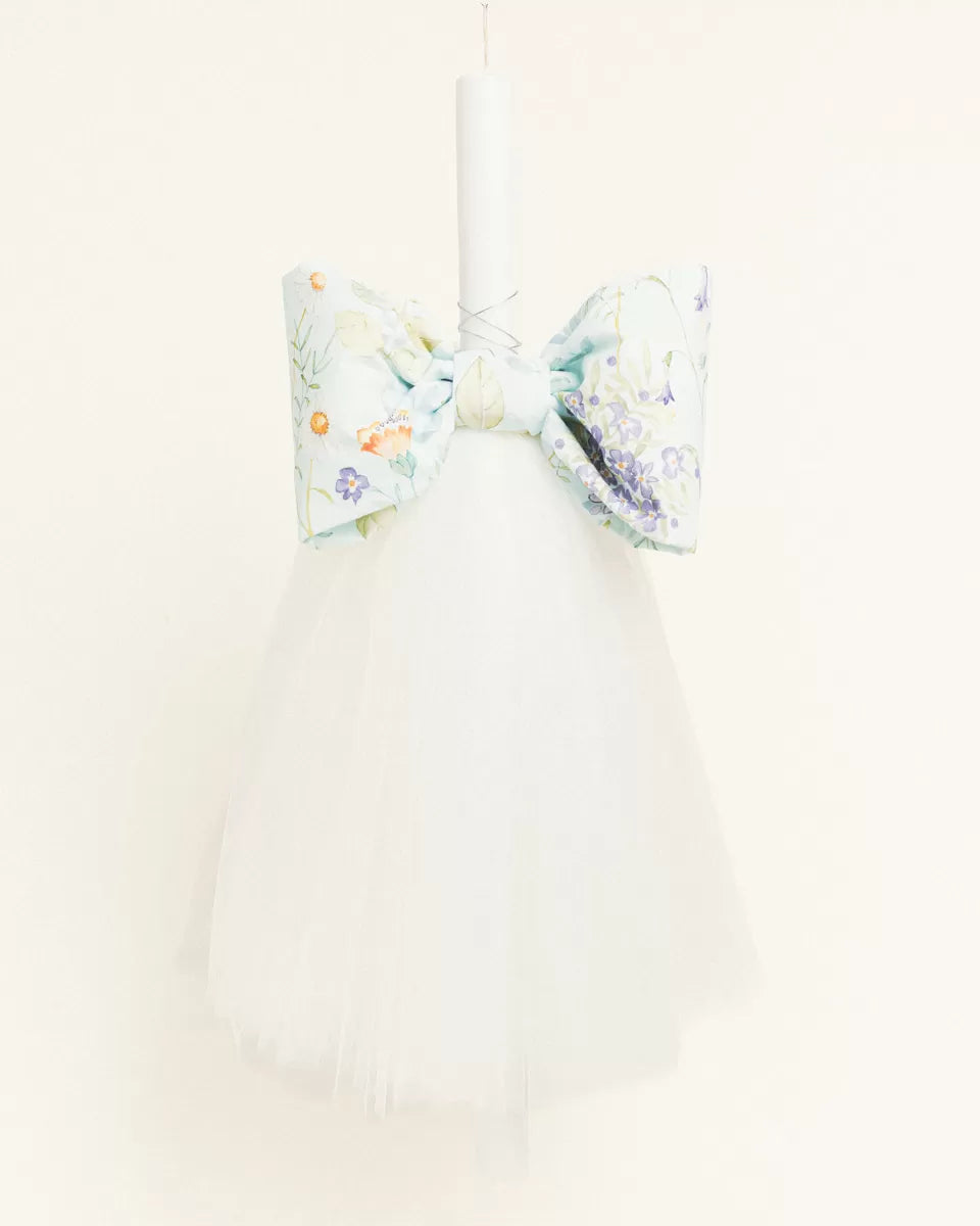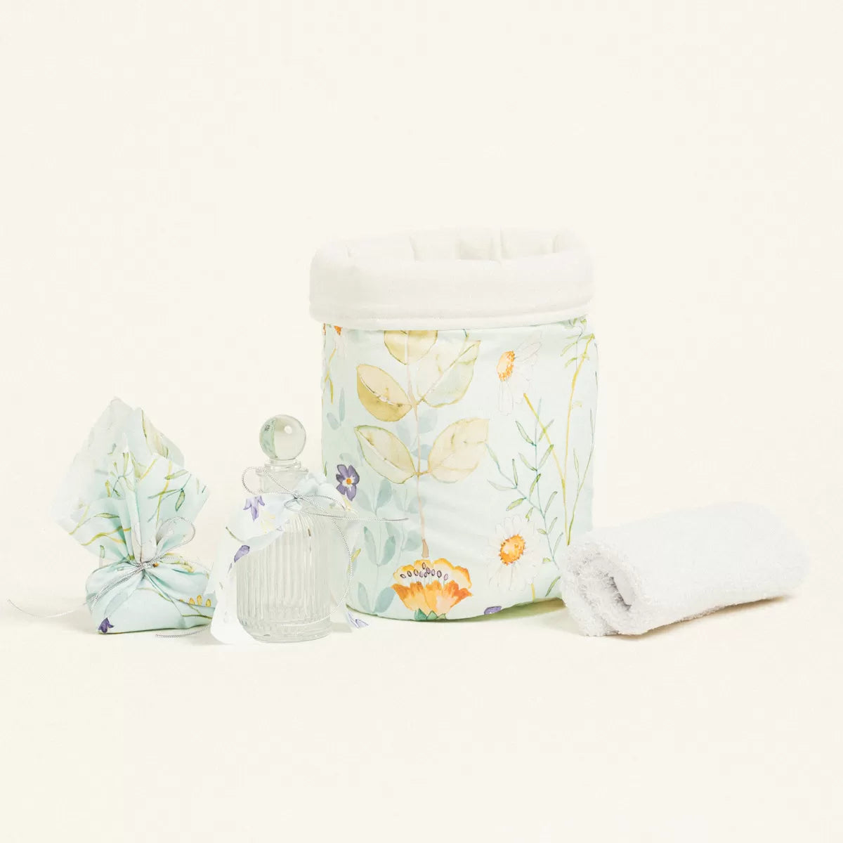 Σετ βάπτισης με λουλούδια σε βεραμάν φόντο