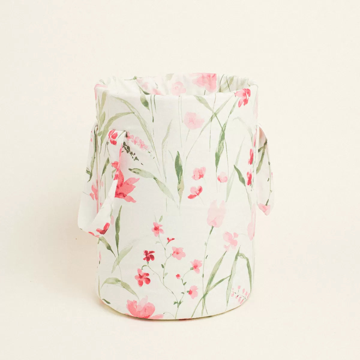 Παραμυθένιο σετ βάπτισης με φούξια λουλούδια σε λευκό φόντο.