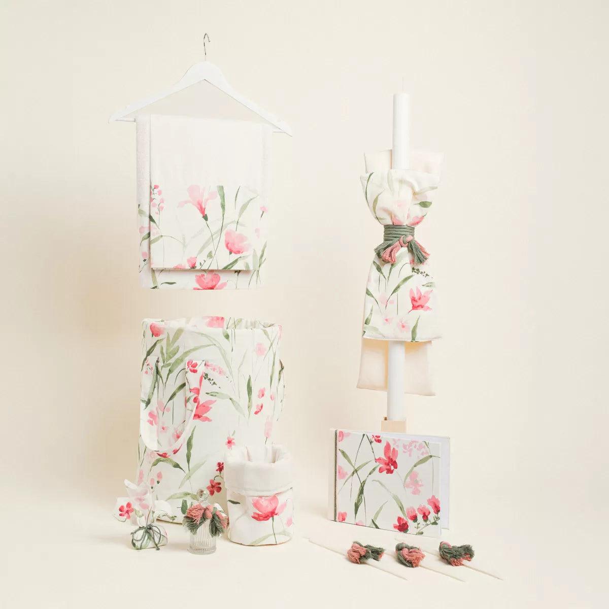 Σετ βάπτισης με λουλούδια σε λευκό και φούξια