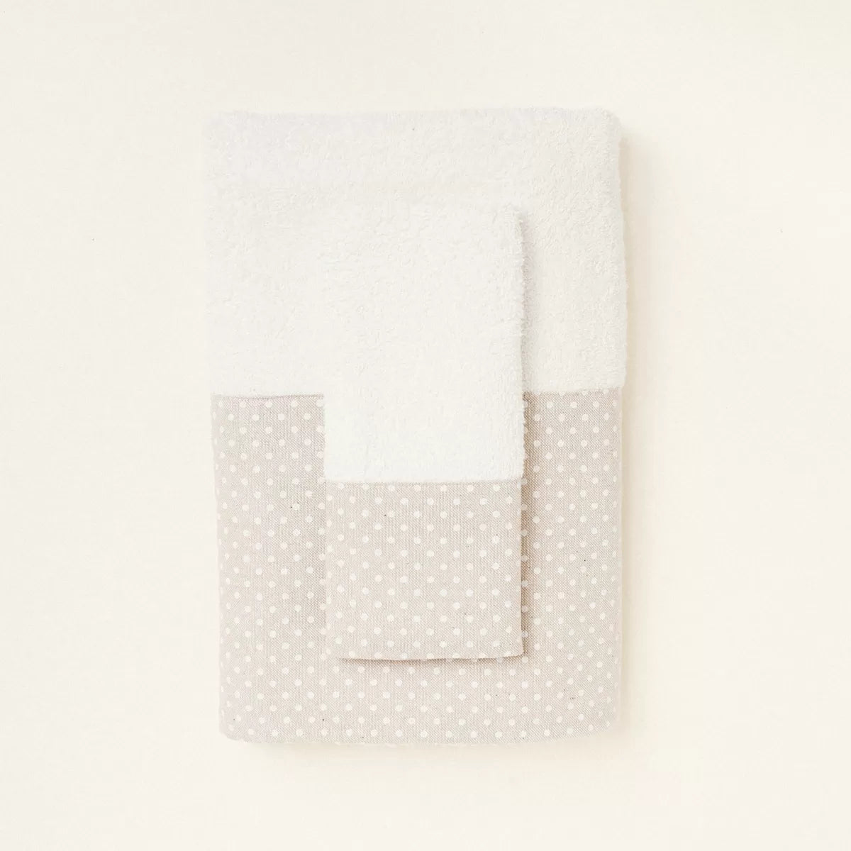 Ουδέτερο κομψό σετ βάπτισης με μπεζ πουά.