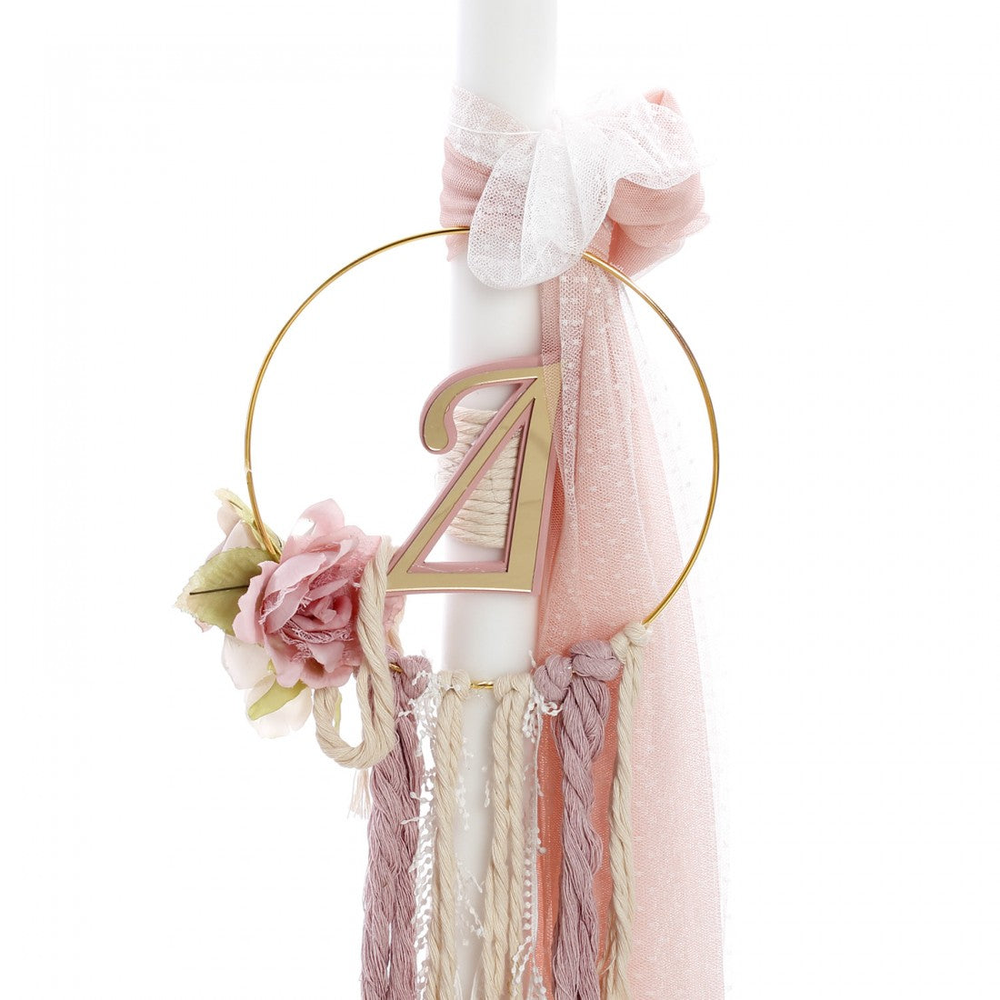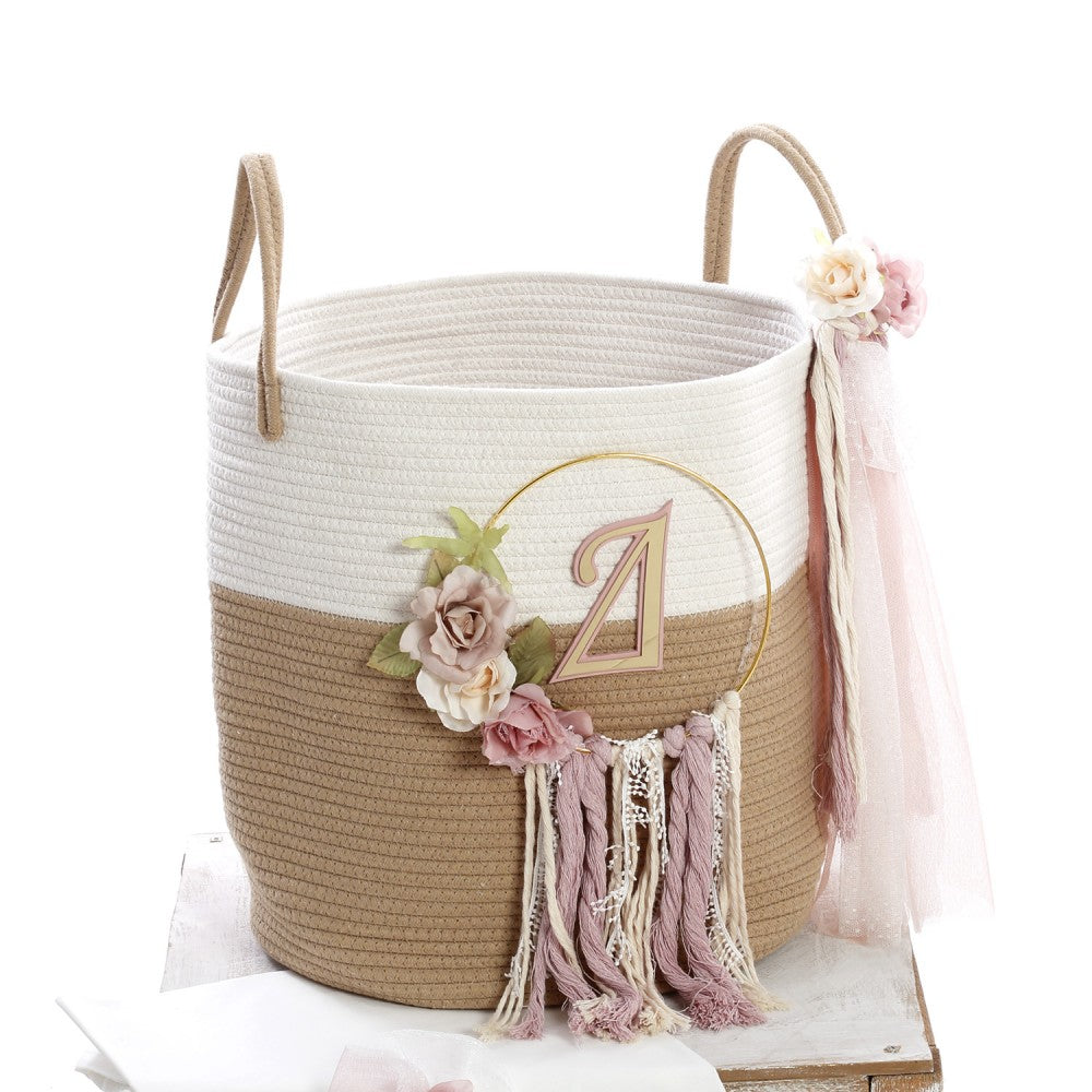 Παραμυθένιο σετ βάπτισης με χρυσό στεφάνι και plexi μονόγραμμα της επιλογής σας με boho πινελιές! Περιλαμβάνει: 1. Πλεκτό καλάθι με στεφάνι και μονόγραμμα διακοσμημένο με κορδέλες, πον πον και υφασμάτινα λουλούδια, 2. Λαμπάδα με χρυσό στεφάνι, μονόγραμμα, υφασμάτινα λουλούδια, κορδέλες και πον πον, 3. Σετ λαδιού (καλαθάκι, κεράκια, μπουκαλάκι λαδιού, σαπουνάκι) και 4. Λαδόπανο.