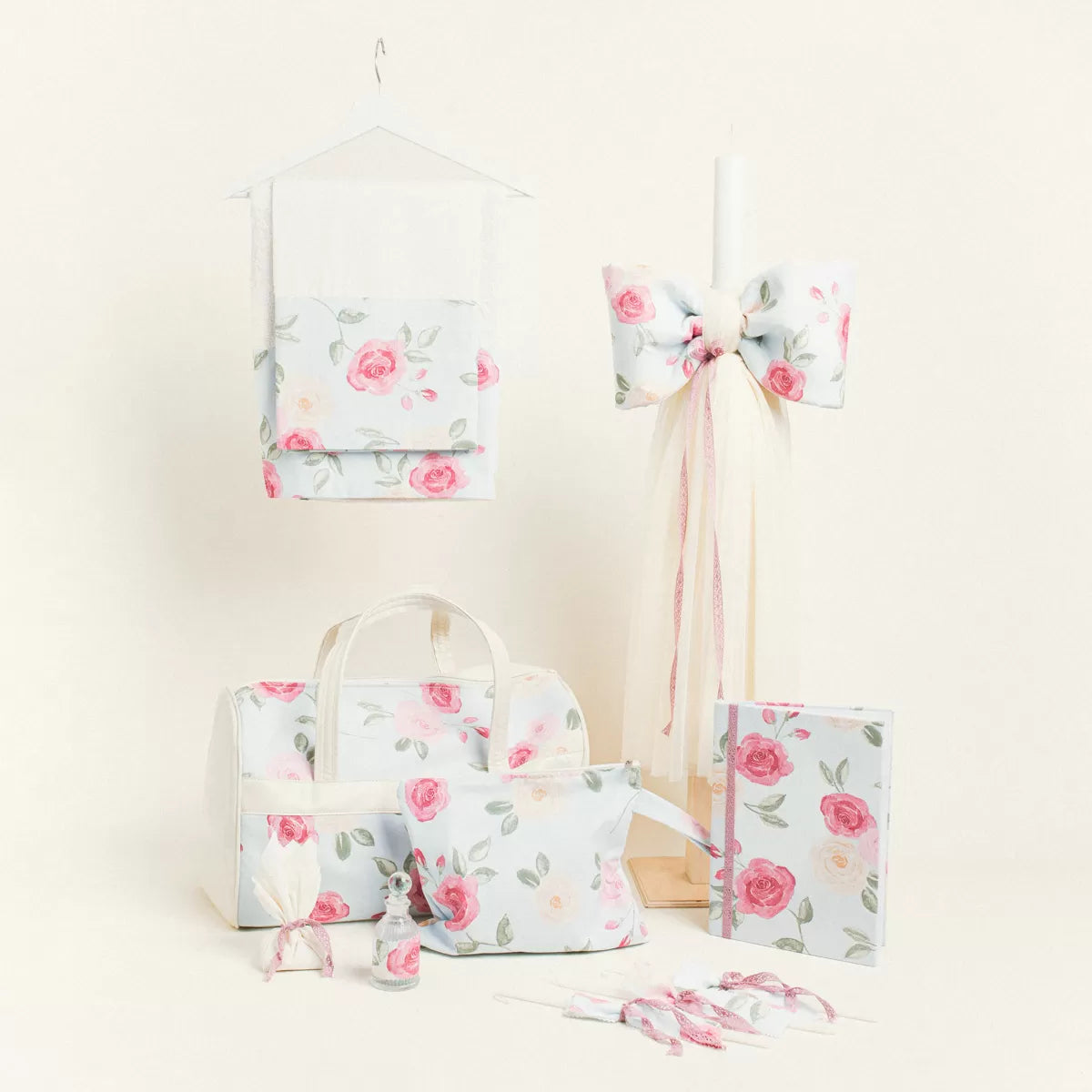 Ρομαντικό σετ βάπτισης με υπέροχα τριαντάφυλλα.
