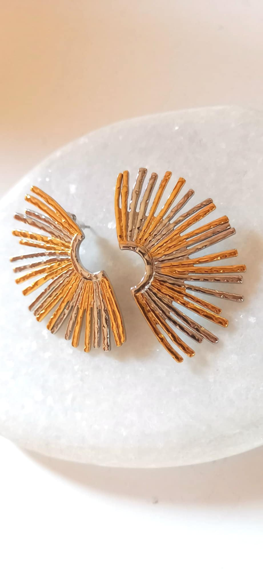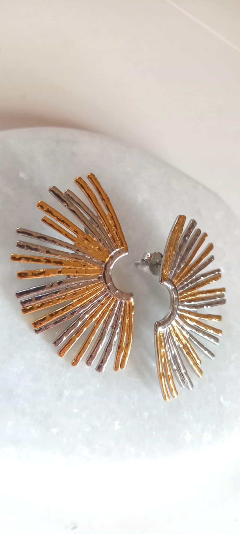 Εντυπωσιακά σκουλαρίκια από ατσάλι με ακτίνες σε συνδυασμό ασημί-χρυσού.