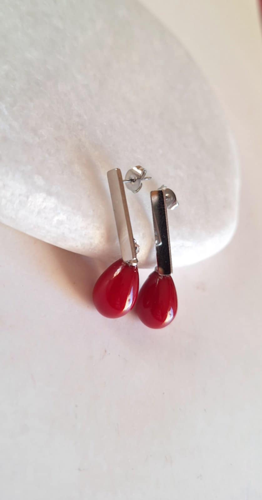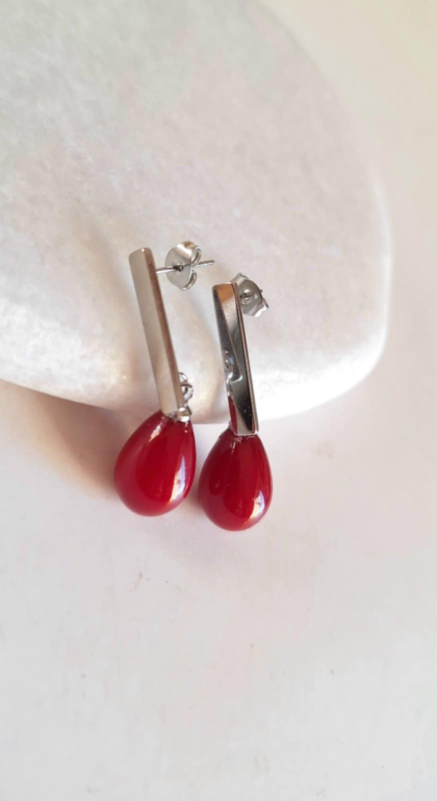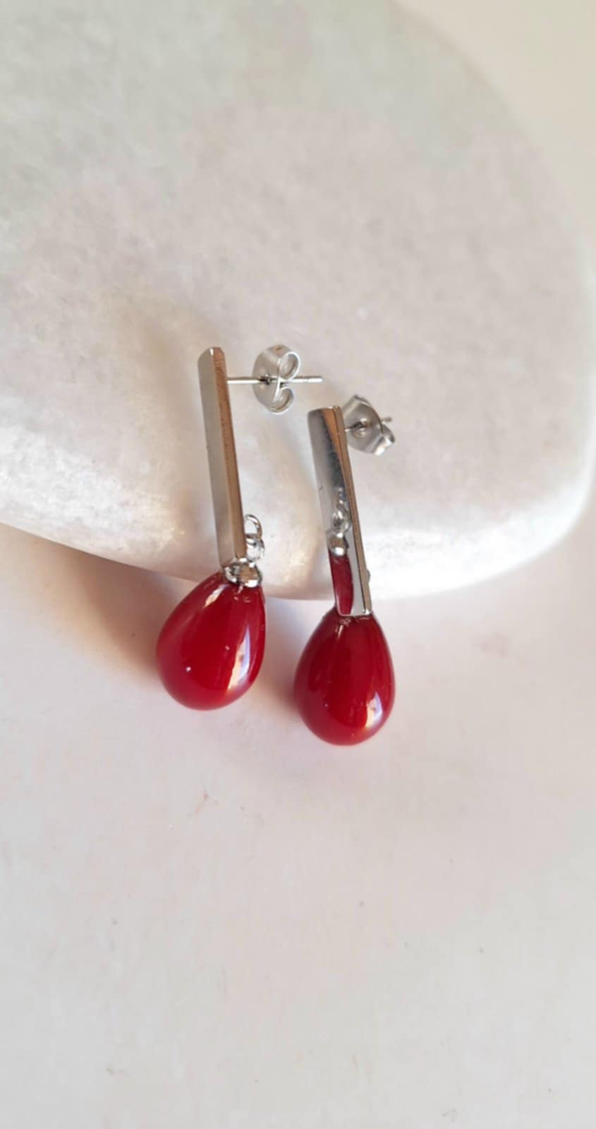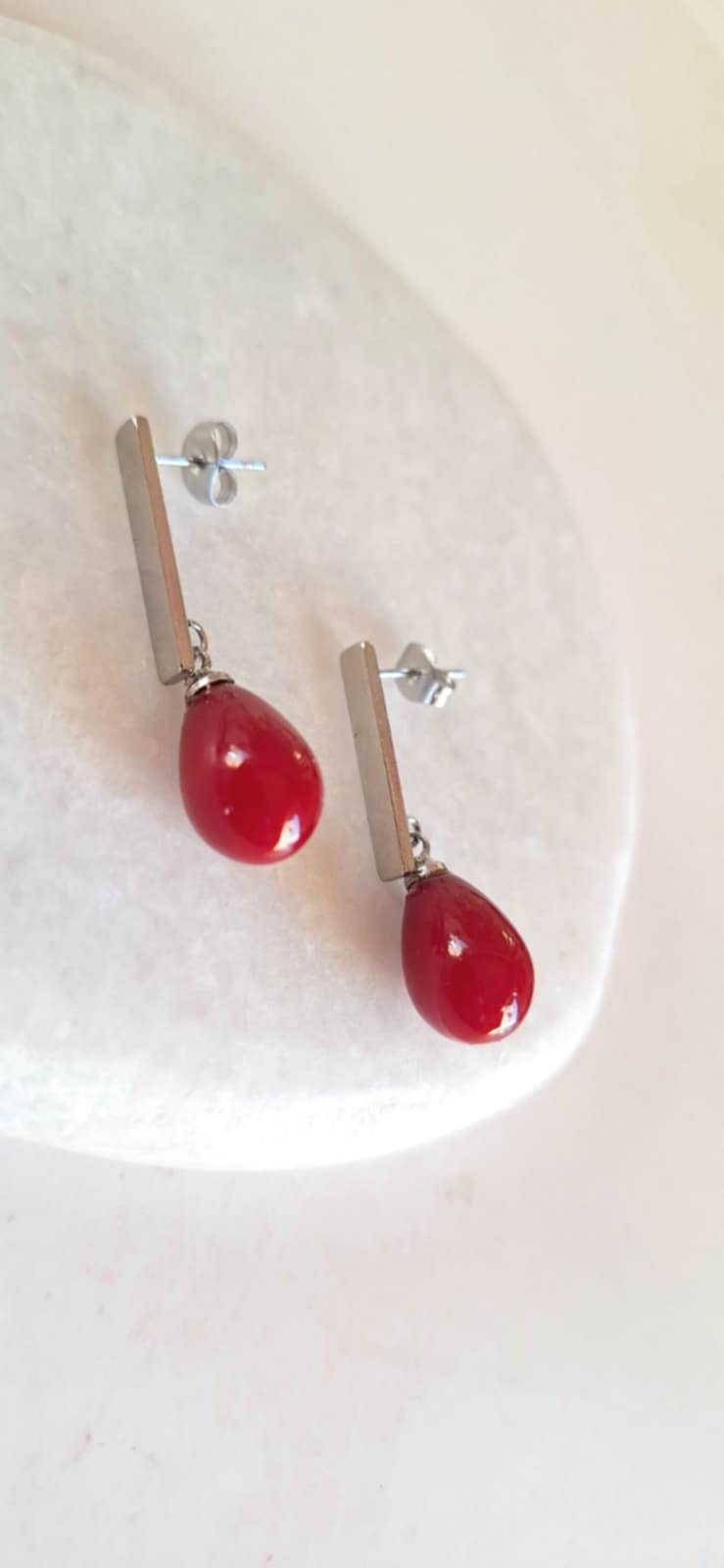 Σκουλαρίκια από ατσάλι με μορίφ πέρλα σε μπορντώ-κόκκινο χρώμα.