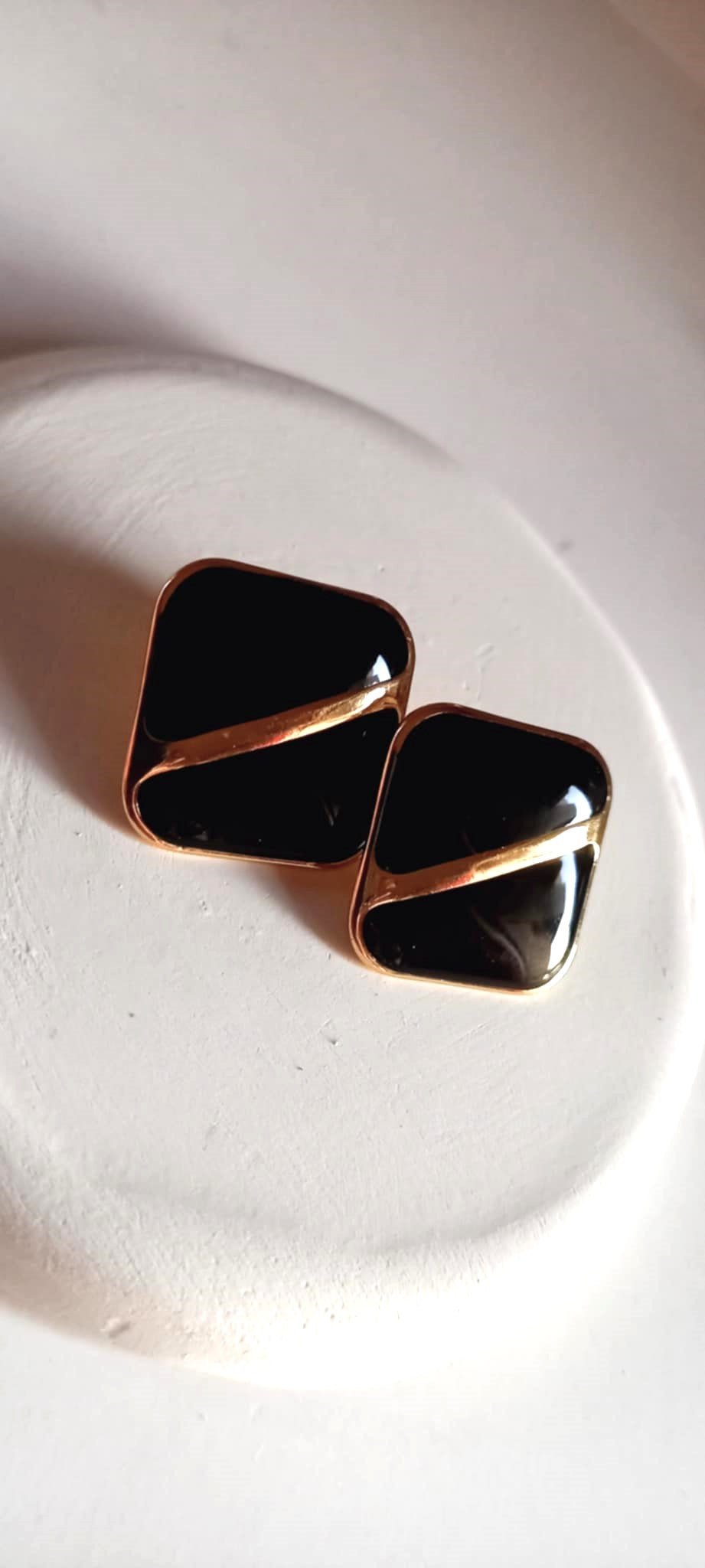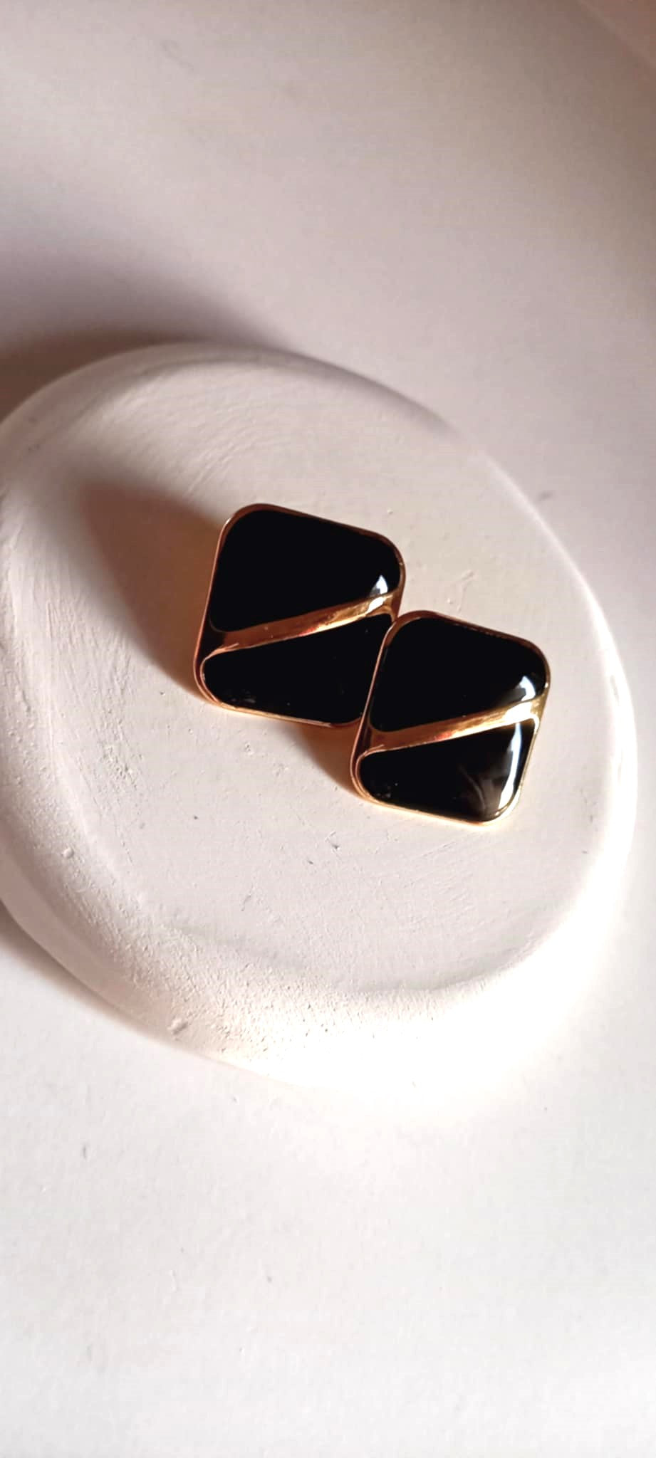 Σκουλαρίκια από ατσάλι με σμάλτο σε μαύρο χρώμα.