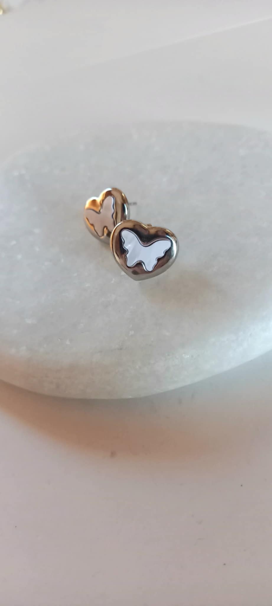 Σκουλαρίκια από ατσάλι με φίλντισι και σχέδιο πεταλούδα.