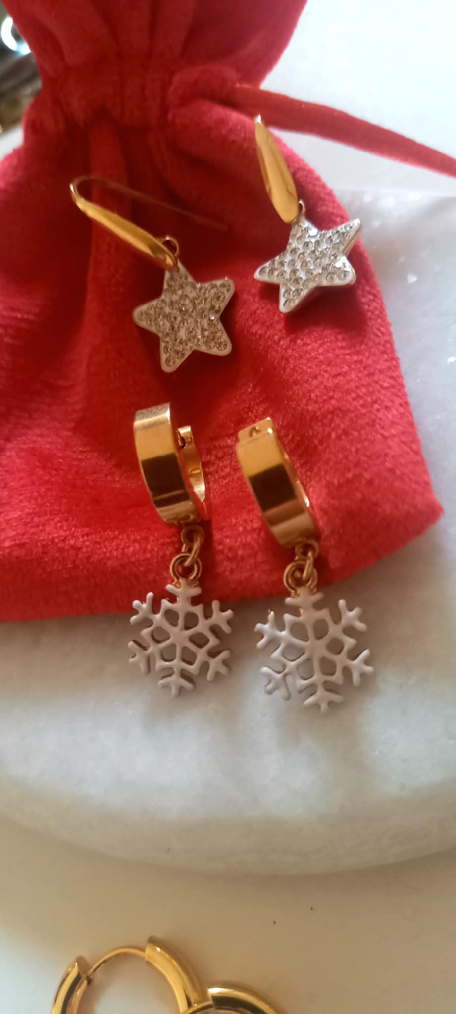 Σκουλαρίκια με μοτίφ χιονονιφάδα με σμάλτο