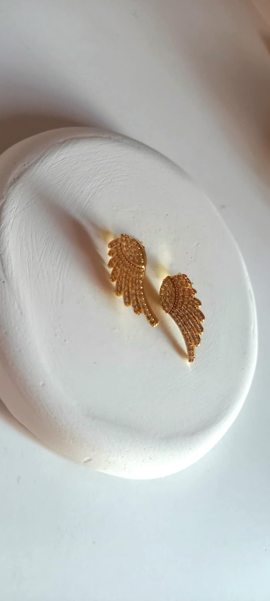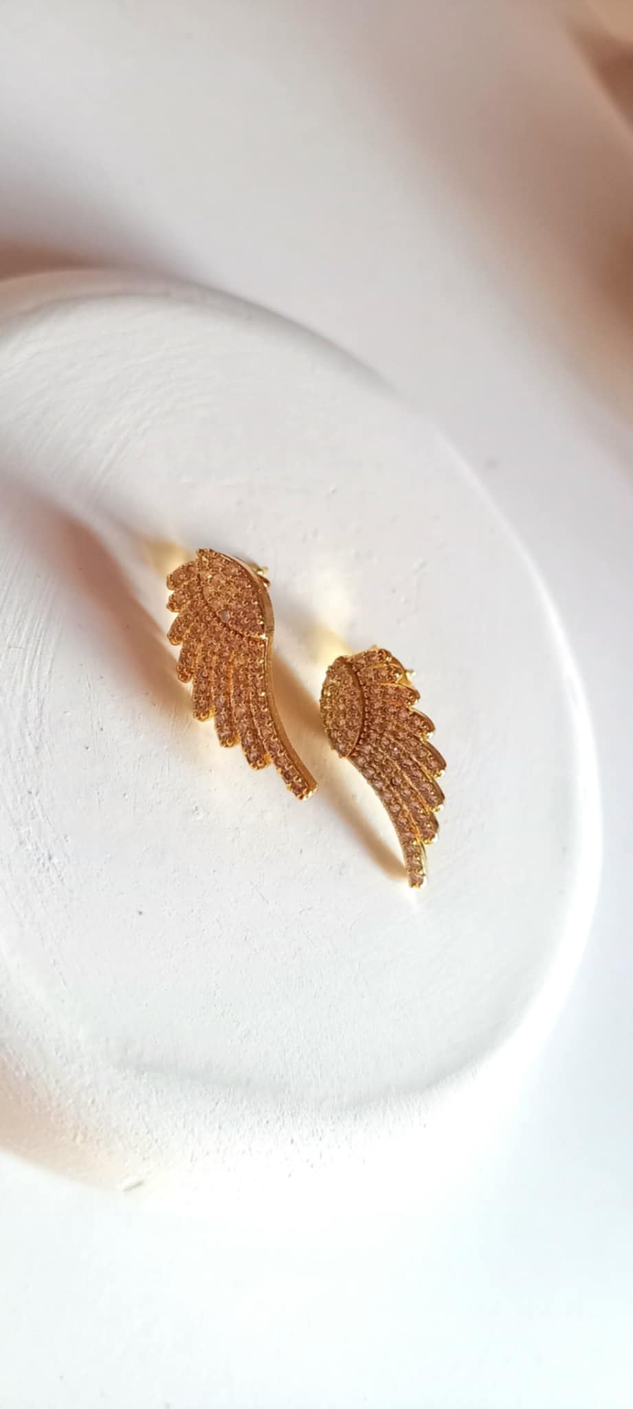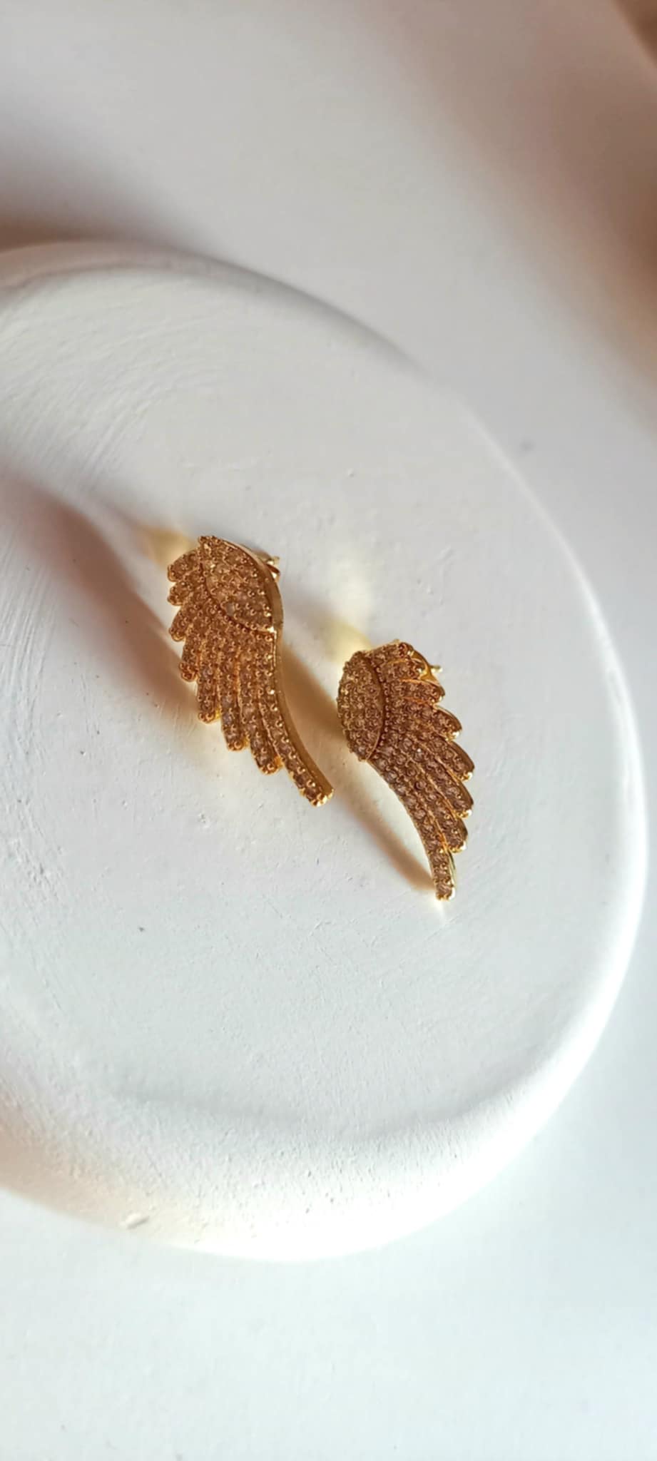 Κομψά σκουλαρίκια φτερό αγγέλου με λευκά ζιργκόν.