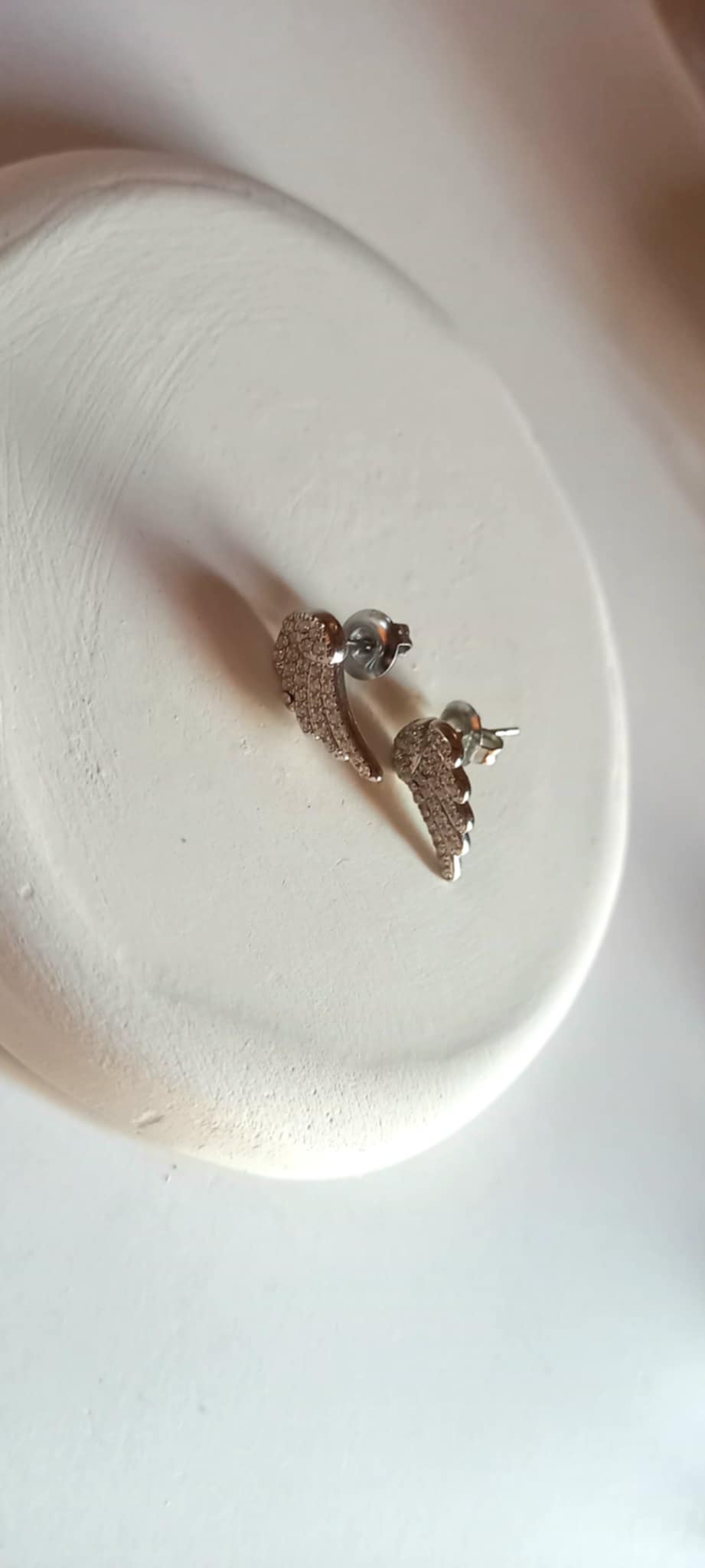 Σκουλαρίκια φτερά αγγέλου από ατσάλι με λευκά ζιργκόν.