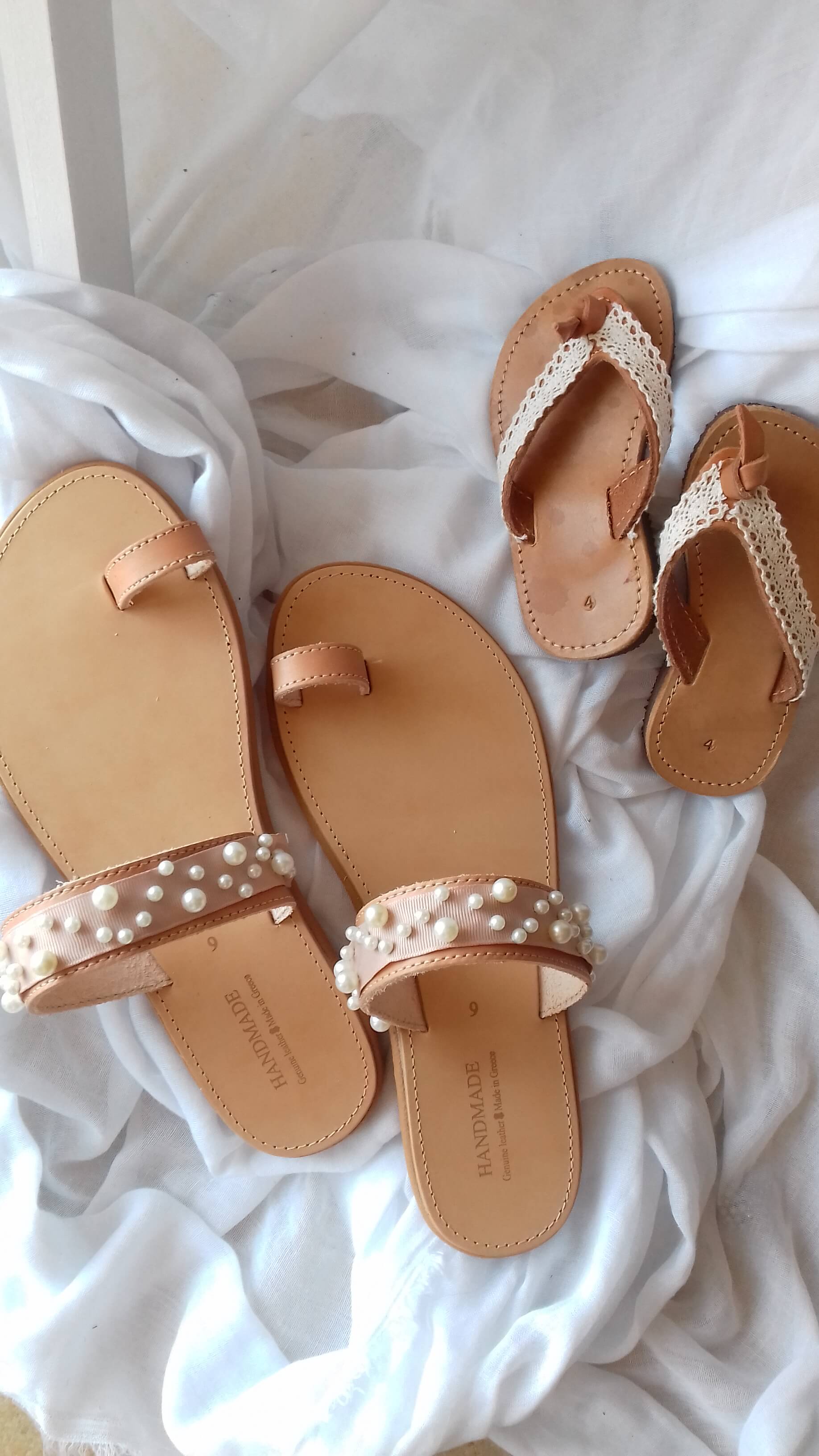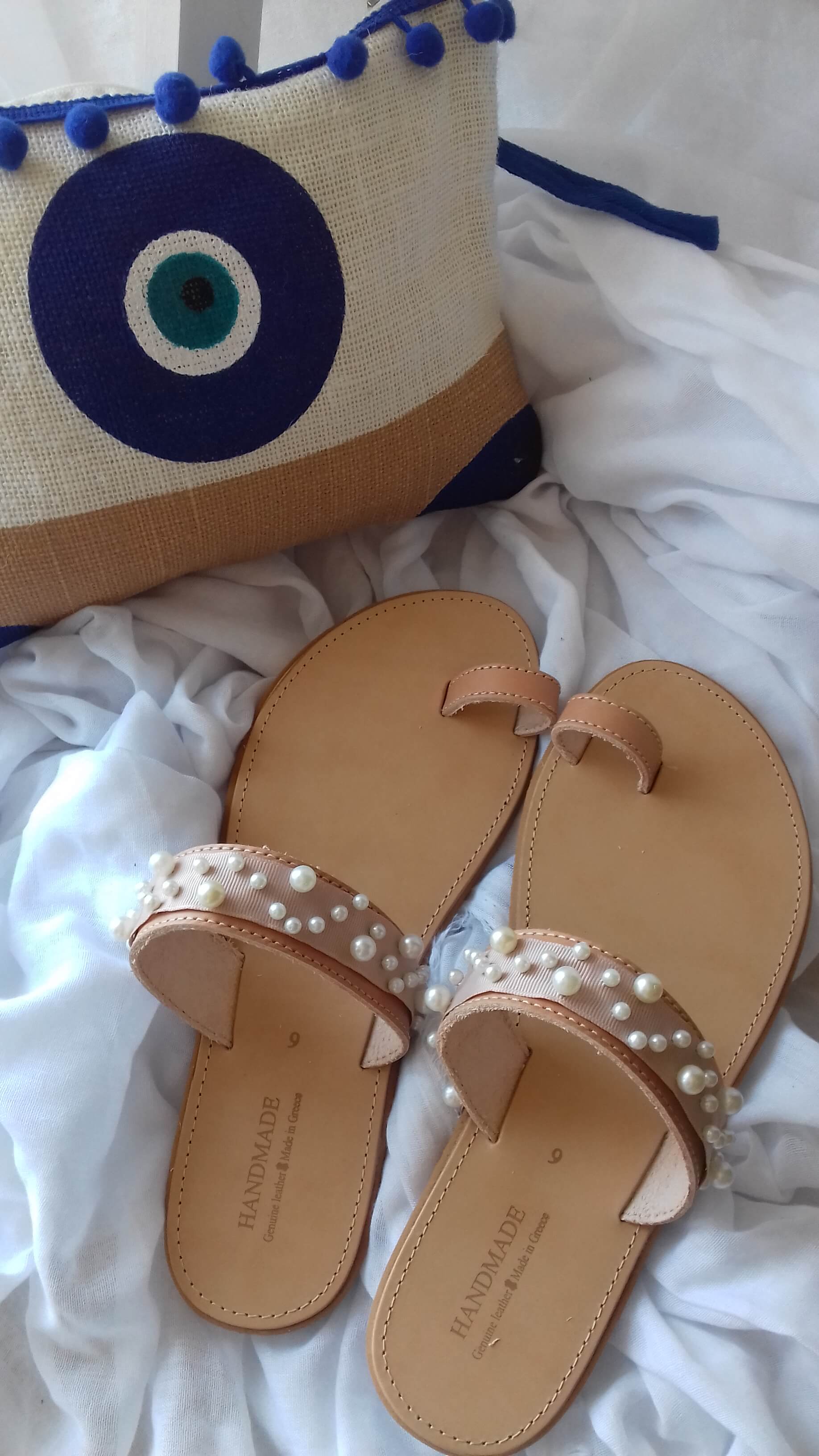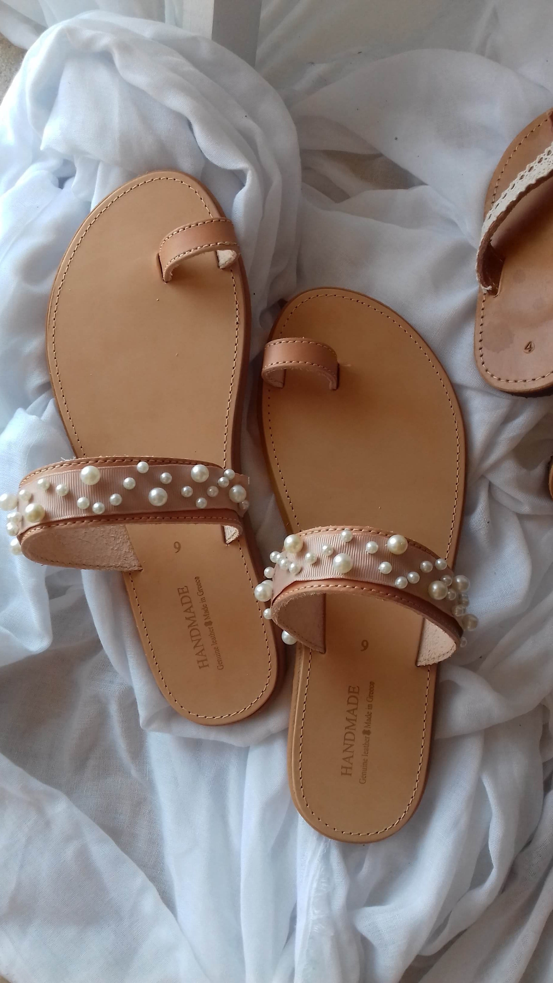 Χειροποίητα δερμάτινα γυναικεία σανδάλια με πέρλες