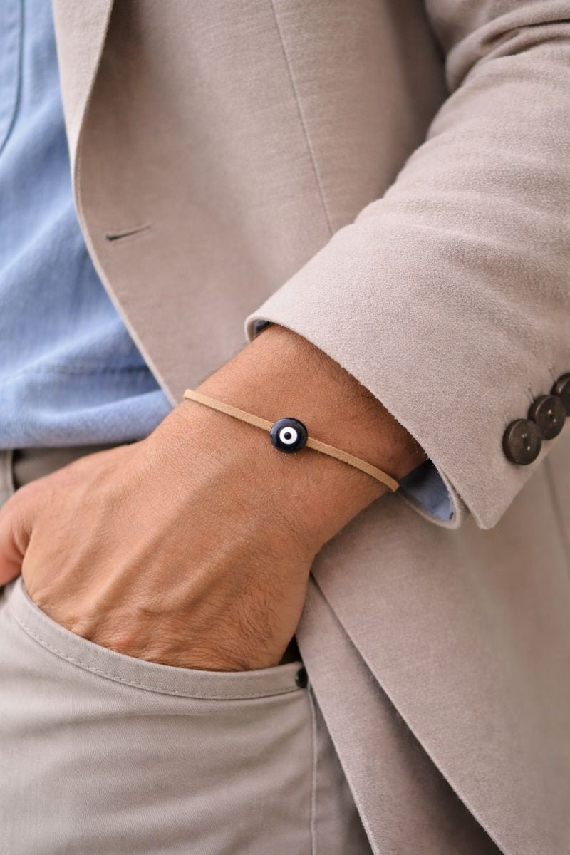 Χειροποίητο μαρτυρικό βάπτισης βραχιόλι με καστόρι με κεραμικό μάτι με σμάλτο σε υπέροχο βαθύ μπλε χρώμα.